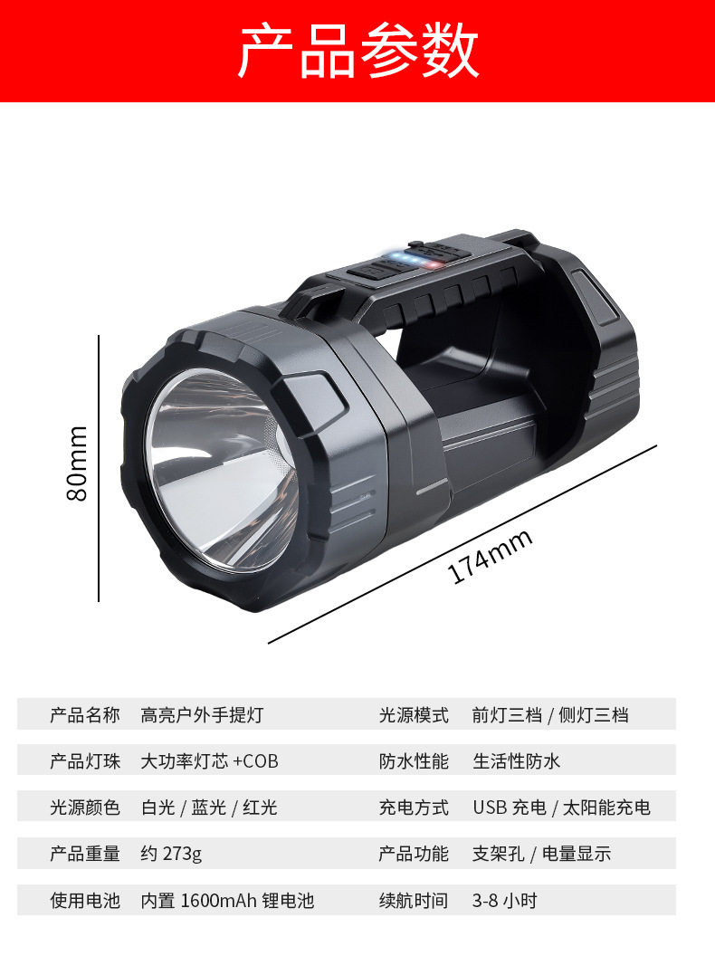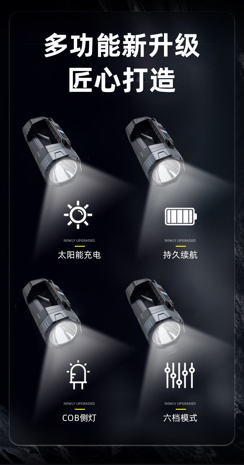 Outdoor Long-Life Portable Lamp Fishing Ultra-Bright Long-Range Household High-Power Searchlight Solar Strong Light Flashlight