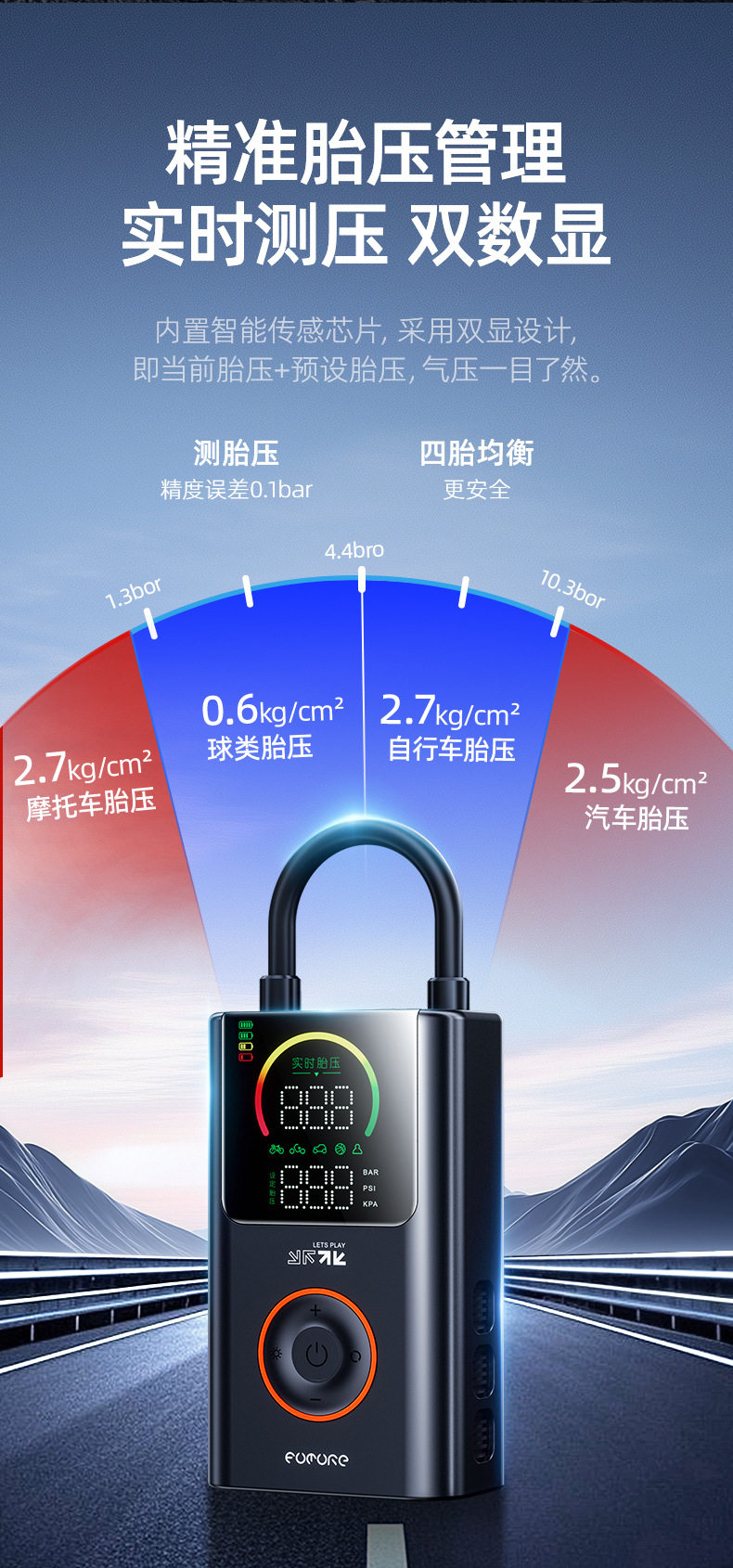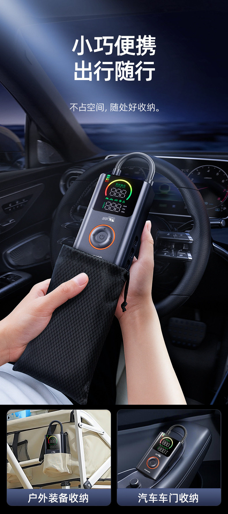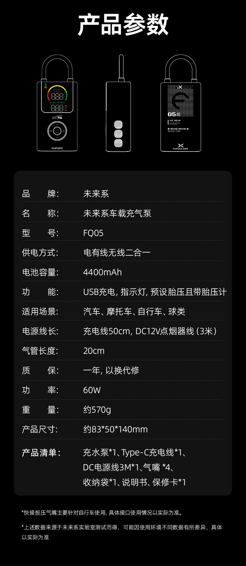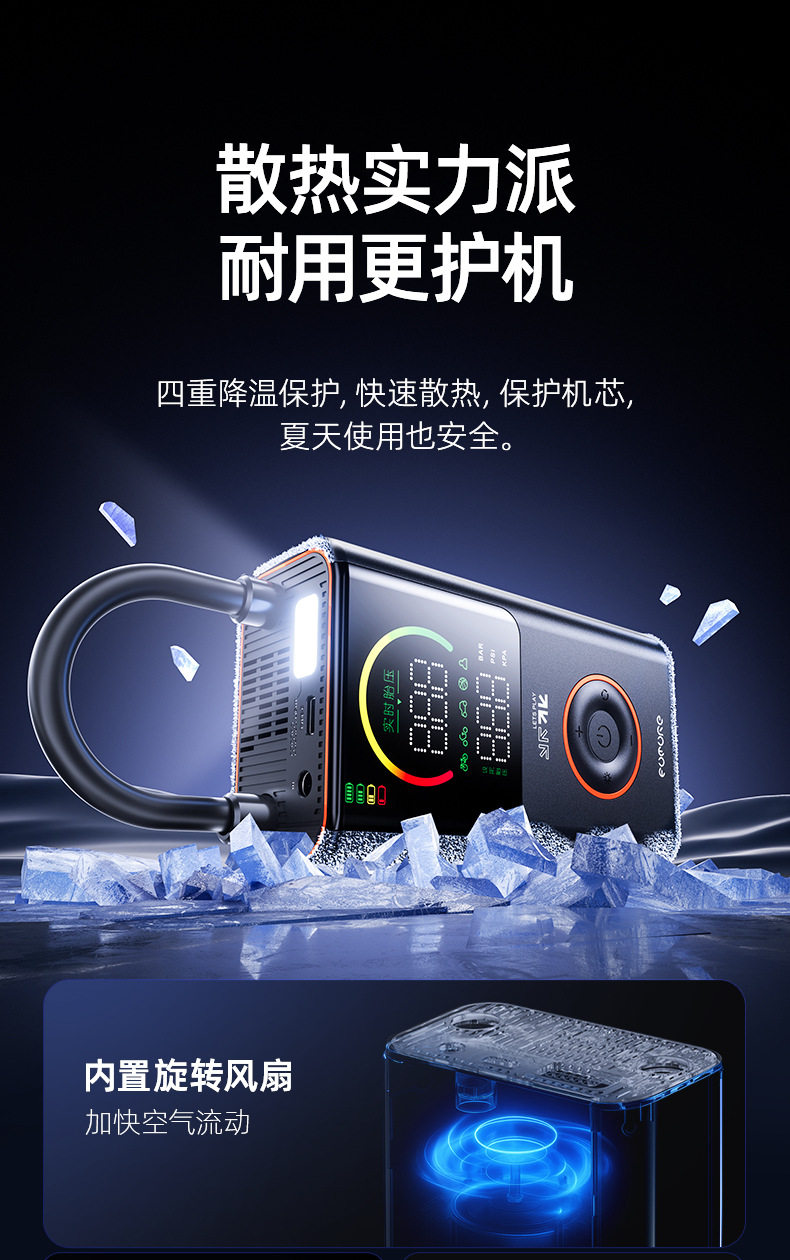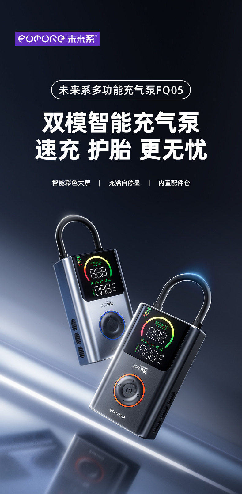 Future Series Portable Car Air Pump Multifunctional Color Screen Digital Display Security Cross-Border Gift Hot Model Fq05