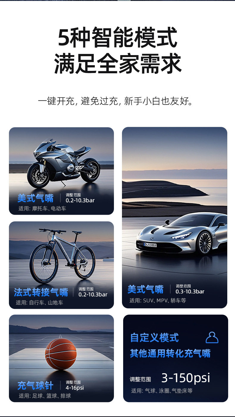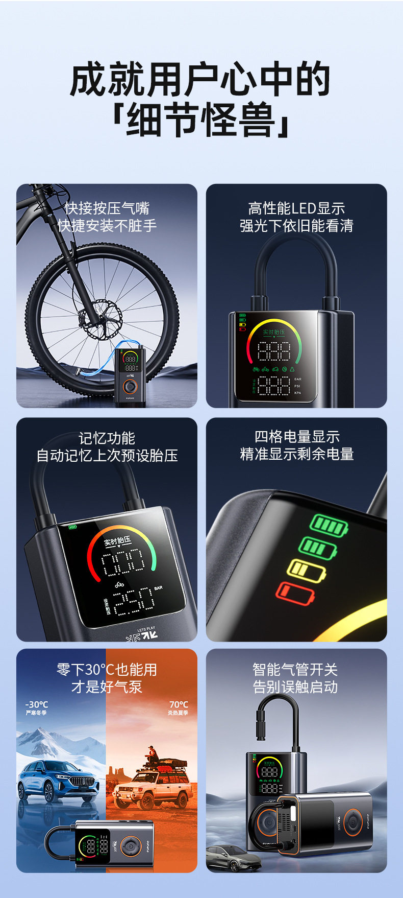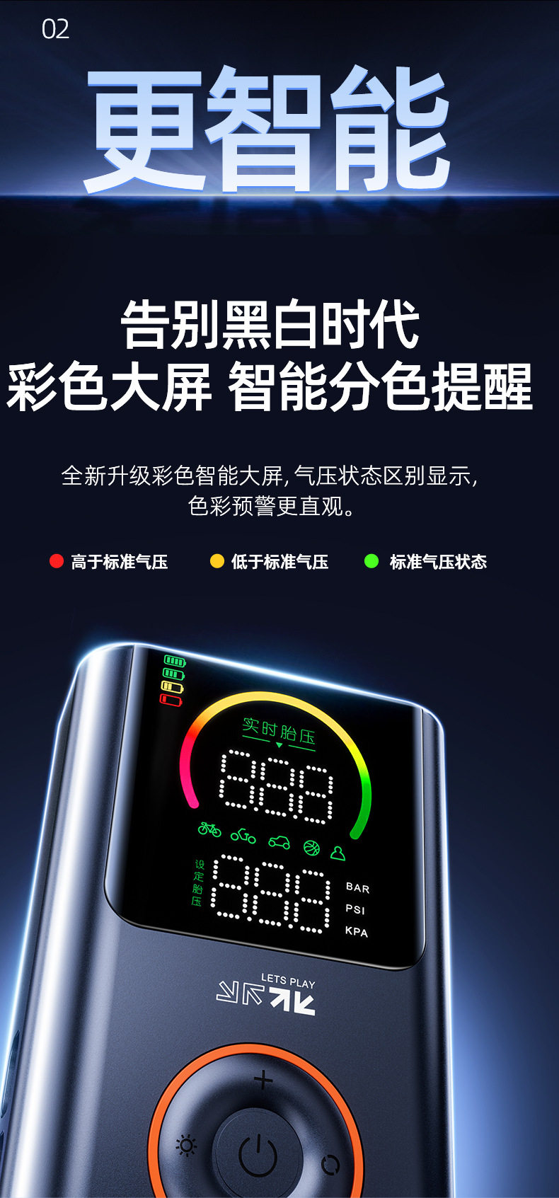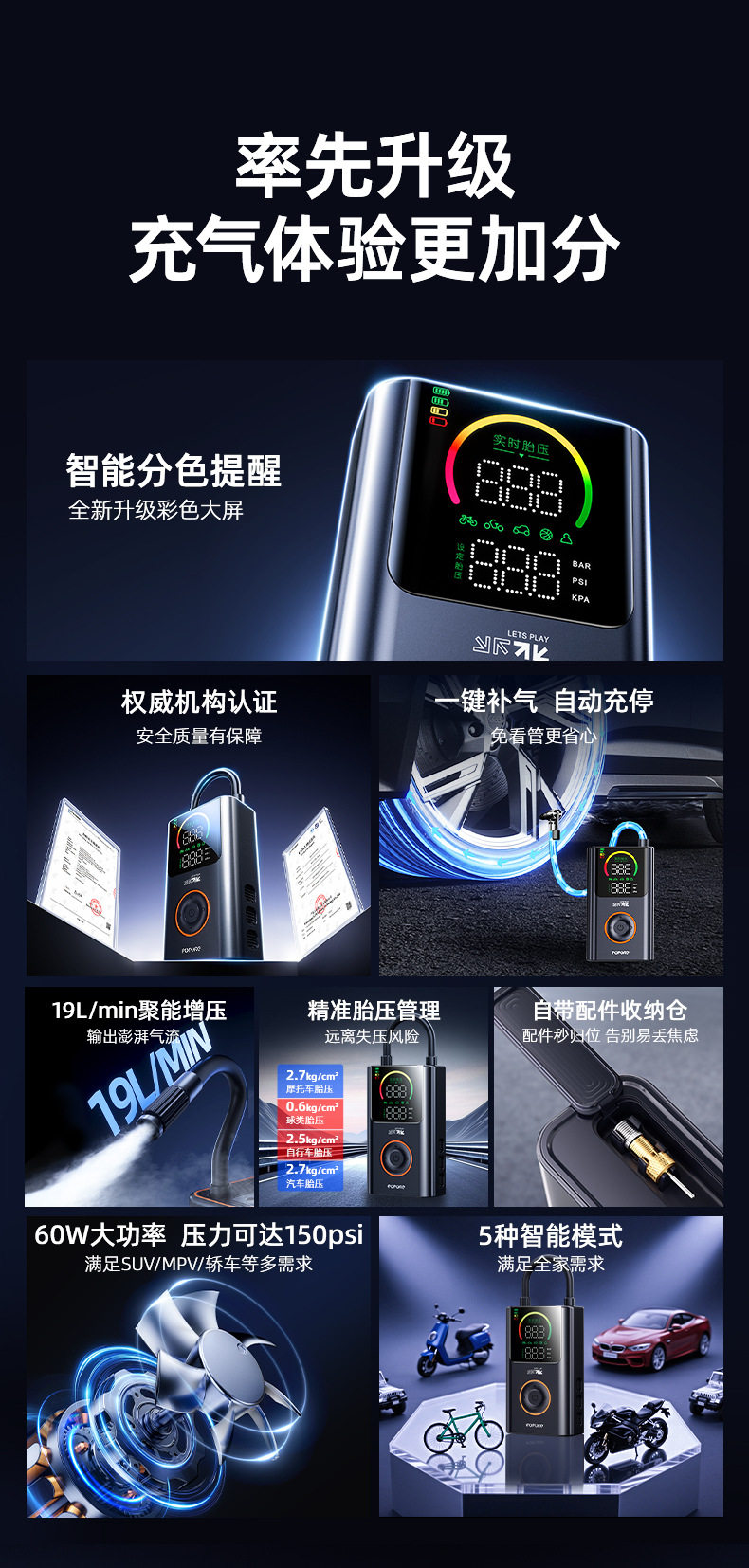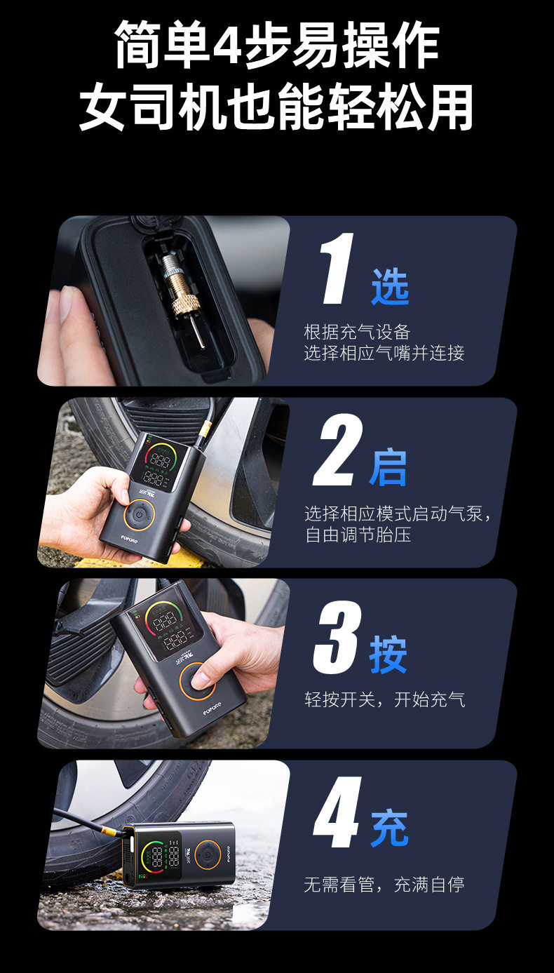 Future Series Portable Car Air Pump Multifunctional Color Screen Digital Display Security Cross-Border Gift Hot Model Fq05