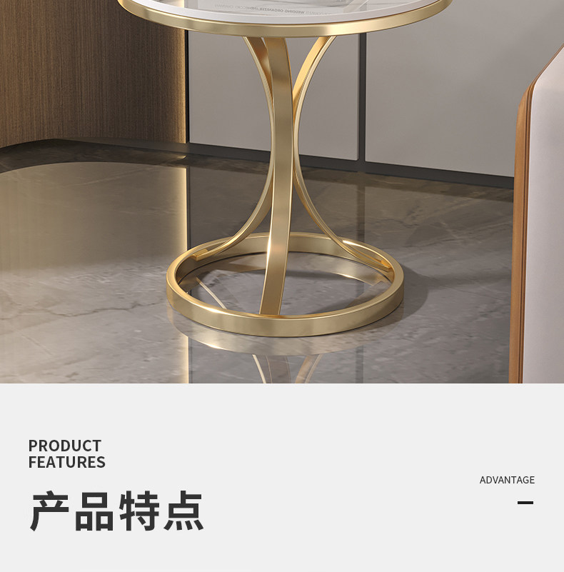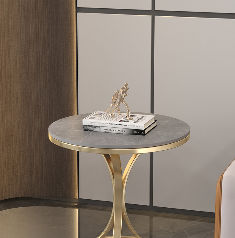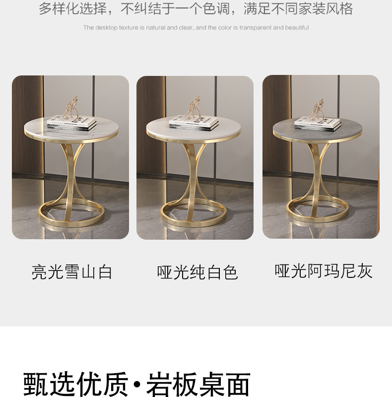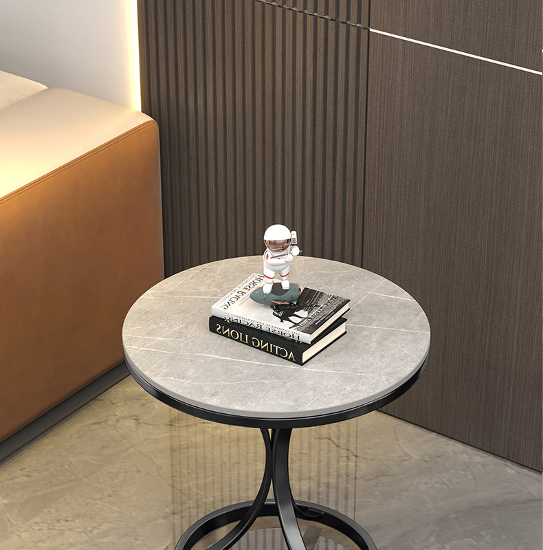 Light Luxury Slate Side Table, Small Coffee Table, Marble Living Room Sofa Corner Table, Simple Movable Balcony Small Round Table Side Cabinet