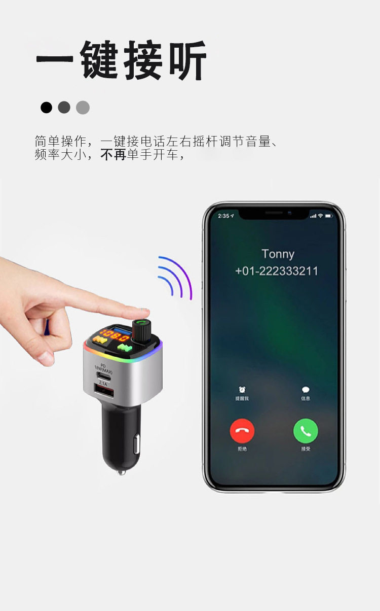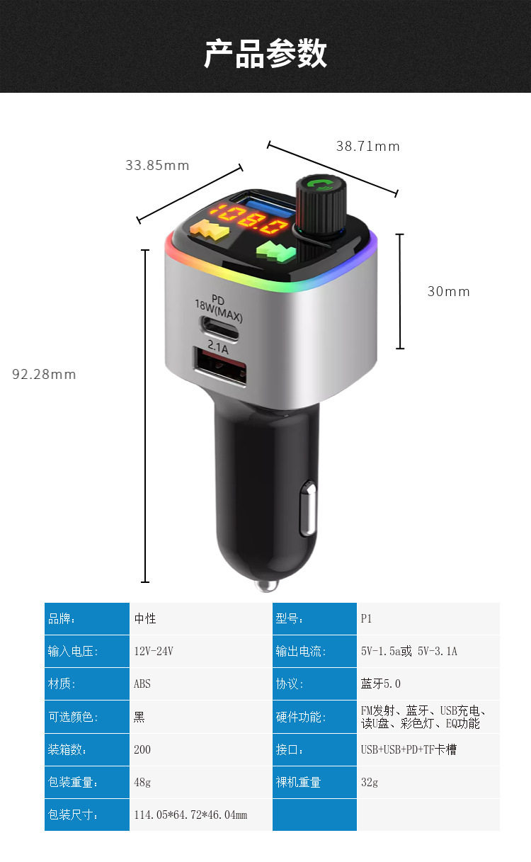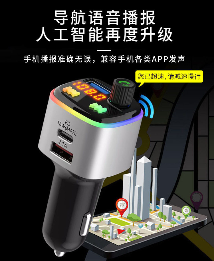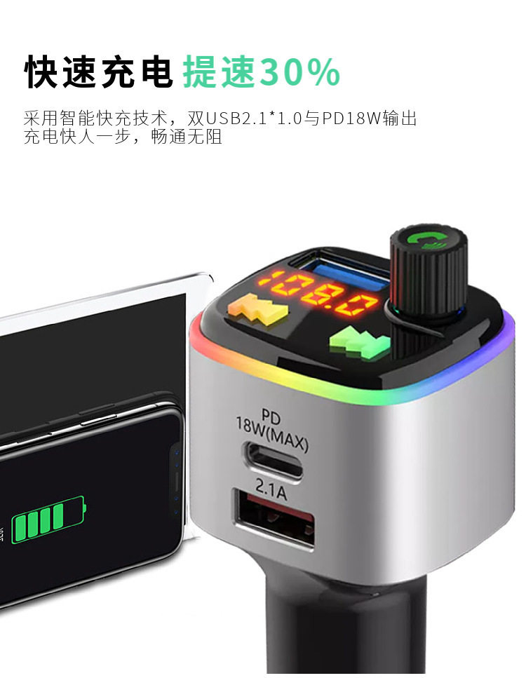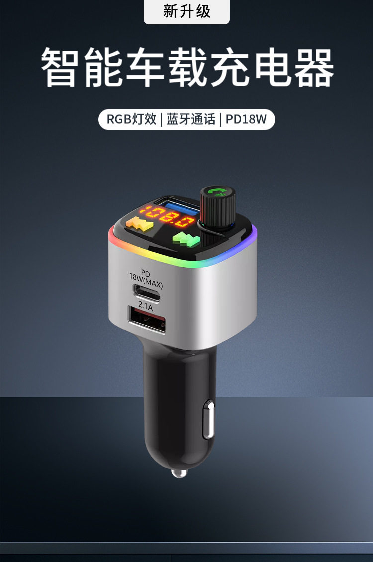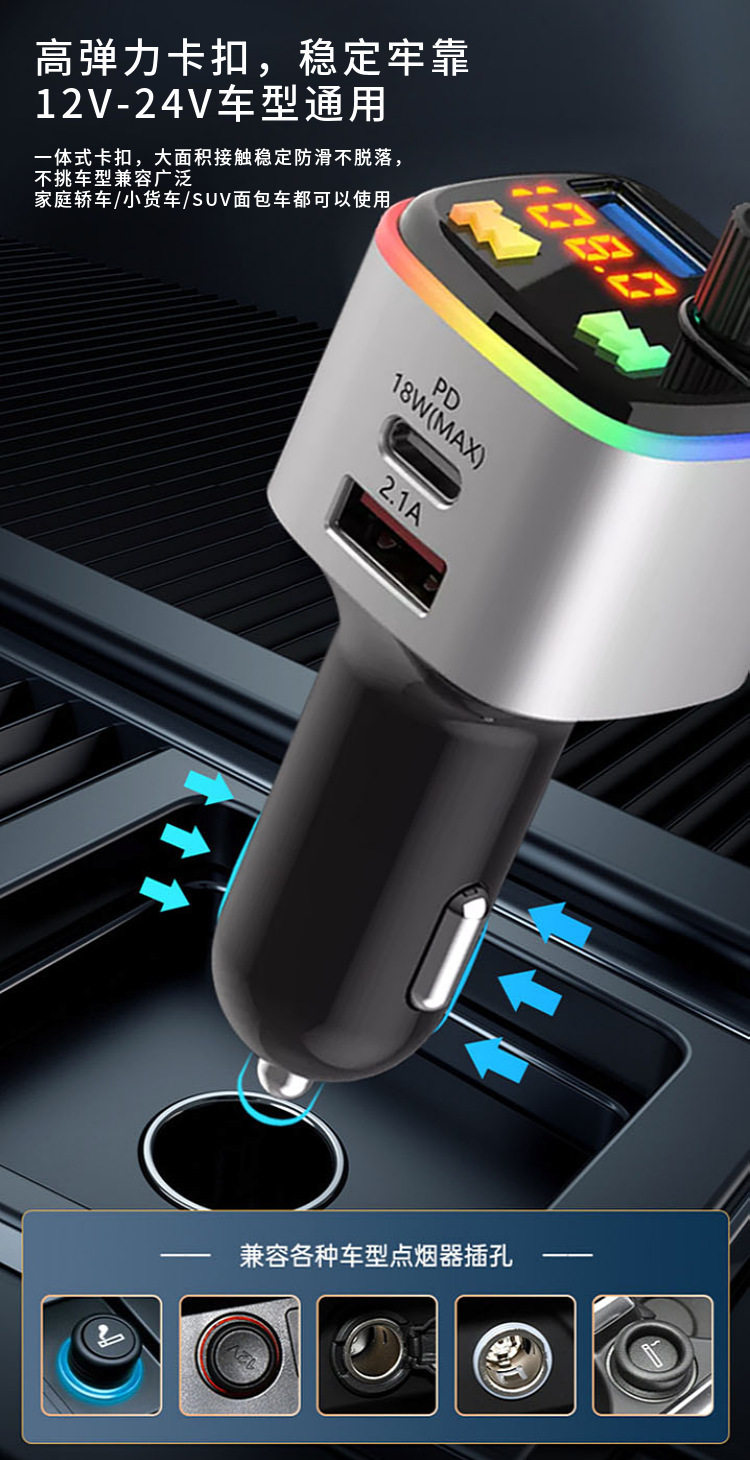 P1 Cross-Border Popular Car Charger Bluetooth Mp3 Player Smart Digital Display Pd18W Fast Charging Zinc Alloy Car Charger