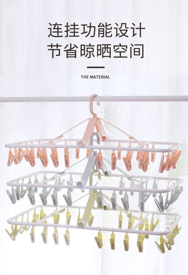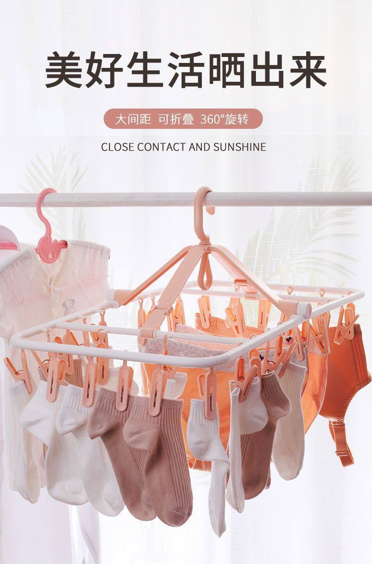 Large-Spaced Baby Clothes Drying Rack with Multiple Clips, Sock Clips, Foldable for Home Use, Suitable for Drying Clothes, Baby Underwear, and Newborns