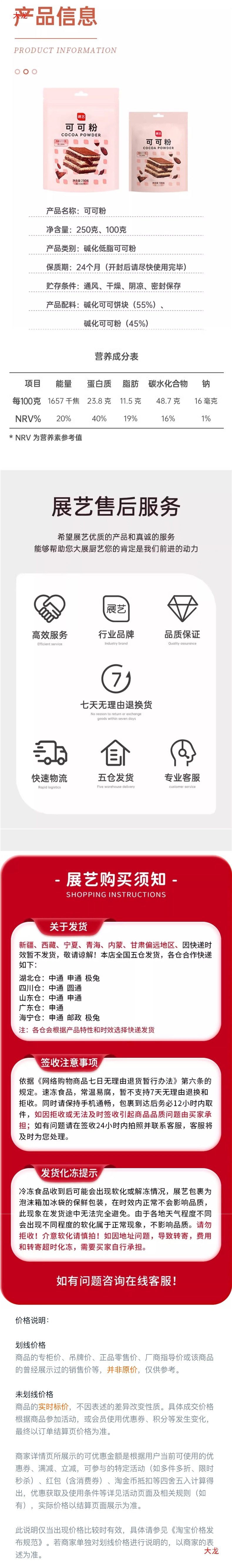 | Packaging specifications | [popular recommendation] 100g cocoa powder + 20g matcha powder,[try pack] cocoa powder 100g,[buy 1 get 1 free, 2 bags actual delivery] cocoa powder 100g*1,Cocoa powder 100g*3,Cocoa powder 50g,[pure matcha] matcha powder 20g,Matcha powder 20g*2,Matcha powder 20g*3,[natural low-fat] raw cocoa powder 100g,[large packaging/more cost-effective] cocoa powder 250g,[large quantity preferred] cocoa powder 250g*2,[home stocking] cocoa powder 250g*3,Spinach powder 20g + pumpkin powder 20g,[2-color combination] 100g cocoa powder + 100g strawberry powder,[2-color combination] 100g cocoa powder + 120g purple sweet potato powder |