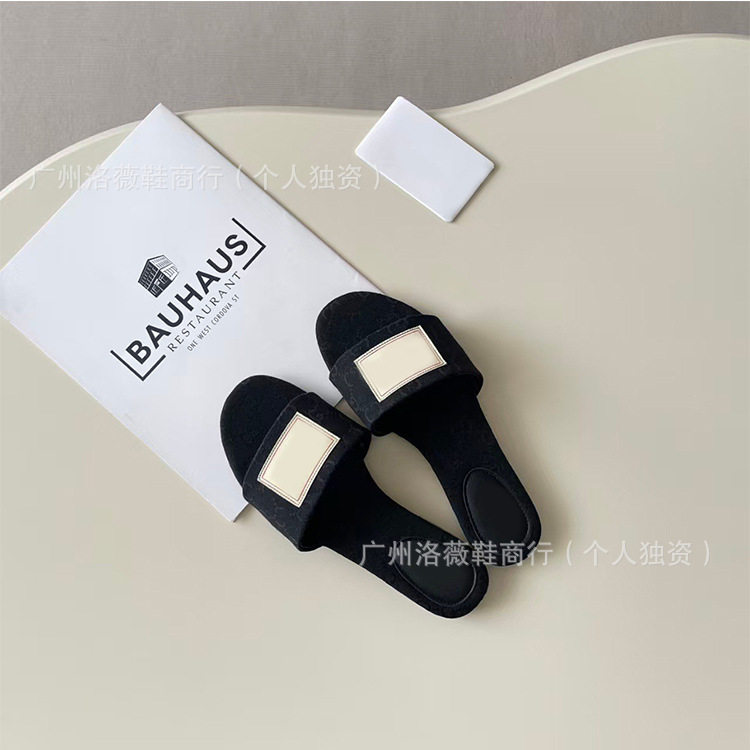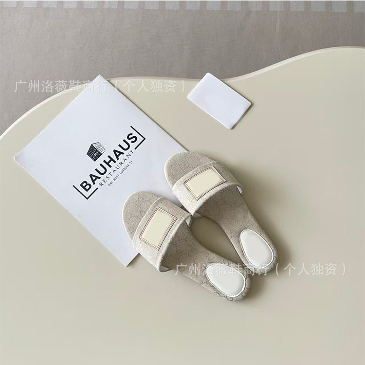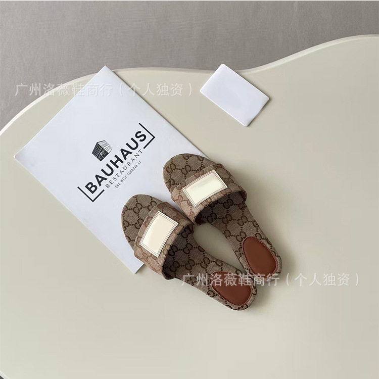 G's New Cloth Label Printed Letters Flats-Soled Slippers, Casual Outer Wear Beach Lightweight Slippers