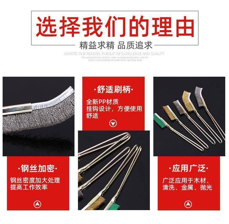 | Specifications and models | [straight wire brush] complete set; 1 piece,[elbow wire brush] complete set; 1 piece,[straight nylon wire brush] complete set; 1 piece,[elbow nylon wire brush] complete set; 1 piece,[straight copper wire brush] complete set; 1 piece,[straight wire brush] complete set; 2 pieces,[elbow copper wire brush] complete set; 1 piece,Wire brushes (straight head + elbow), 2 pieces in total; 1 piece,[straight nylon wire brush] complete set; 2 pieces,[elbow wire brush] complete set; 2 pieces,[straight copper wire brush] complete set; 2 pieces,[elbow nylon wire brush] complete set; 2 pieces,[elbow copper wire brush] complete set; 2 pieces,[straight wire brush] complete set; 6 pieces,[elbow wire brush] complete set; 6 pieces,[straight nylon wire brush] complete set; 6 pieces,[straight copper wire brush] complete set; 6 pieces,[elbow nylon wire brush] complete set; 6 pieces,[elbow copper wire brush] complete set; 6 pieces,[straight wire brush] complete set; 10 pieces,[elbow wire brush] complete set; 10 pieces,[straight nylon wire brush] complete set; 10 pieces,[elbow nylon wire brush] complete set; 10 pieces,[straight copper wire brush] complete set; 10 pieces,[elbow copper wire brush] complete set; 10 pieces |