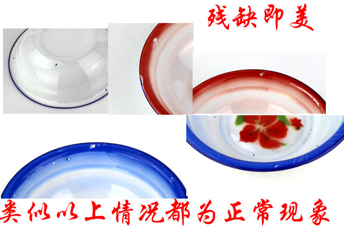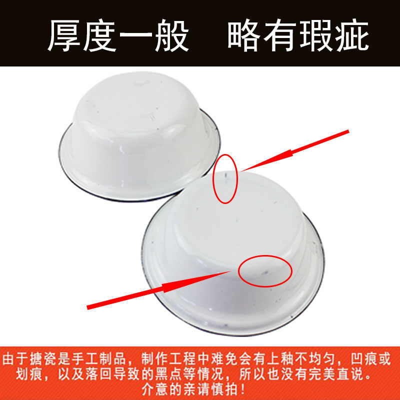 Old-Fashioned Enamel Soup Basin Bowl Red Small Bowl Porcelain Iron Rice Bowl Nostalgic Tableware Vegetable Bowl Mixing Bowl 10 Ginger Tea