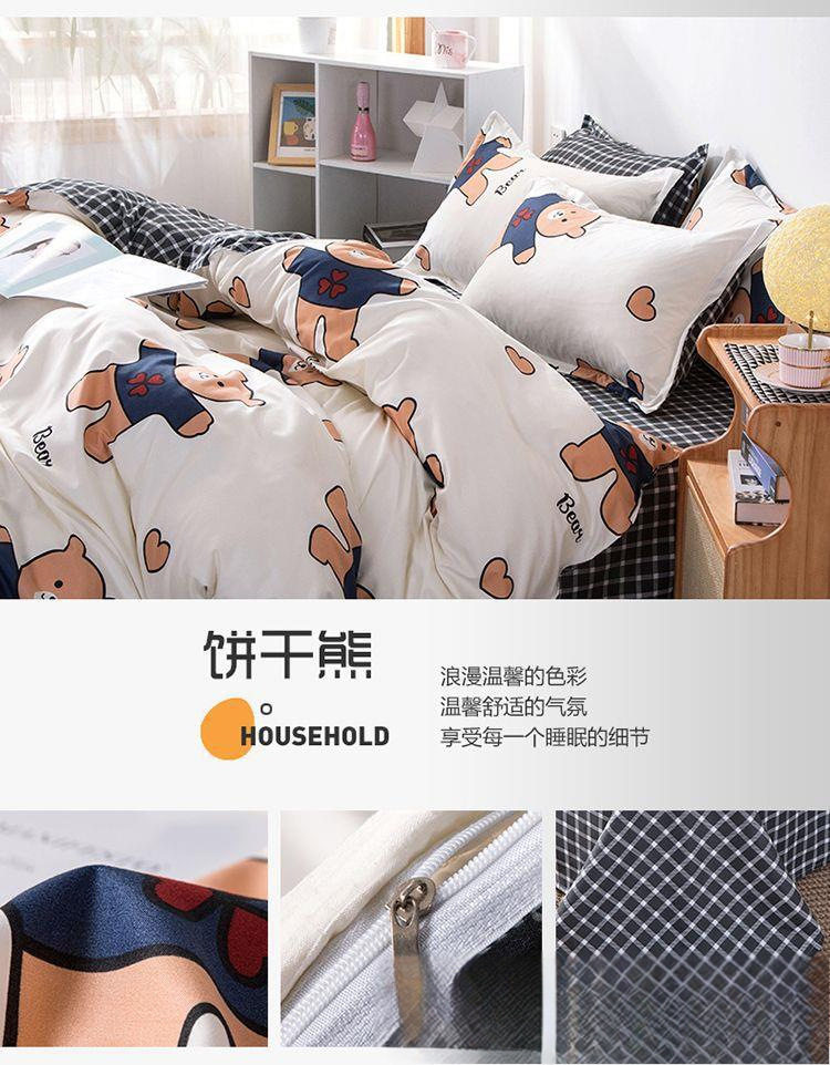 Cartoon Bear Internet Celebrity Washed Cotton Four-Piece Bed Sheet Quilt Cover Bedding Student Three-Piece Dormitory Set