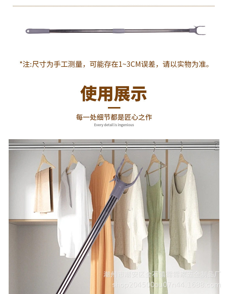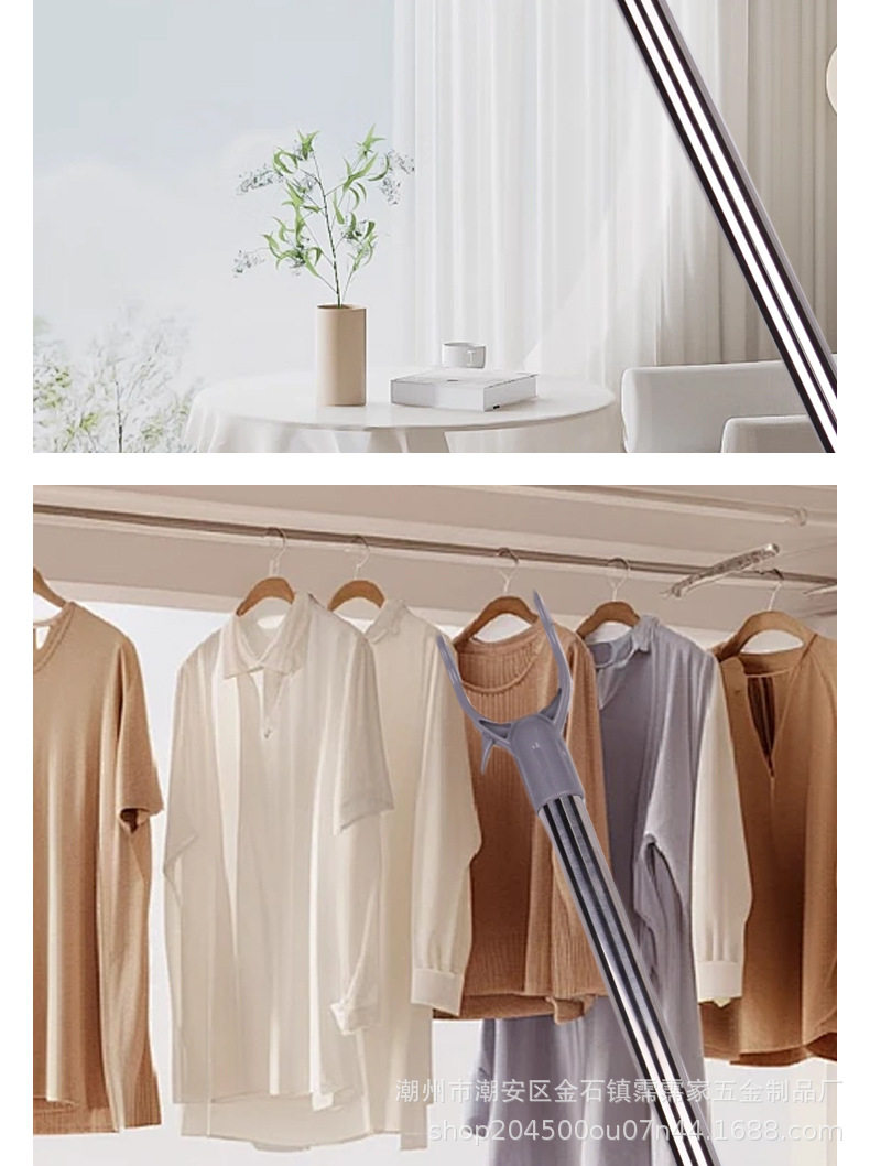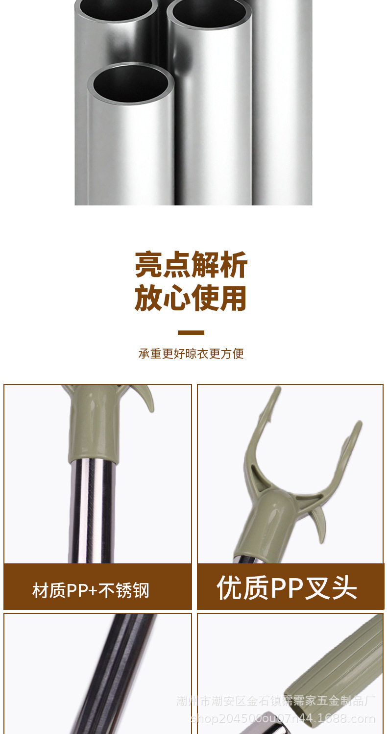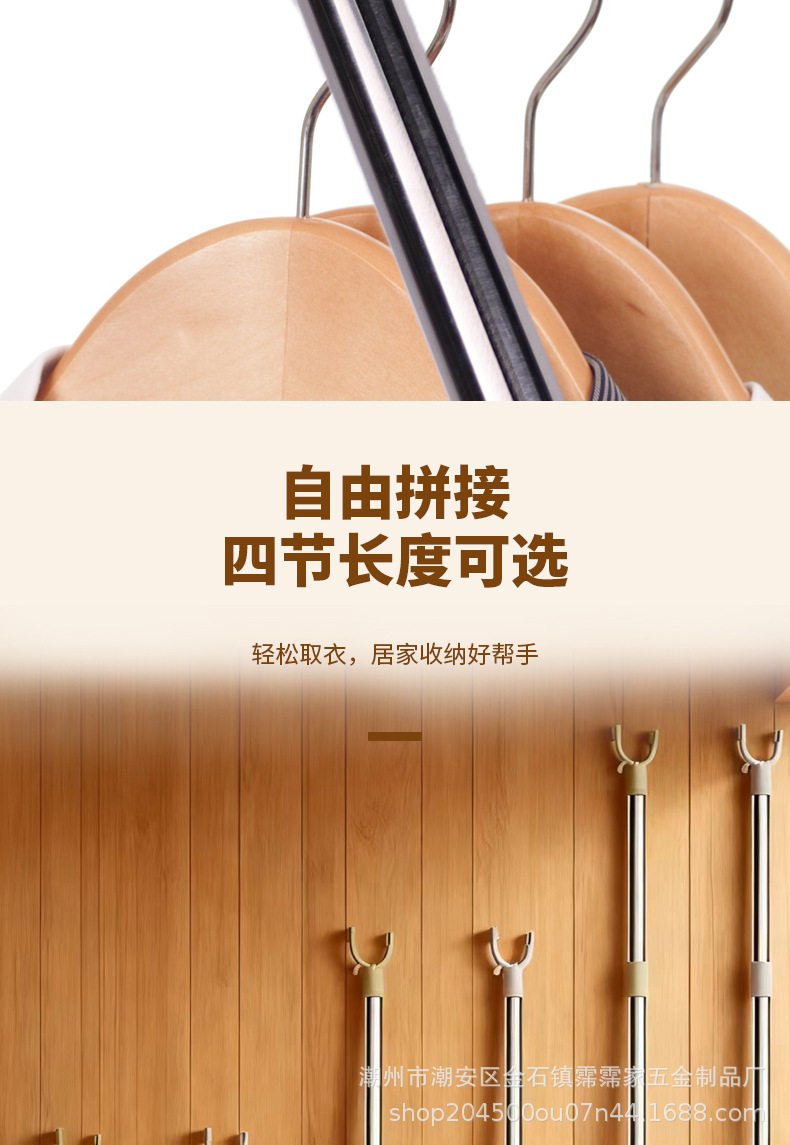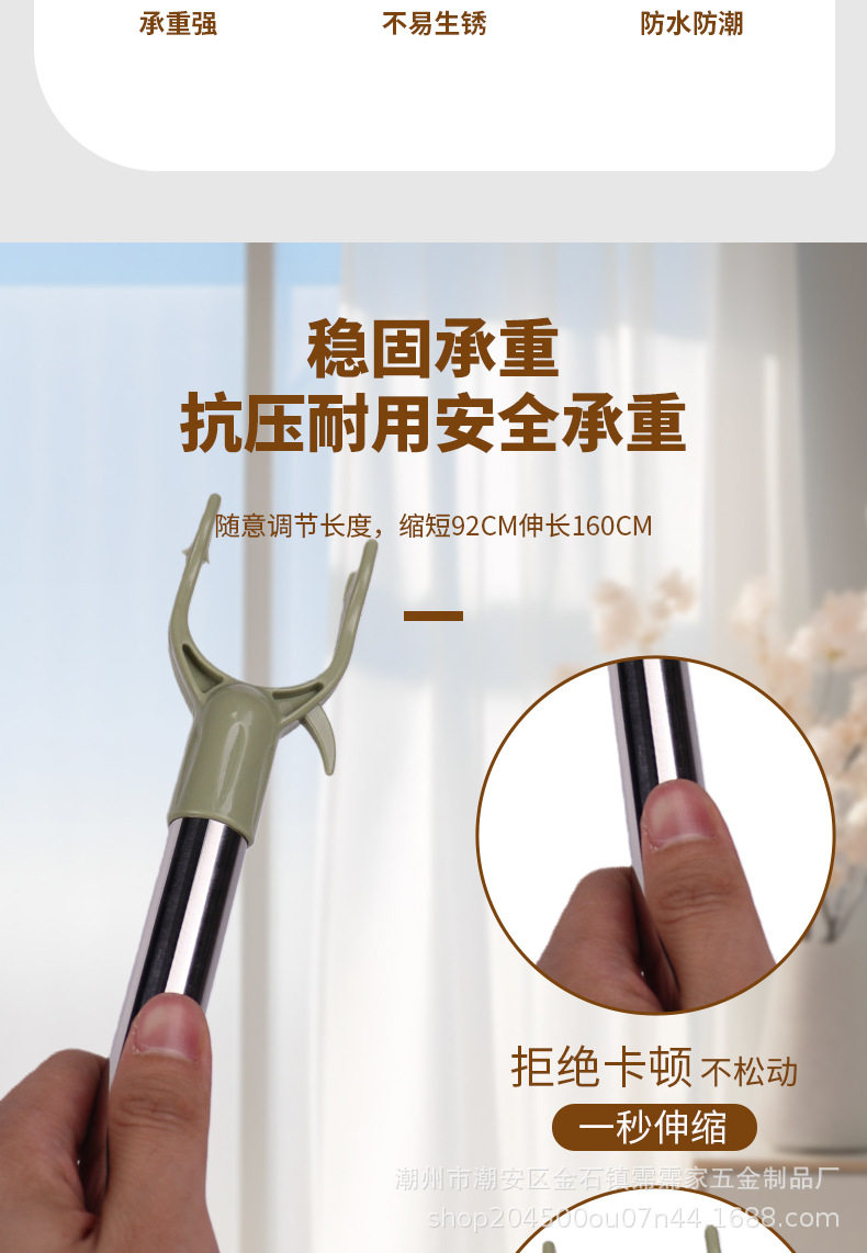 Wholesale Stainless Steel Clothes Drying Rod with Extendable Clothes Fork, Portable Household Clothes Drying Rack