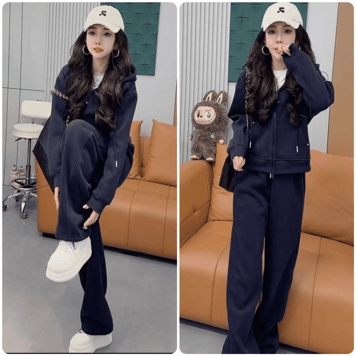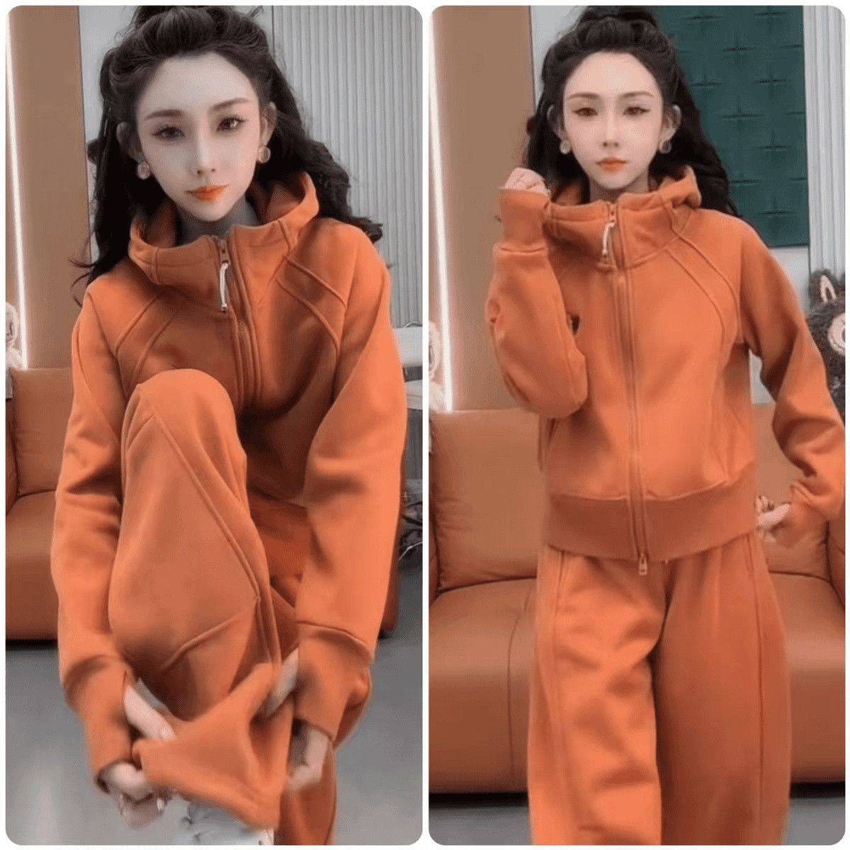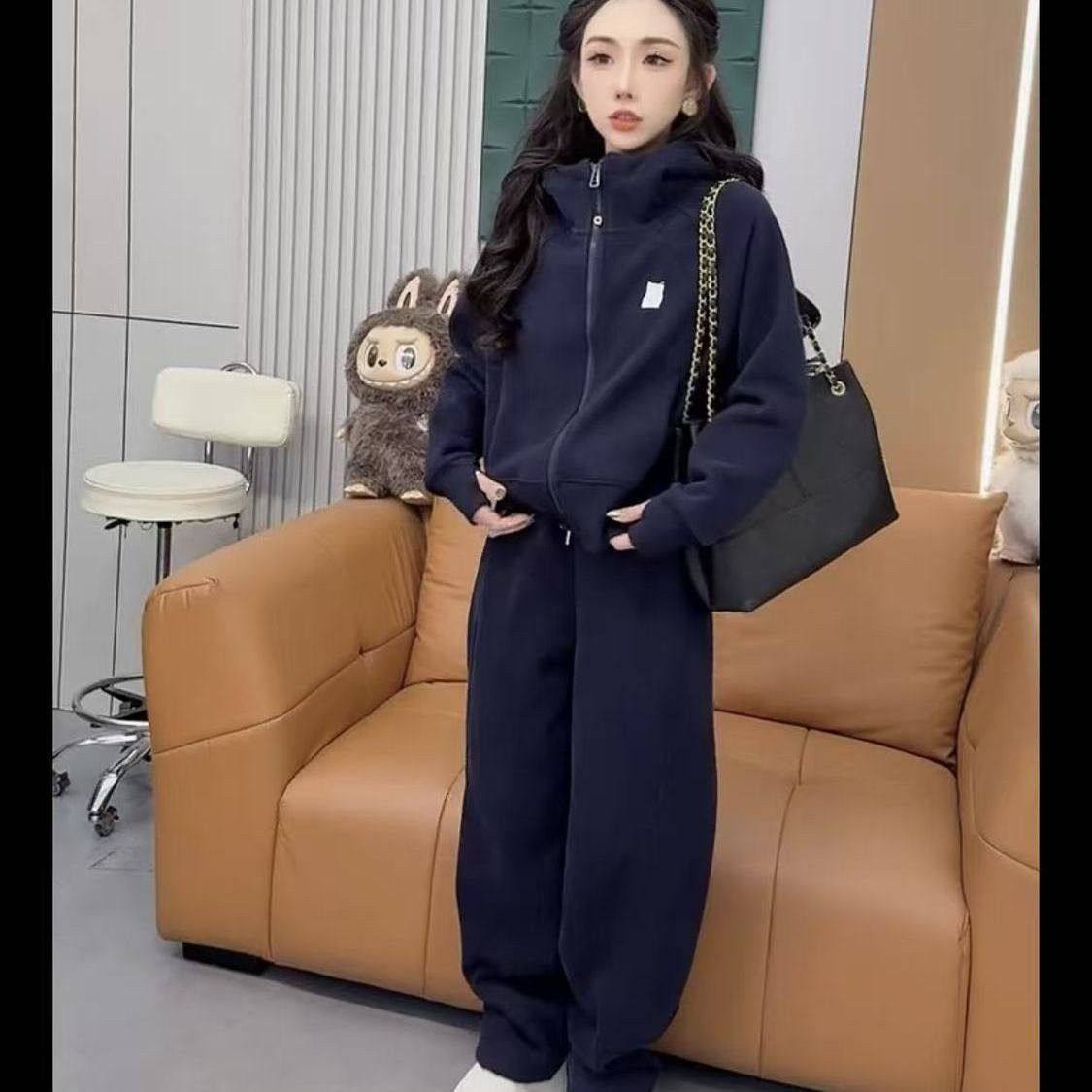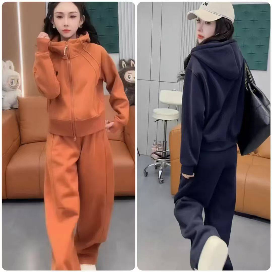 European Popular Style 2025 Winter New Style Lazy Style Fleece-Lined Thickeneding Slimming Look Sports Fashionable Casual Two-Piece Set