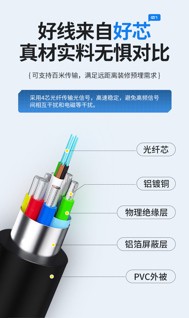 Cross-Border Wholesale HDMI High-Definition Optical Fiber Cable Version 2.0 4K Data Connection Cable Machine Projection Armored HDMI Optical Fiber Cable