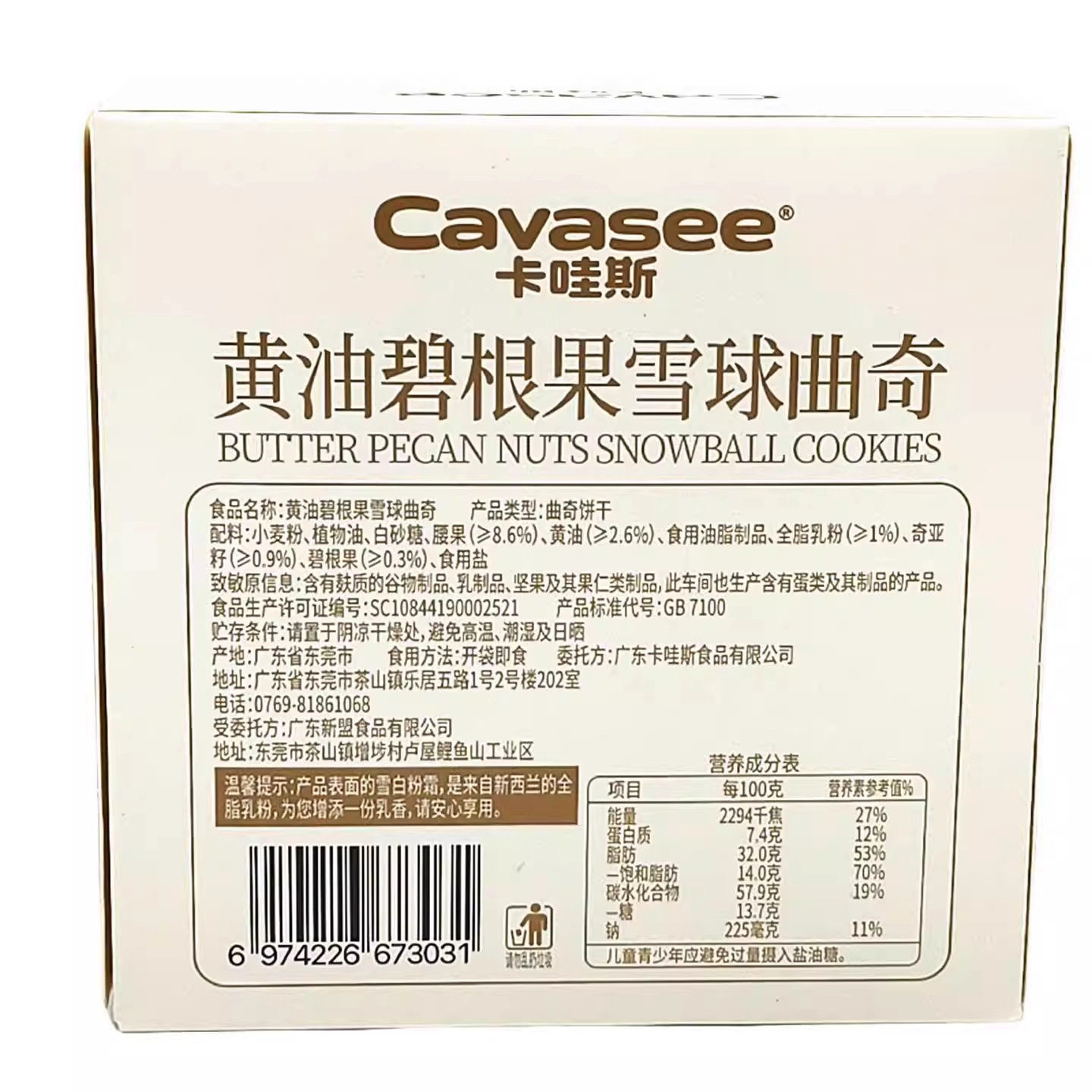 | Packaging specifications | Butter pecan snowball cookies 90g*1 box,Cocoa hazelnut snowball cookies 90g*1 box |