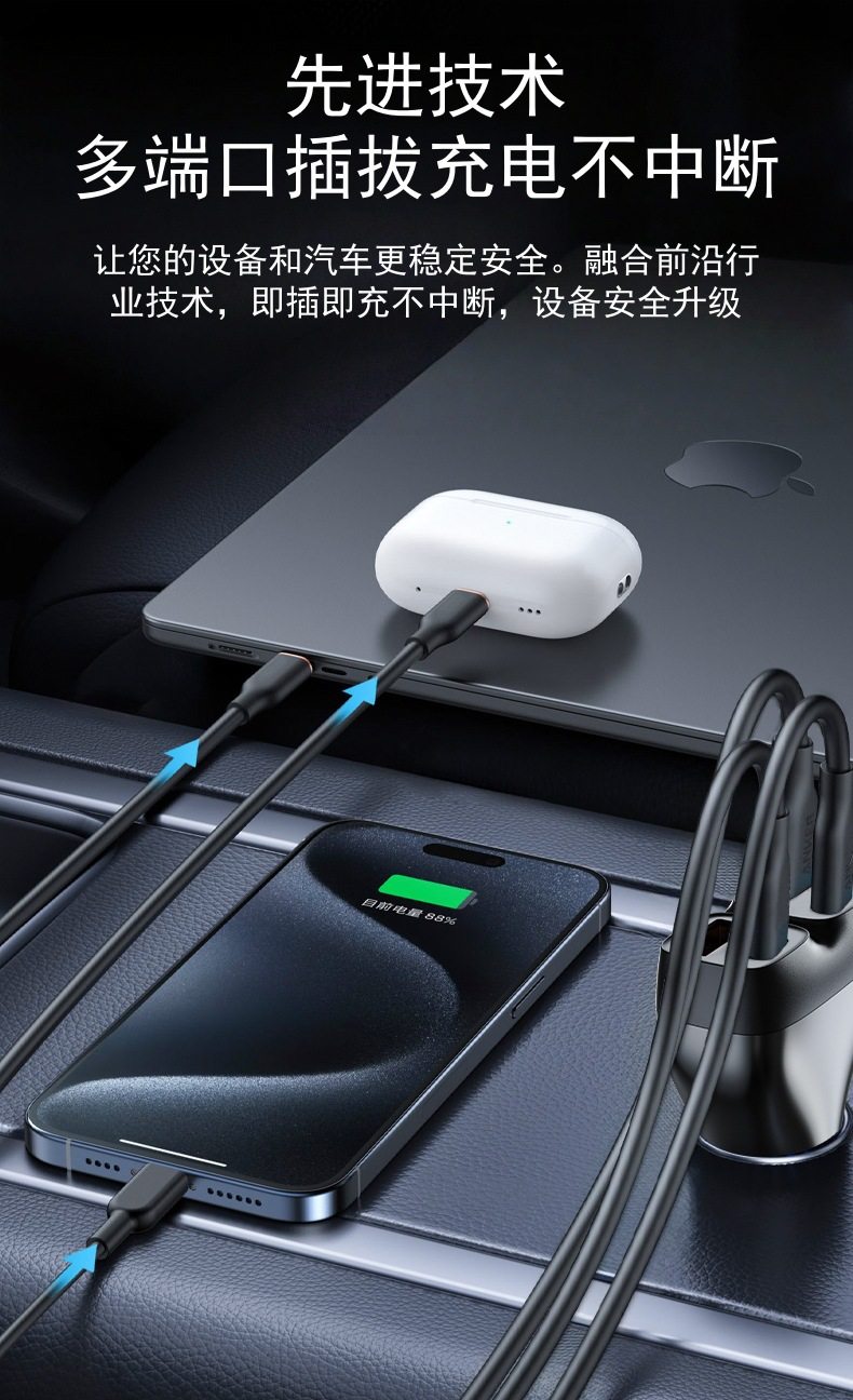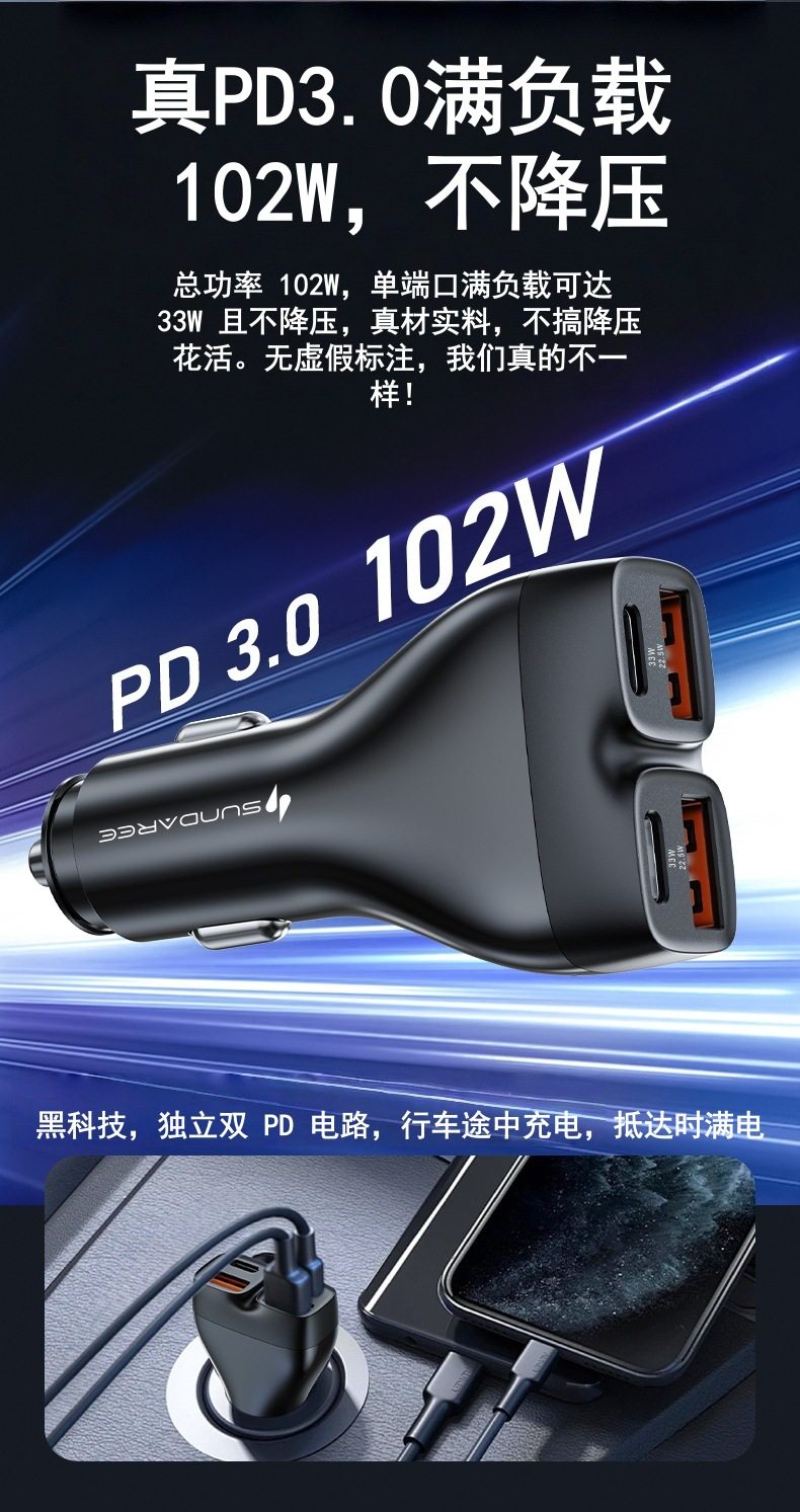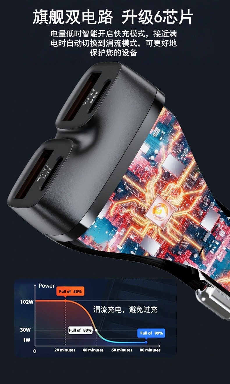 Cross-Border Hot Selling 102W Car Charger Typec+Usb Interface Car Car Charger Super Fast Charging 2025 New Model