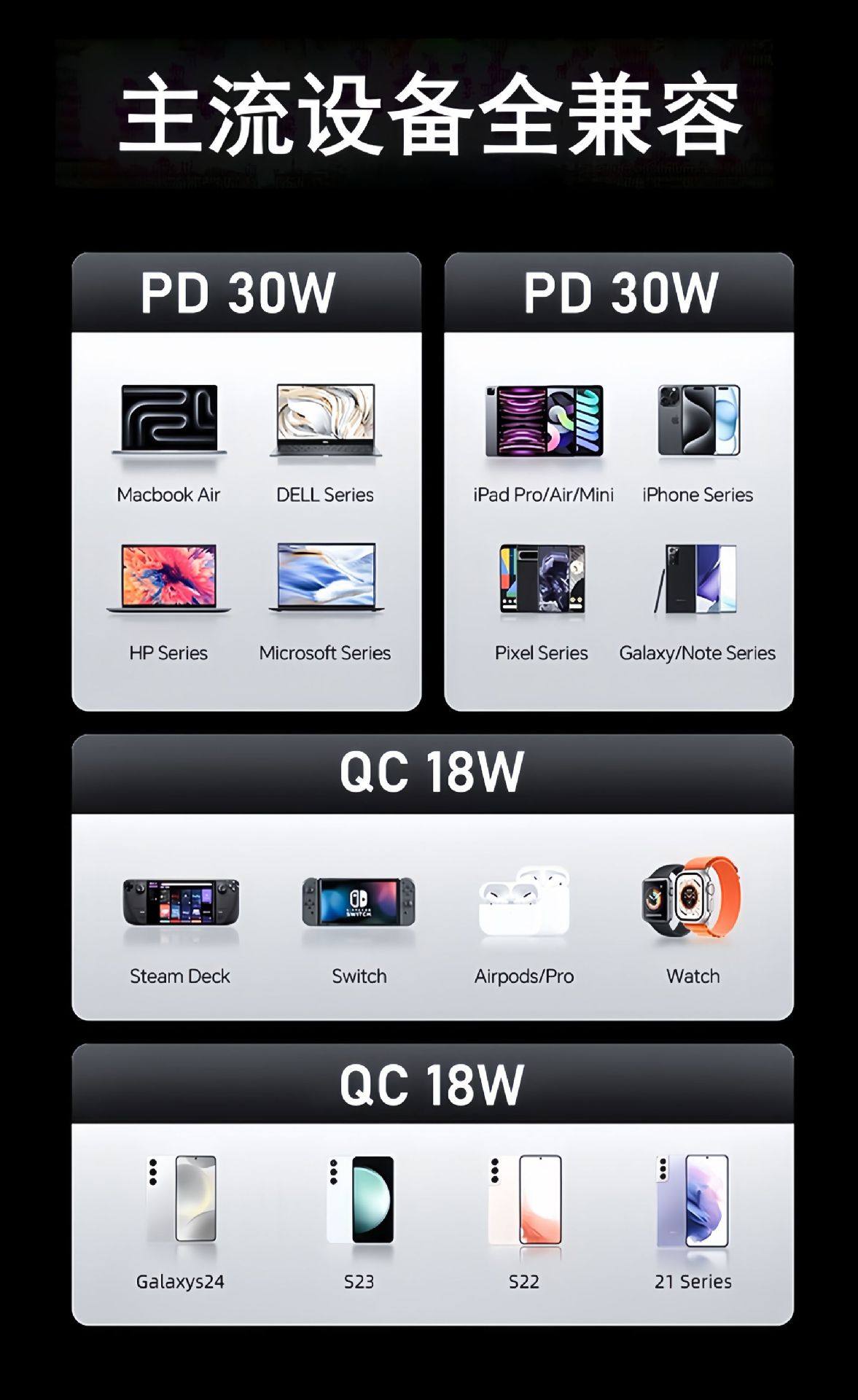| Color | Pc material efficient heat dissipation ★ Quality assurance ★ Fast charging at the same time |
