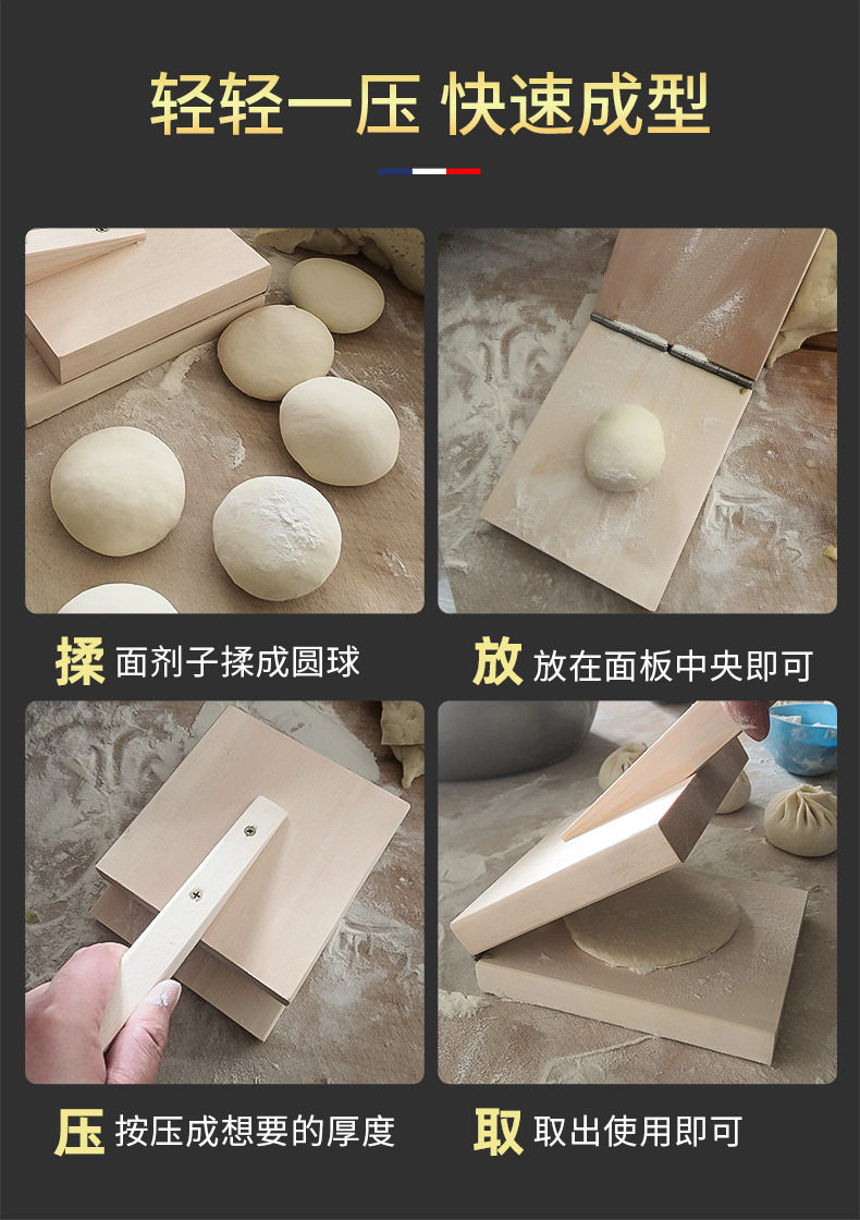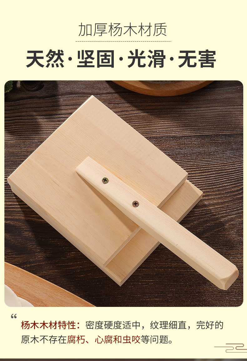 New Leather Presser Bun Skin Dumpling Steamed Bun Skin Tool Household Solid Wood Burr-Free Large Mold