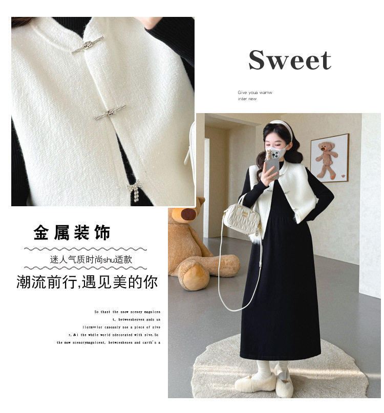 In-Stock 2026 Winter Trendy Fashion Chanel-Style Elegant Heavy Tassel Jacquard Two-Piece Slimming Maternity Set