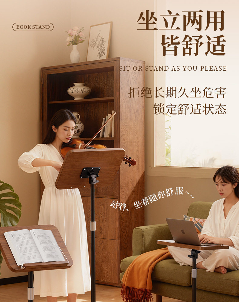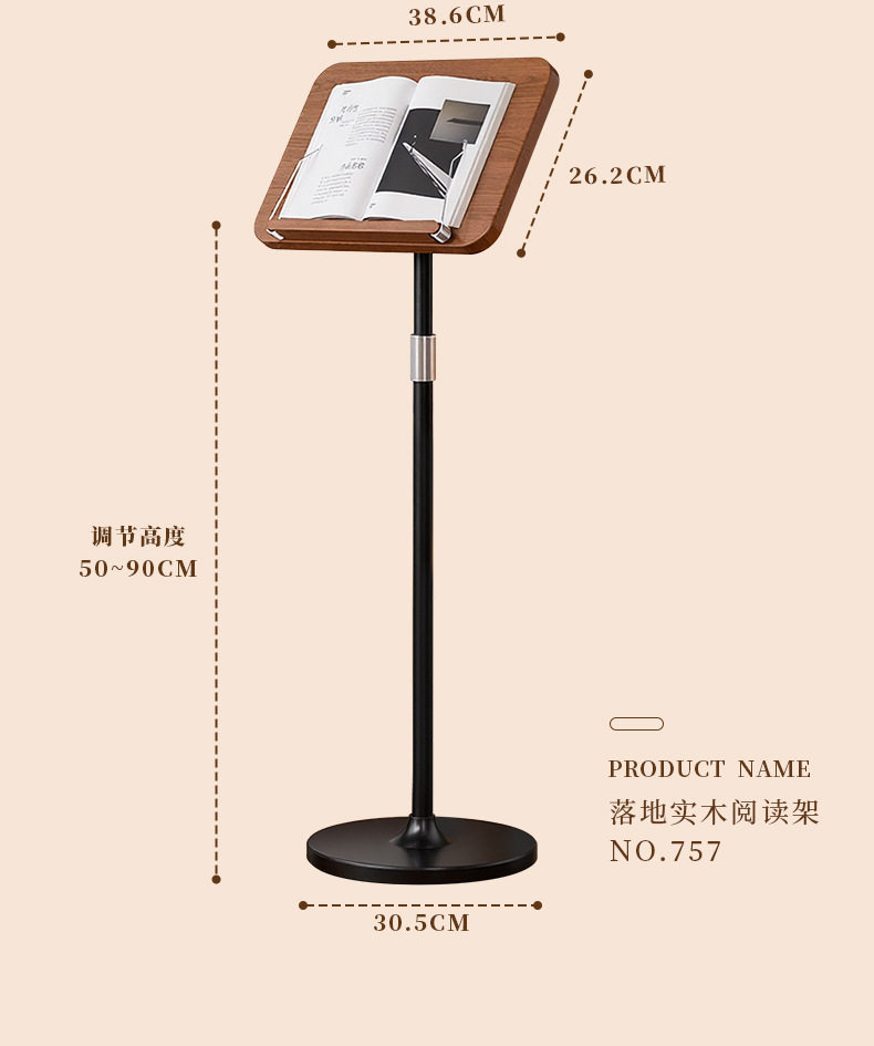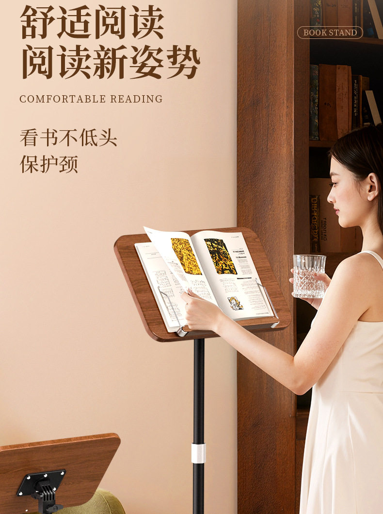Multifunctional Floor-Standing Reading Bookshelf for Learning and Reading Solid Wood Reading Rack Book Clip Bookend Telescopic Bookshelf Music Stand
