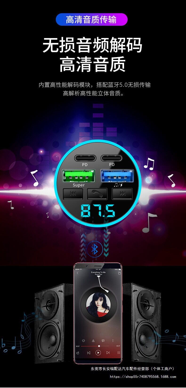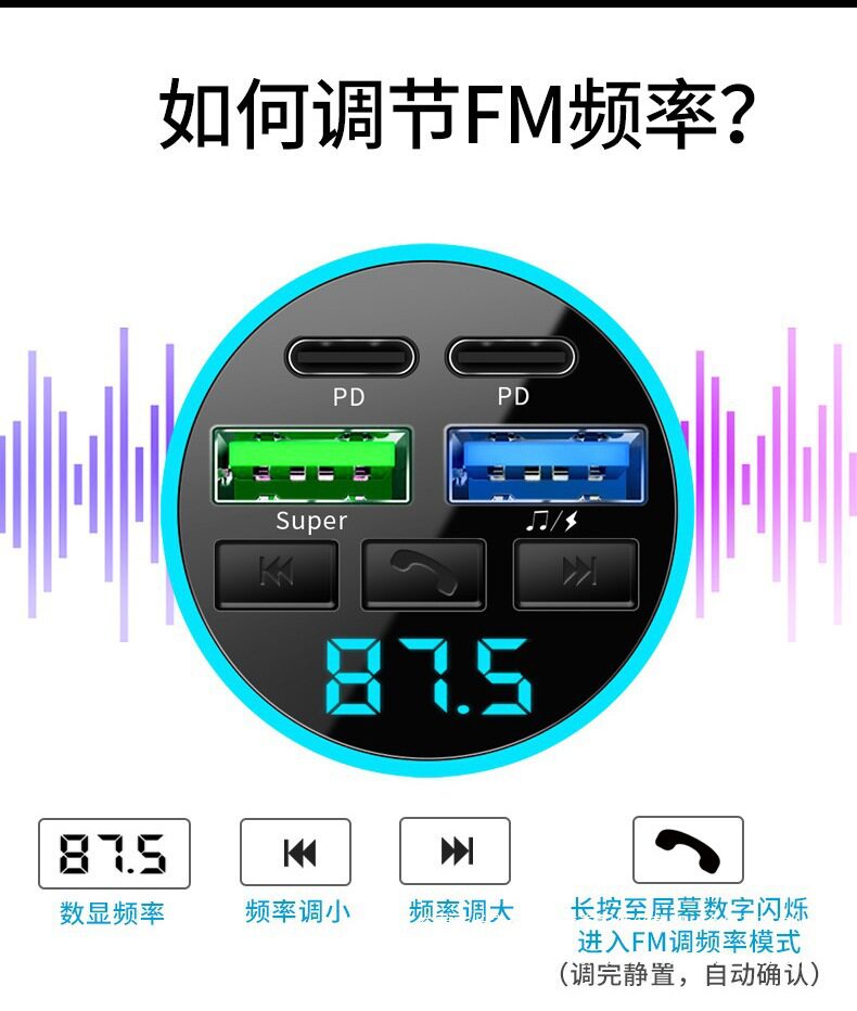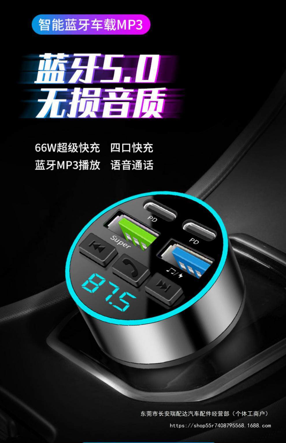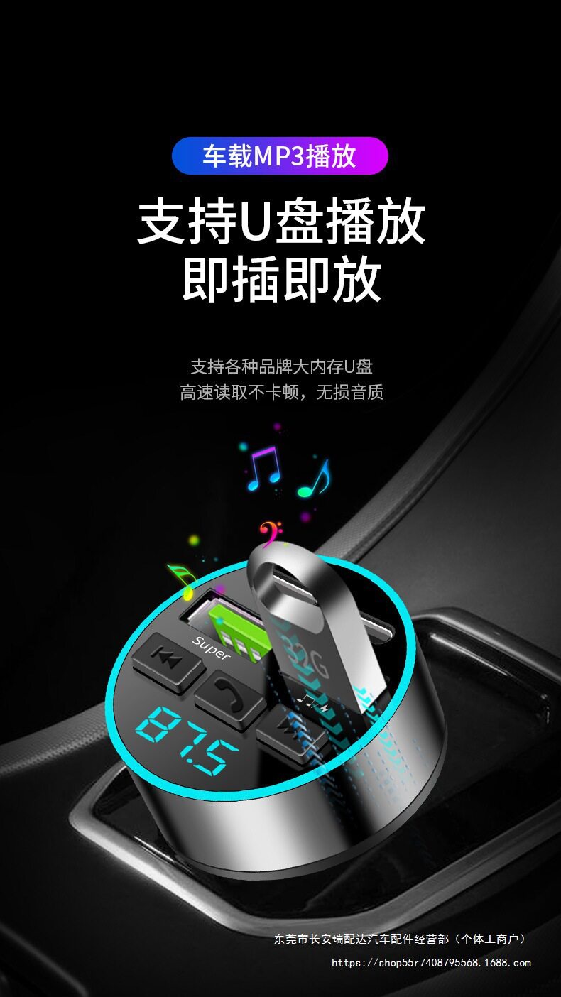 Car Bluetooth Receiver Lossless Sound Quality Mp3 Player Conversion Cigarette Lighter Car Charger Super Ruipai