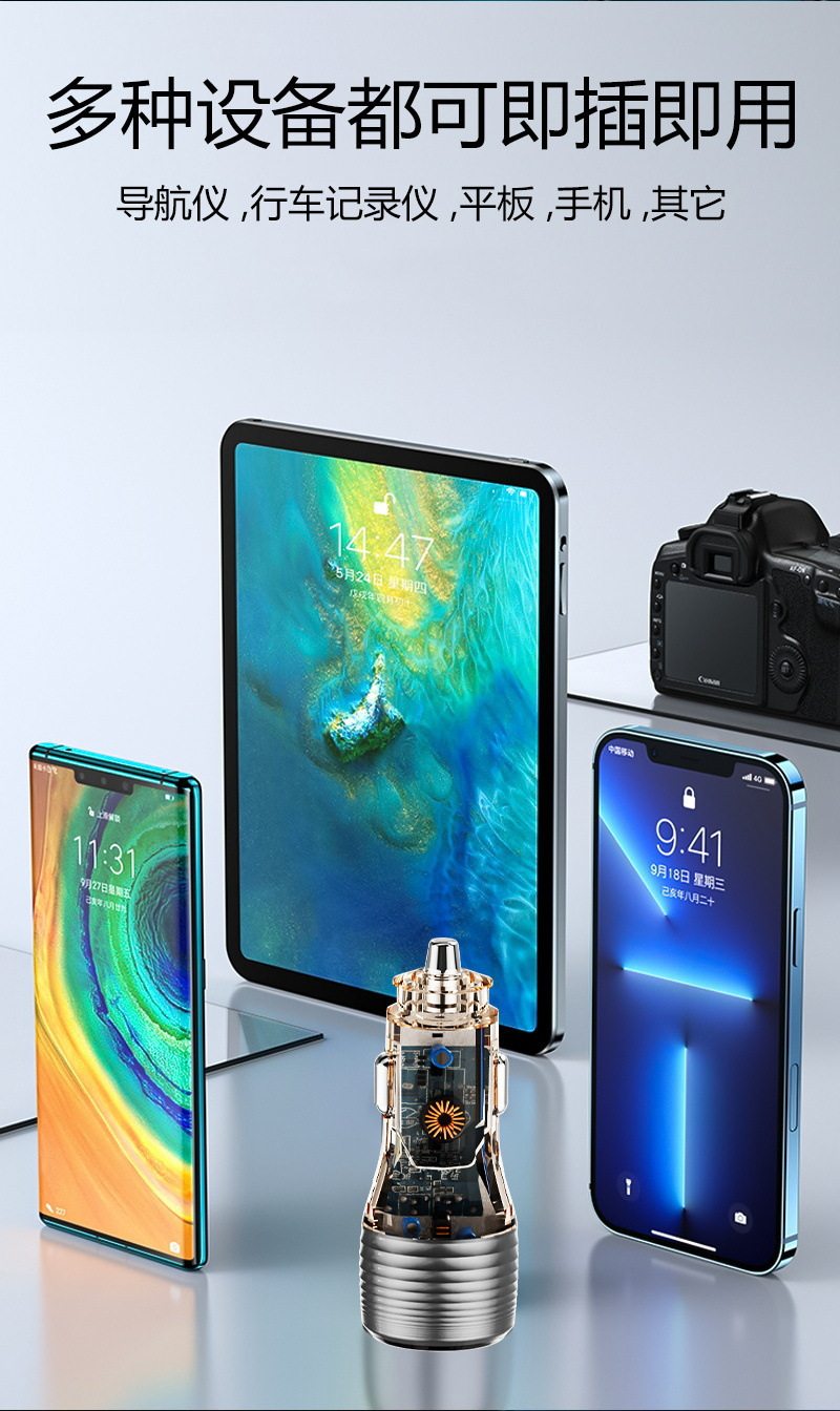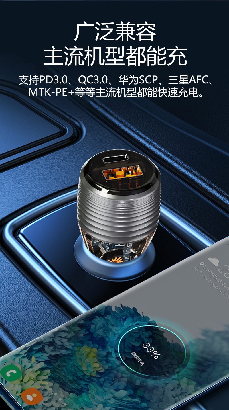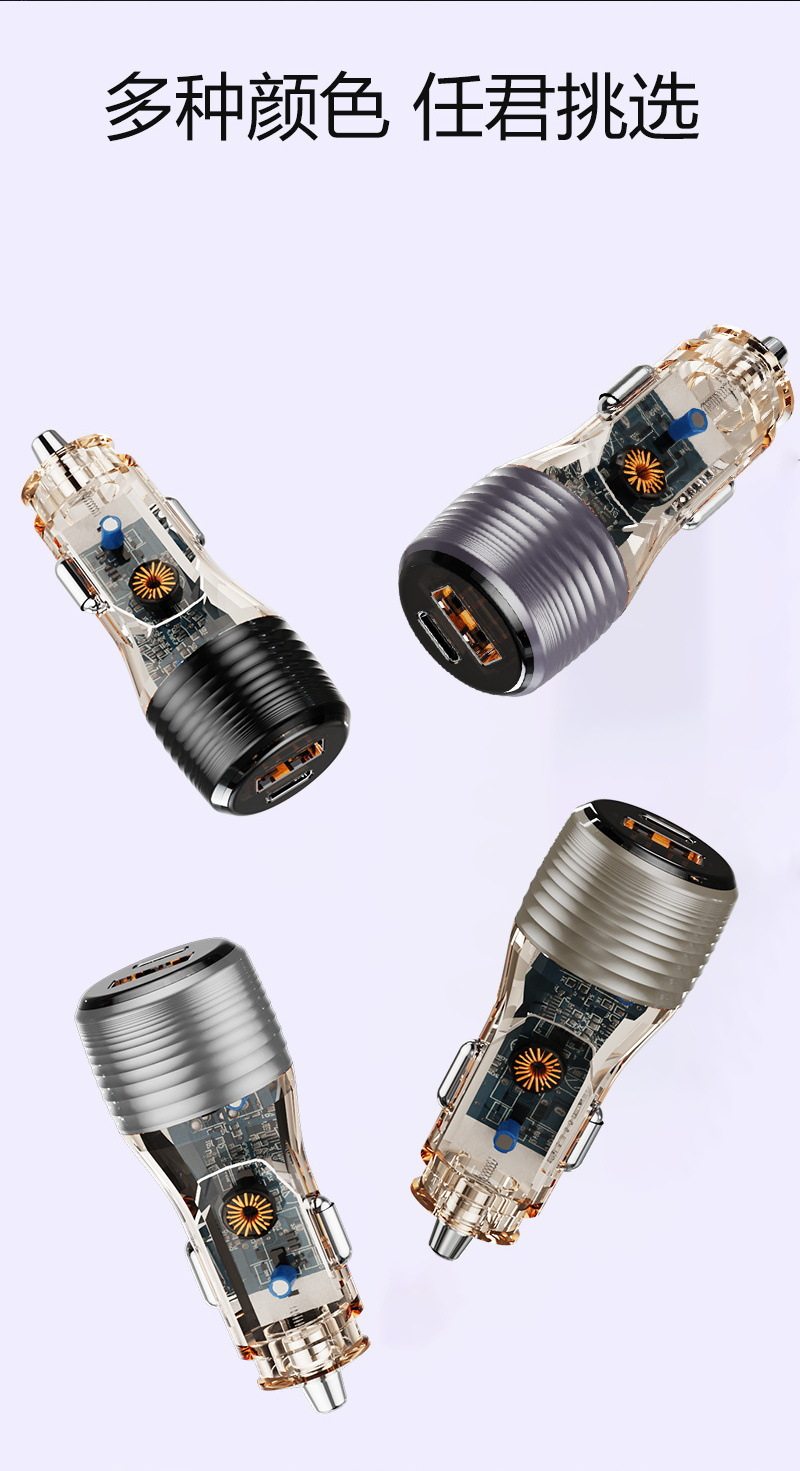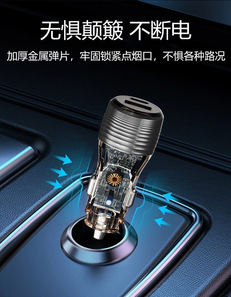 Cross-Border New Transparent Car Charger 55.5W Car Universal Car Charger Super Fast Charging Head Fully Protocol Compatible