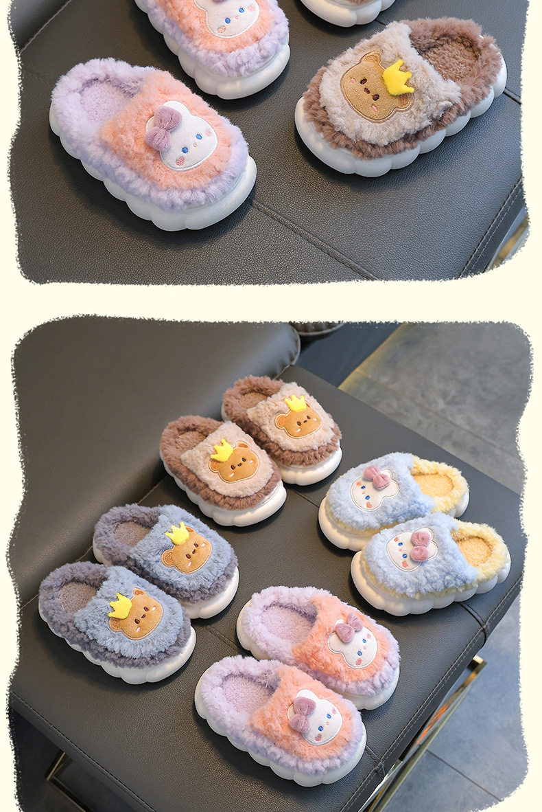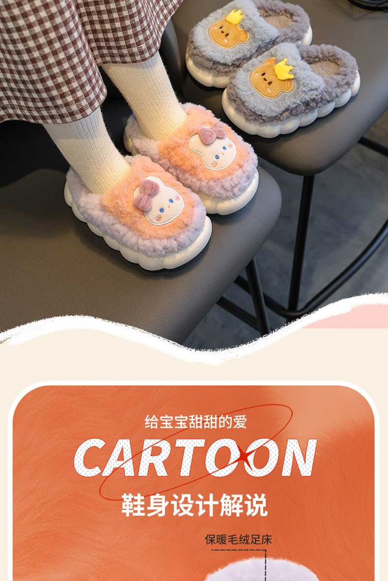 Winter Children's Cotton Slippers for Boys and Girls, Warm, Non-Slip, Fleece-Lined, Parent-Child Matching, Closed-Back, for Toddlers and Babies