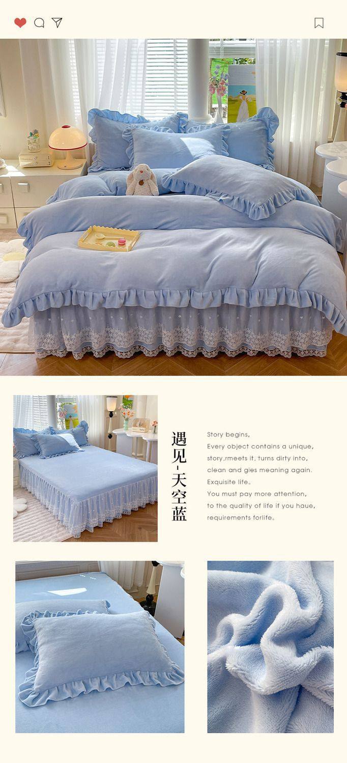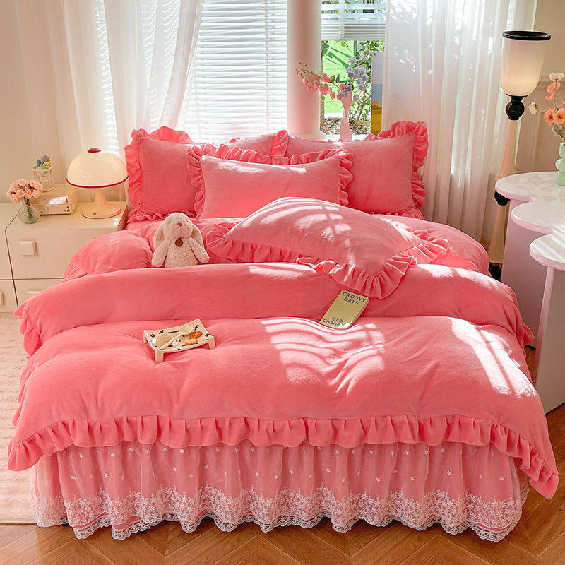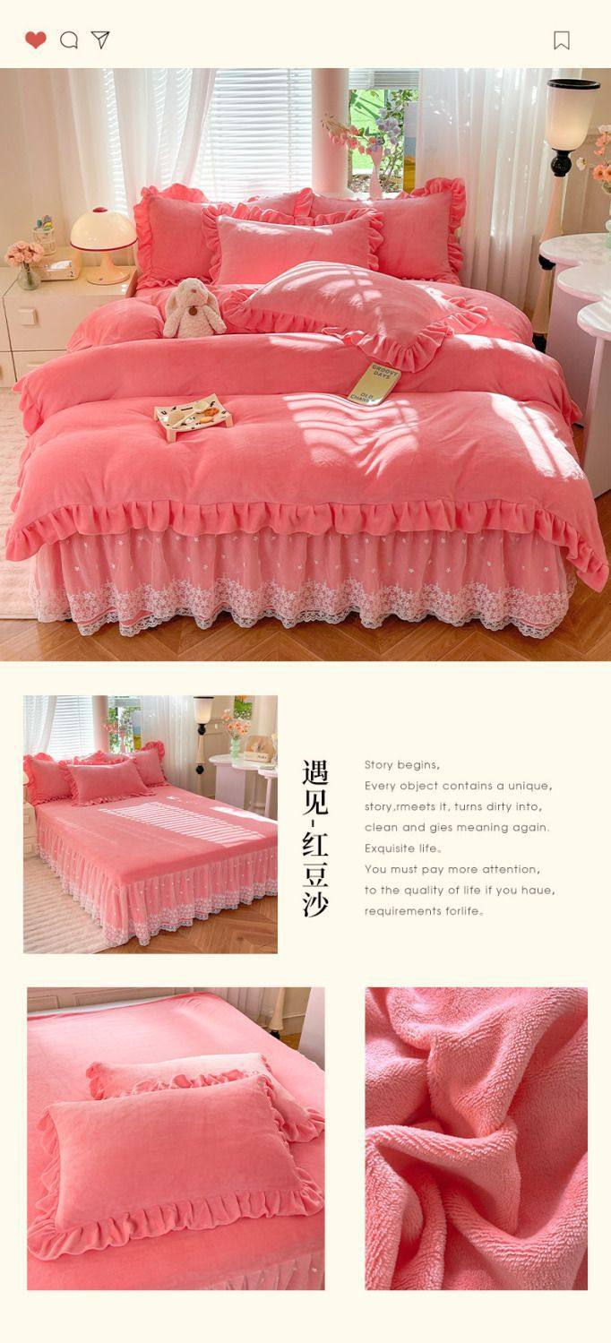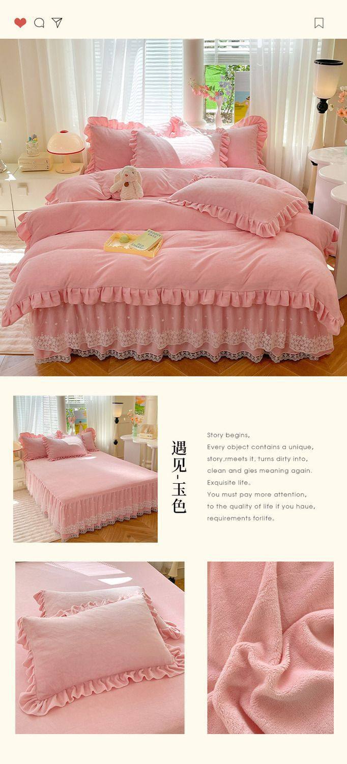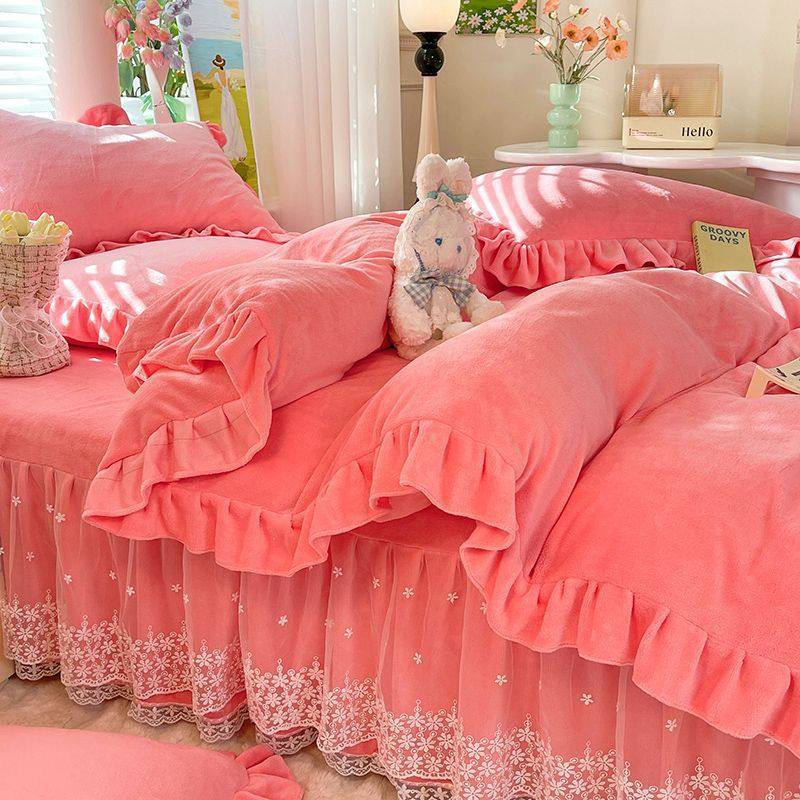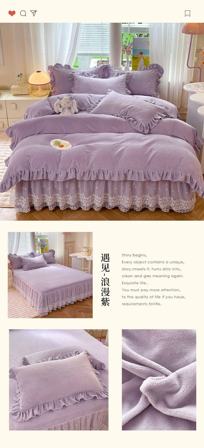 Winter Thickeneded Milk Velvet Bed Skirt Four-Piece Set Double-Sided Velvet Quilt Cover Bed Sheets Three-Piece Set Quilt Cover Bedding