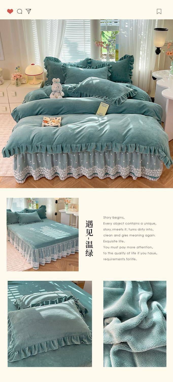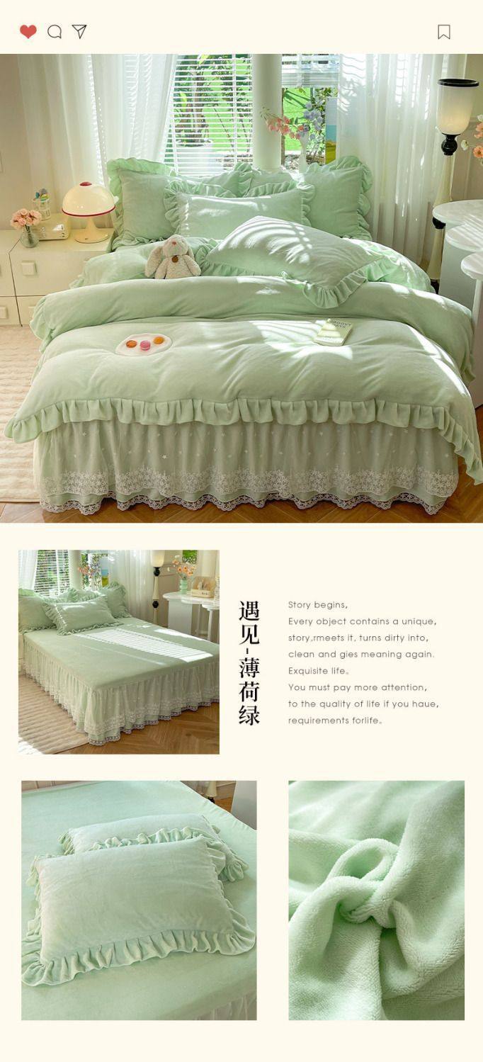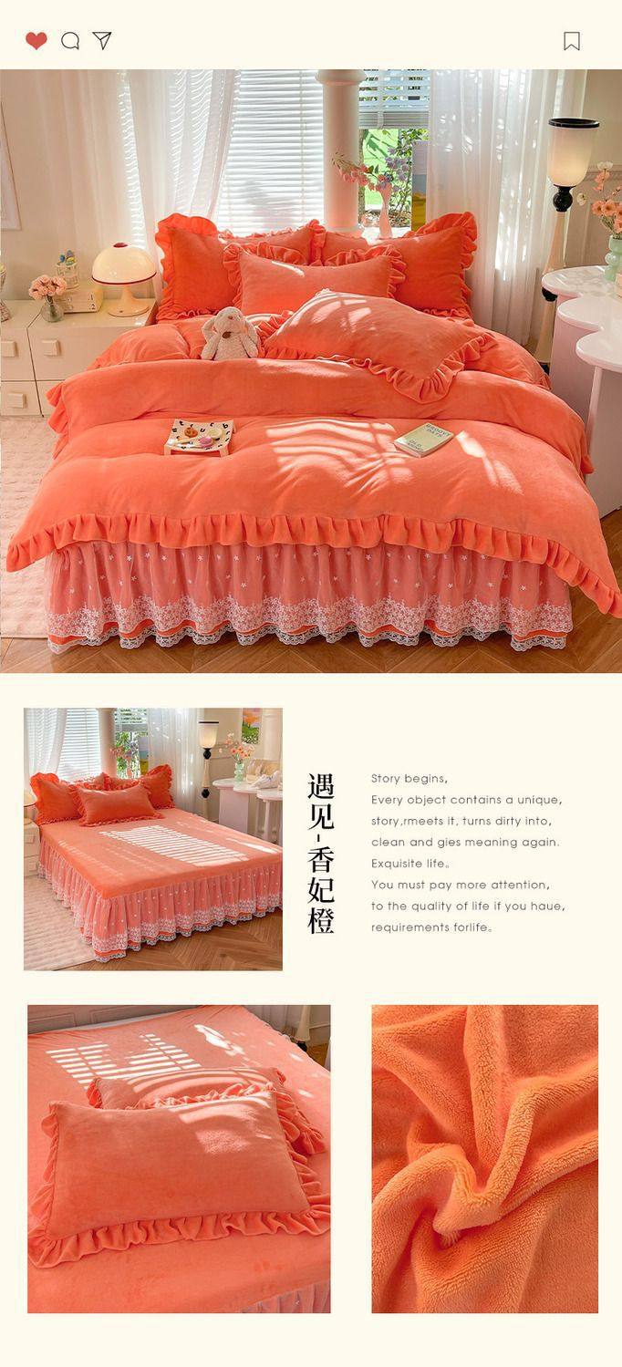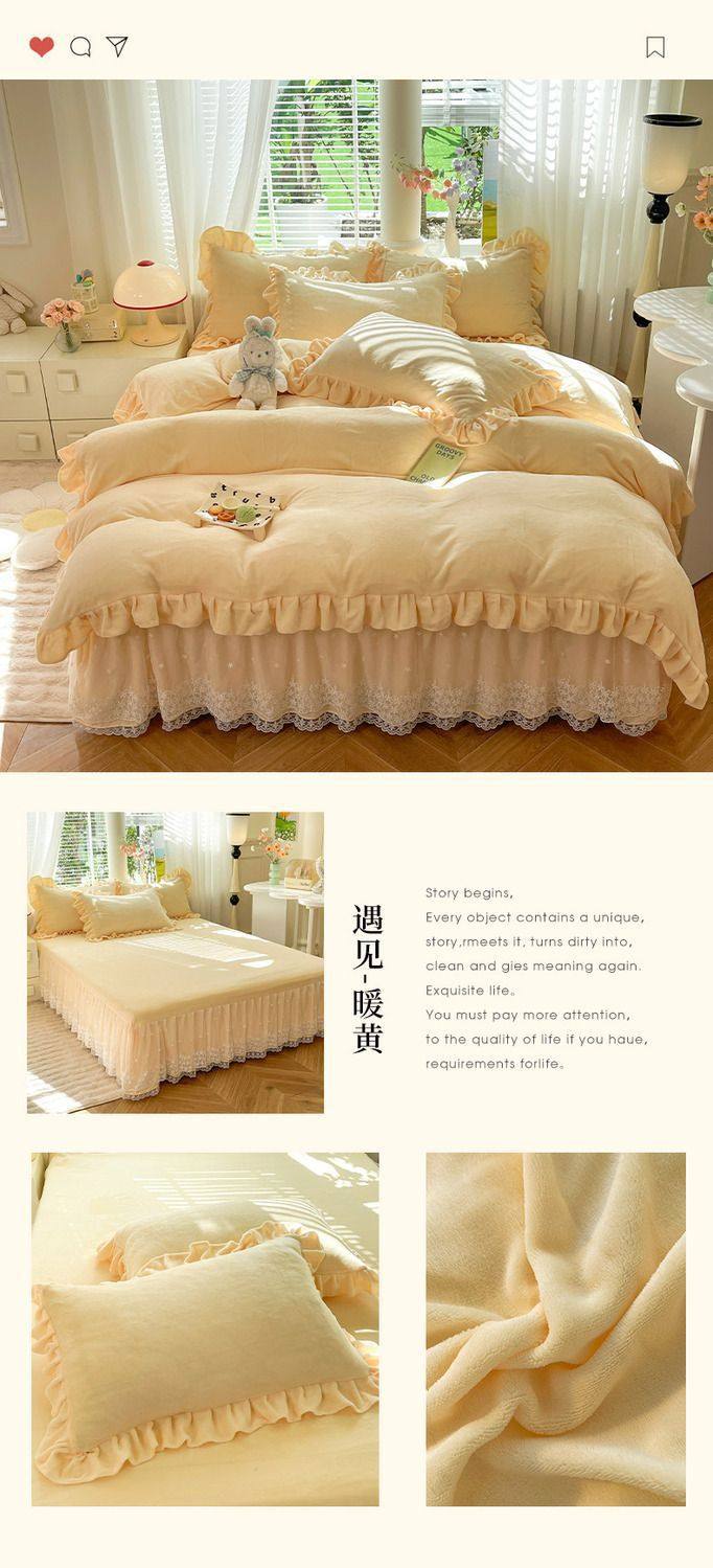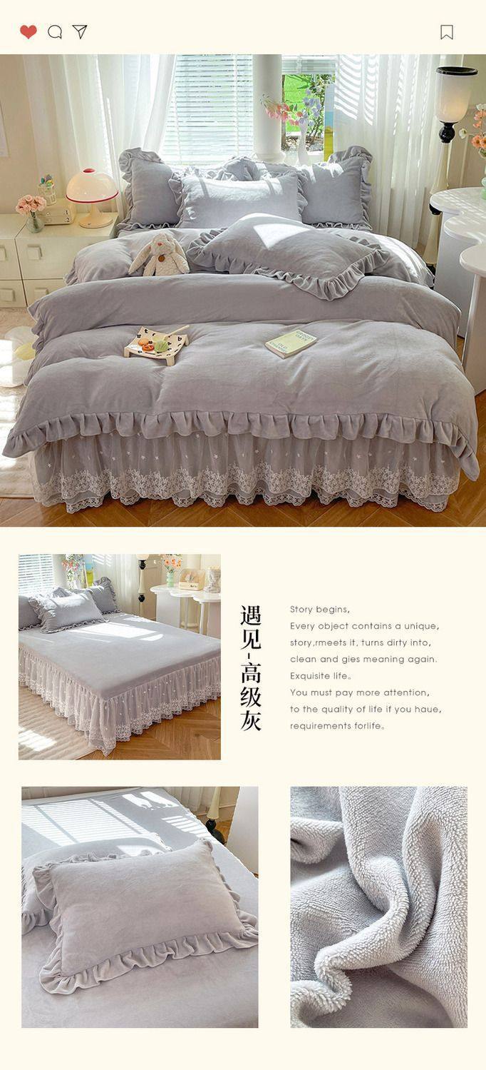 Winter Thickeneded Milk Velvet Bed Skirt Four-Piece Set Double-Sided Velvet Quilt Cover Bed Sheets Three-Piece Set Quilt Cover Bedding