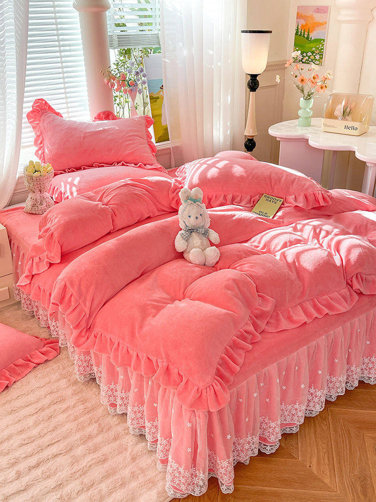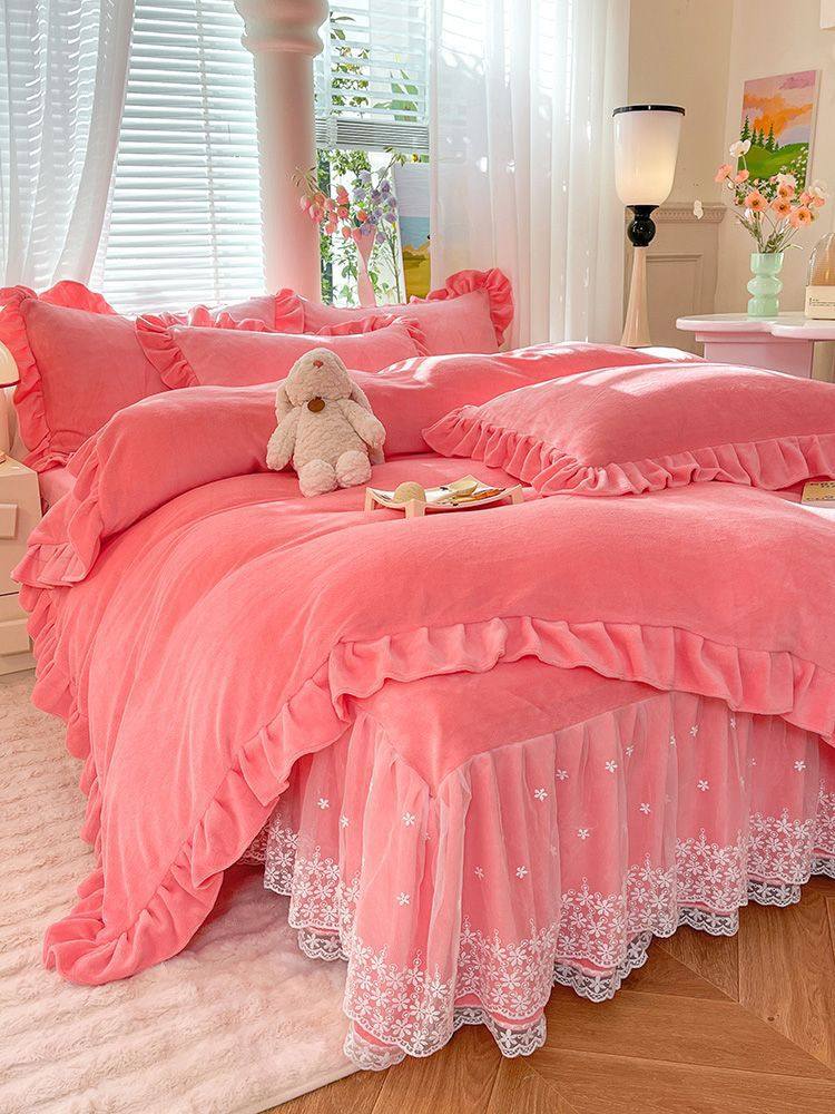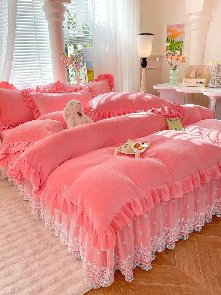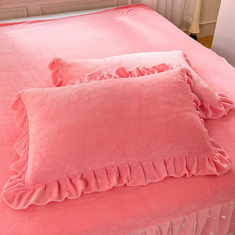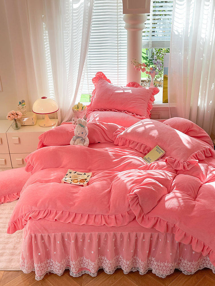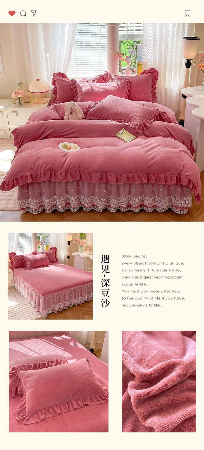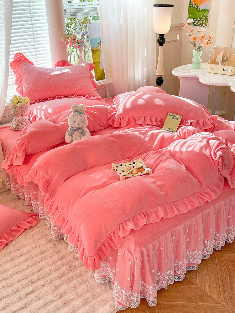 Winter Thickeneded Milk Velvet Bed Skirt Four-Piece Set Double-Sided Velvet Quilt Cover Bed Sheets Three-Piece Set Quilt Cover Bedding
