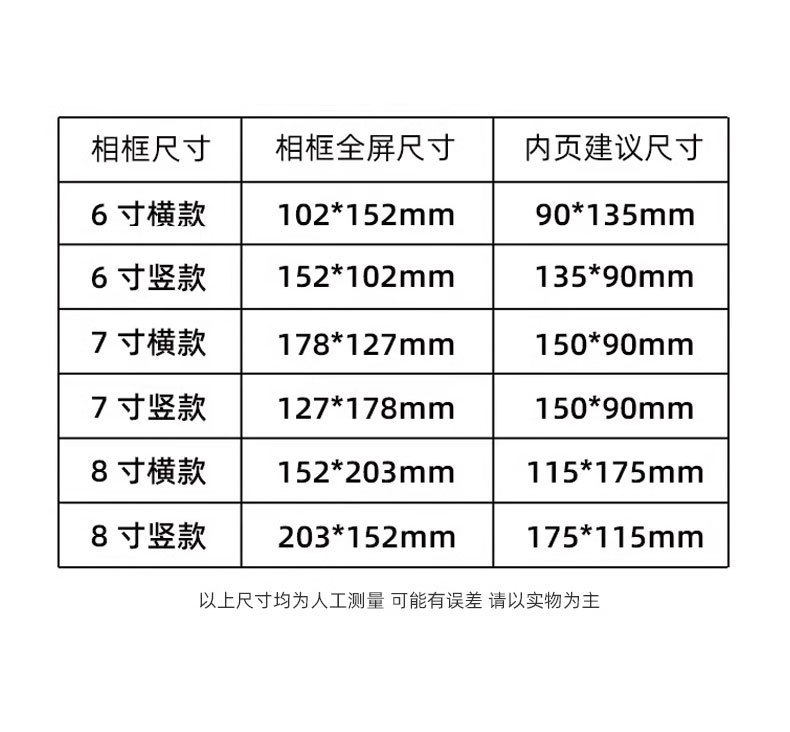 | Frame size | Photo frame bottom base is 45mm wide, and the other three sides are 9mm wider |