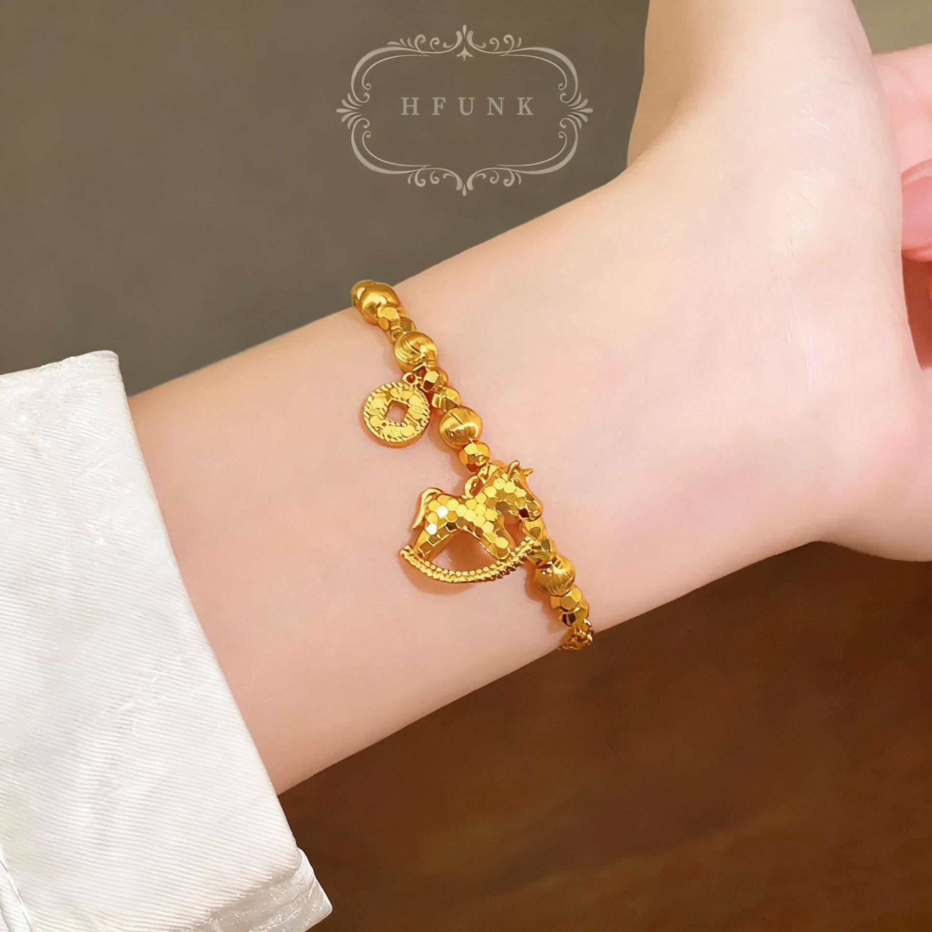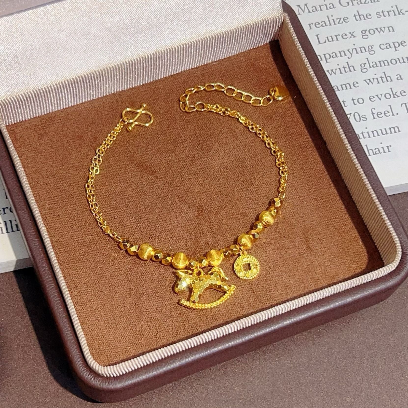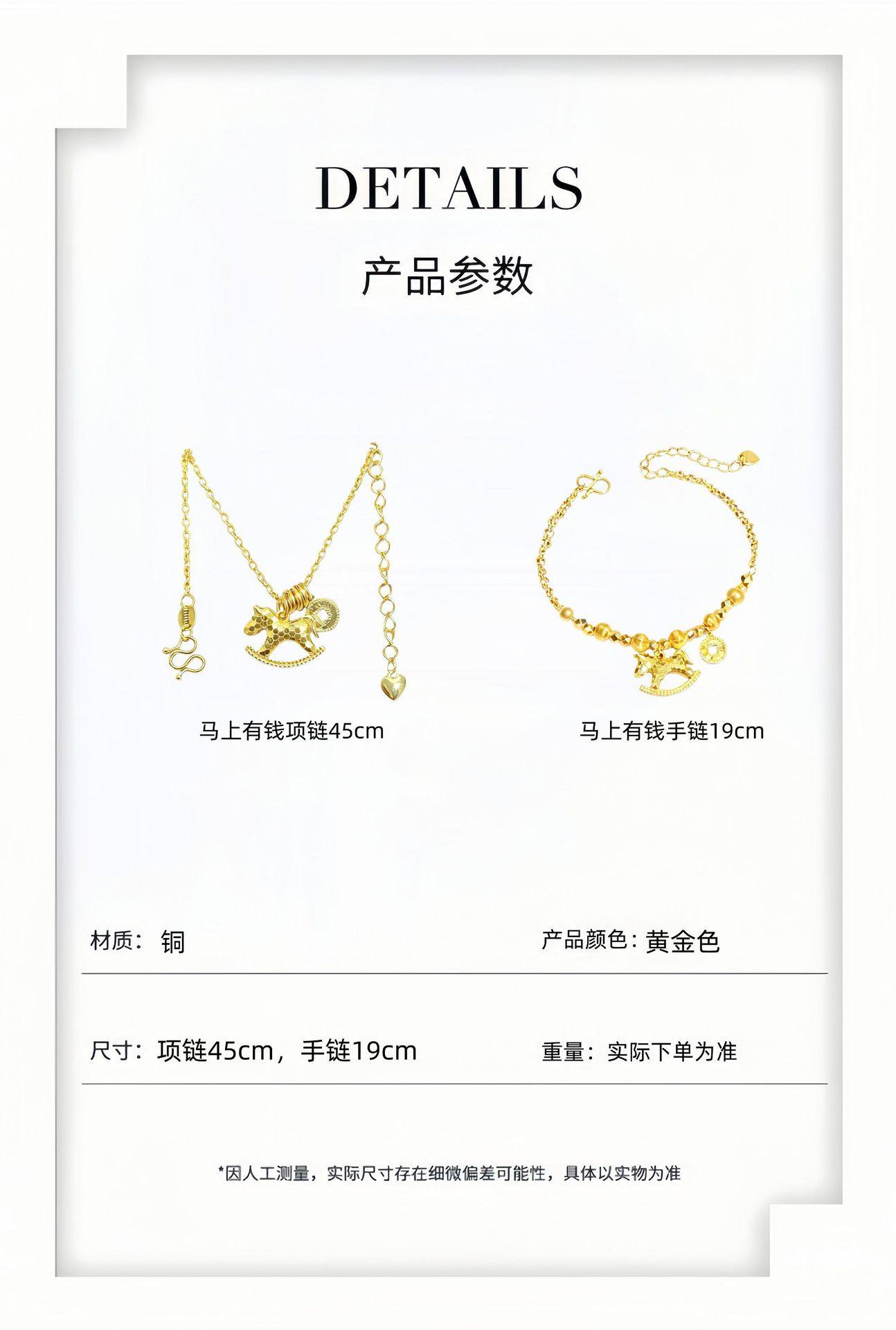 Get Rich Immediately, Sand Gold, Sparkling Crushed Ice, Golden Trojan Horse Necklace, Pony Copper Coin Bracelet, Stacked High-End Clavicle Chain