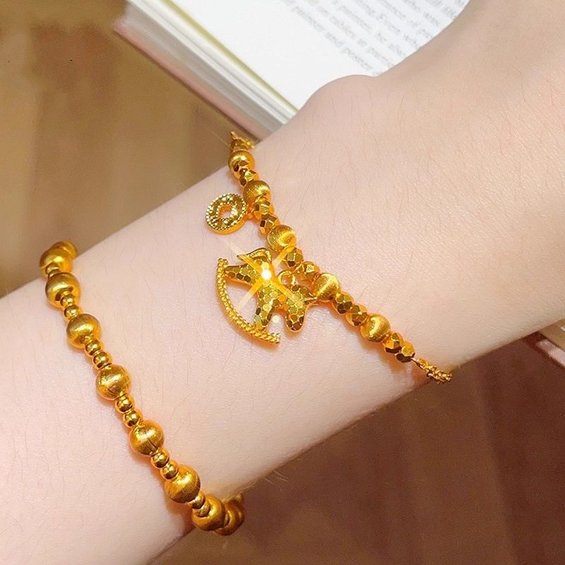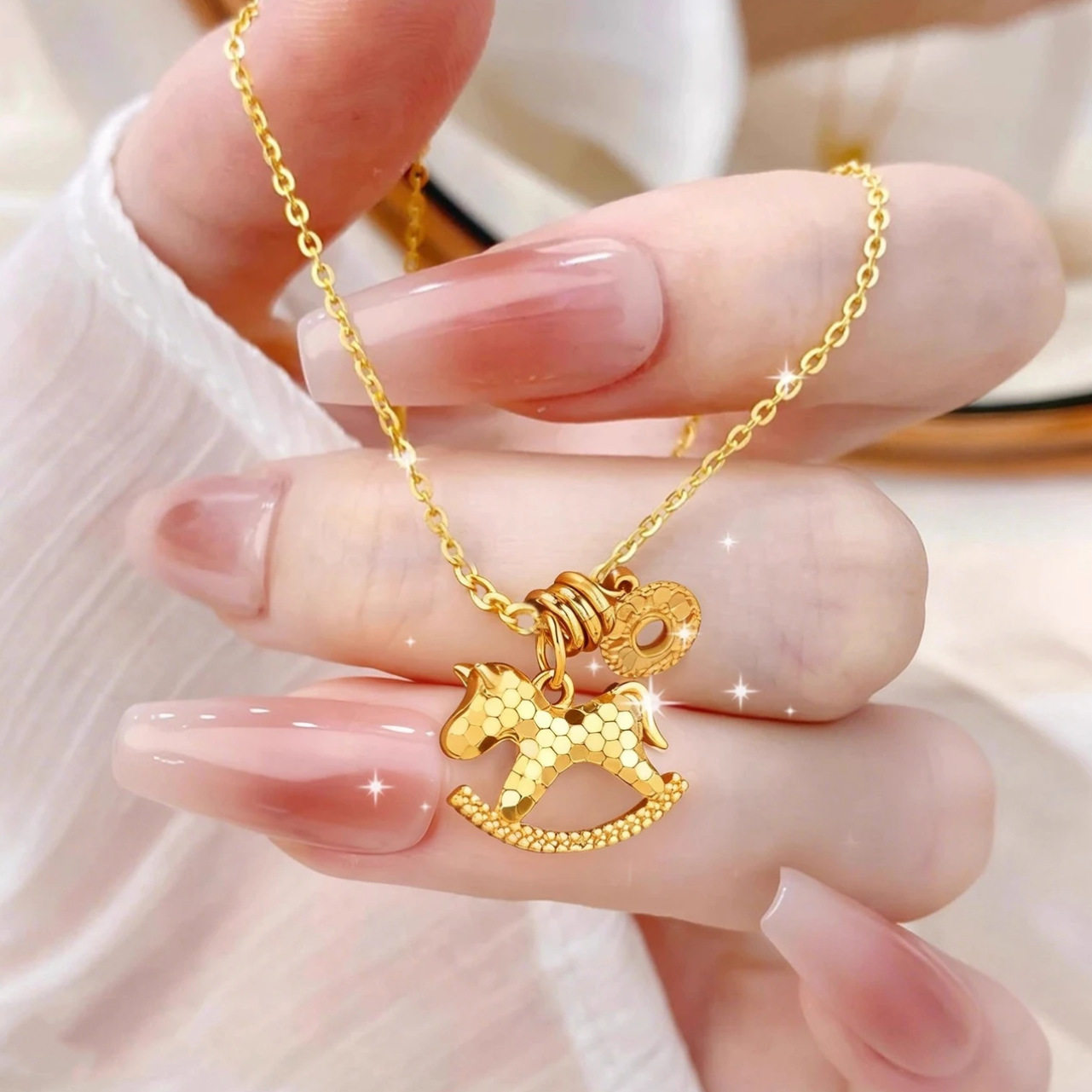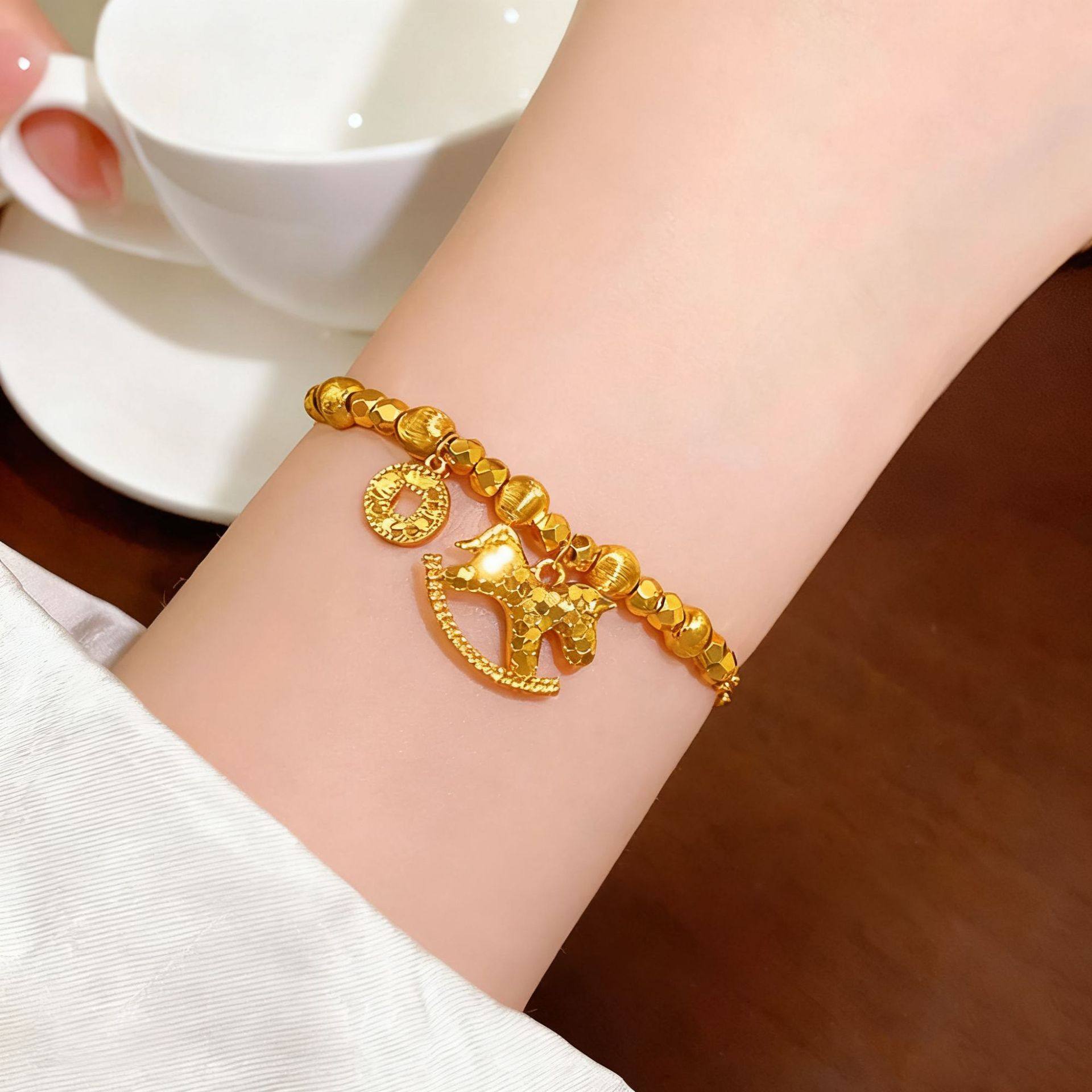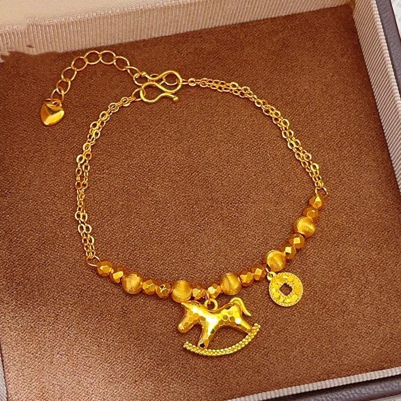 Get Rich Immediately, Sand Gold, Sparkling Crushed Ice, Golden Trojan Horse Necklace, Pony Copper Coin Bracelet, Stacked High-End Clavicle Chain
