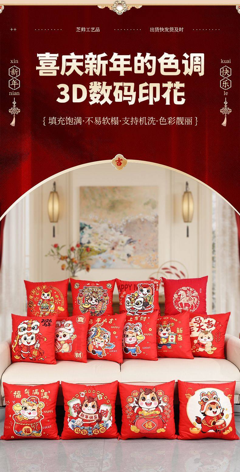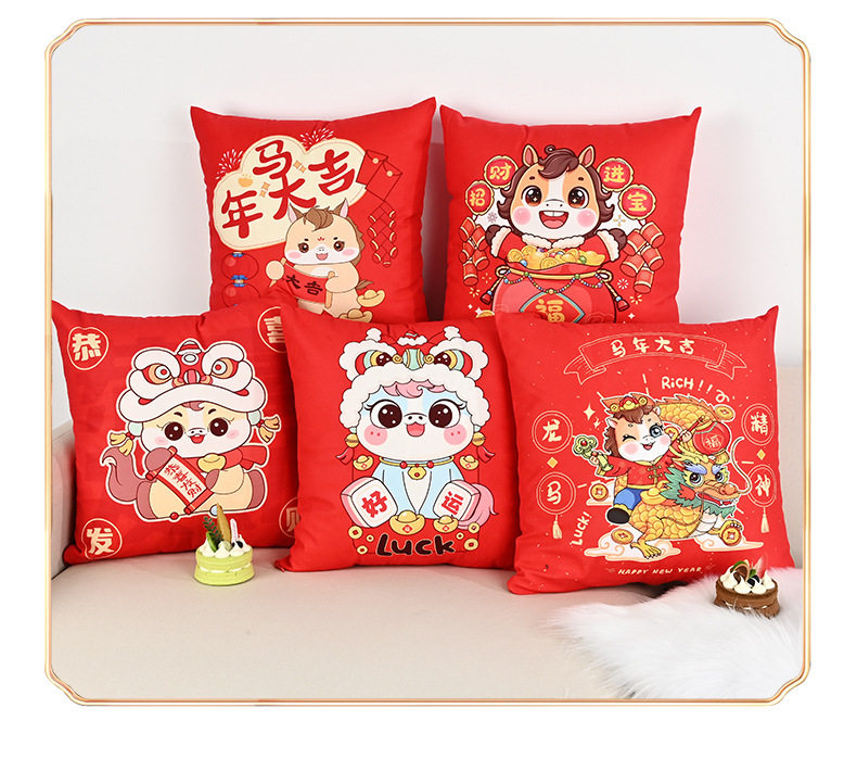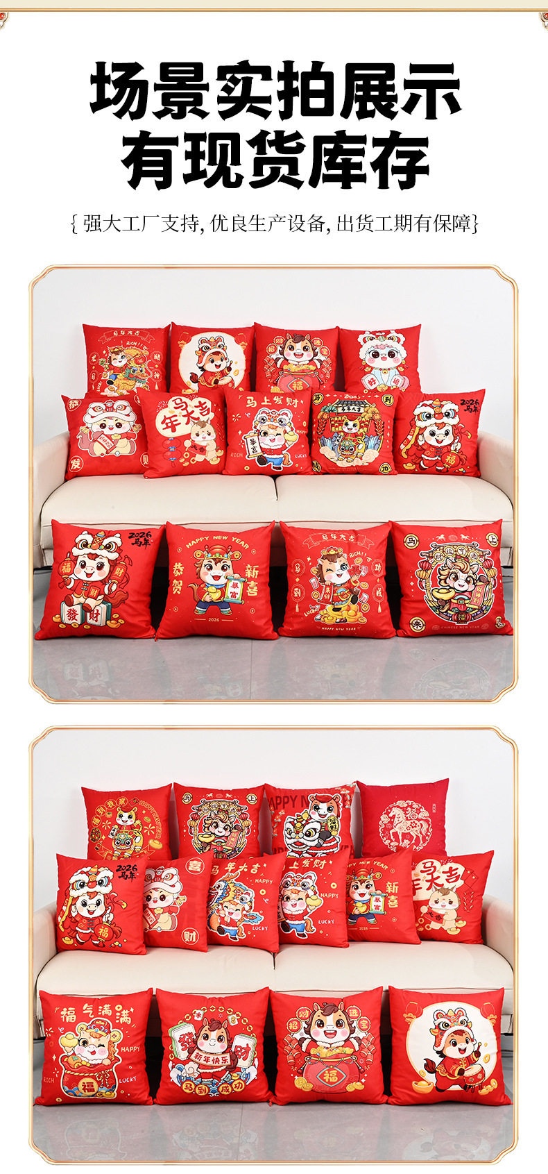 2026 Year of the Horse Has a Great Start, Red Festive Pillowcase, Waist Pillow with Printed Logo, New Year Living Room Sofa Decoration