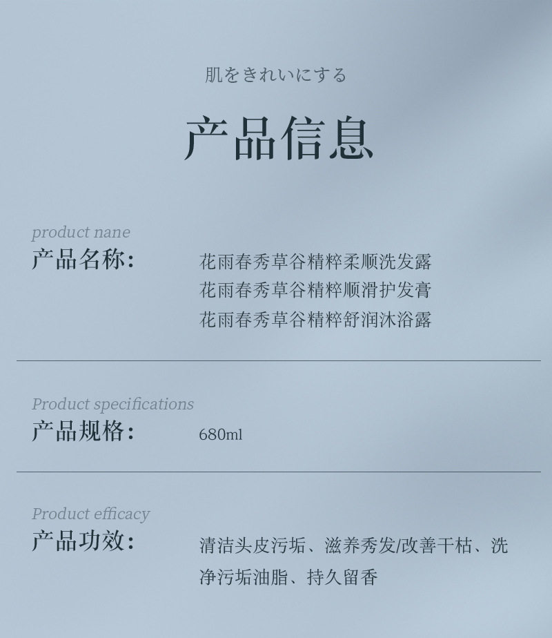 | Product series | Huayu chunxiu caogu essence cleansing and care series |