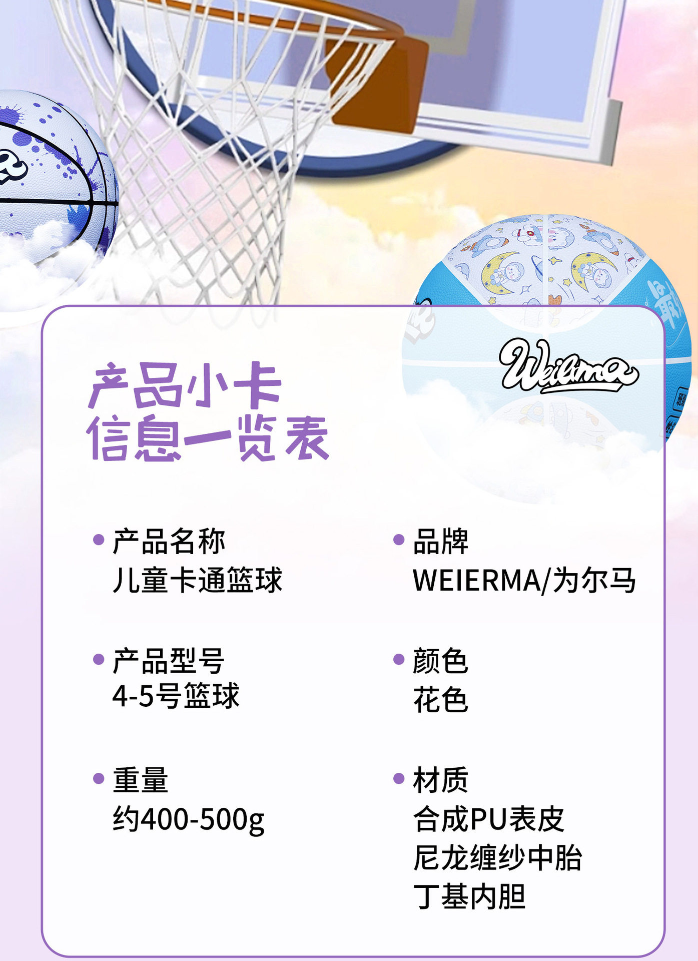 Weerma Cartoon No. 4 and No. 5 Basketball Primary School Students Kindergarten Kidsren Men and Women Youth Training Game Ball
