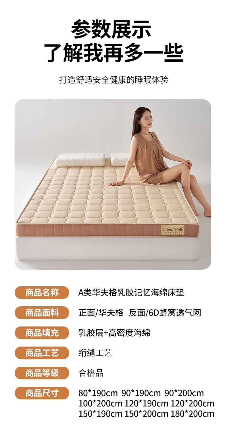 Latex Memory Foam Mattress Topper for Home Bedroom 180X200, Suitable for Rental Apartments, Dormitories, Students, Single Tatami Mat