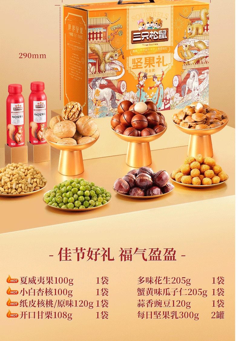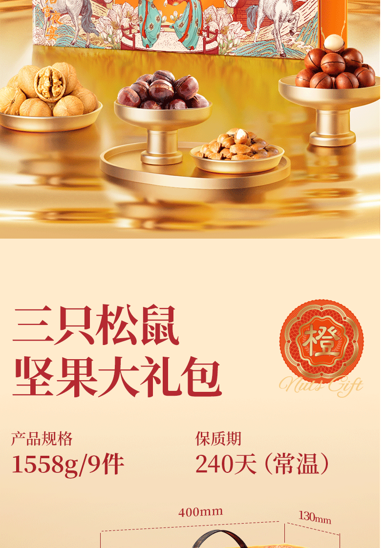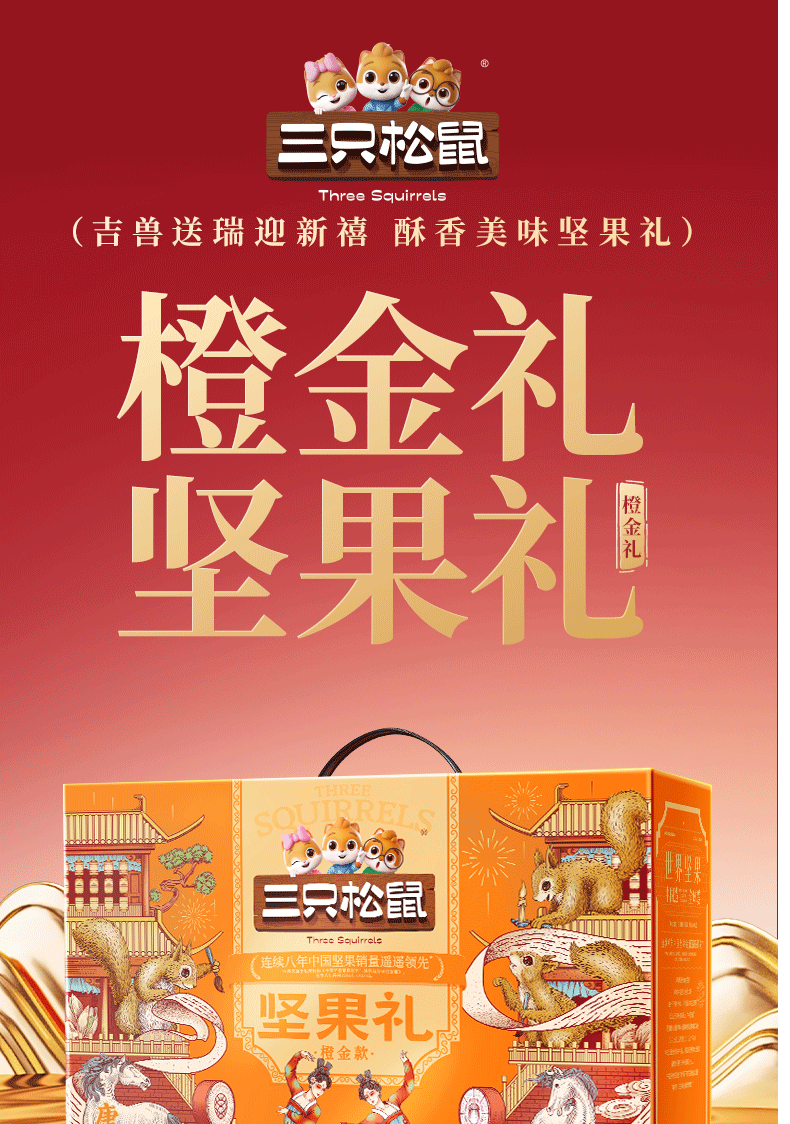 Three Squirrels Gift Box Orange Gold Nut Snacks New Year Gift Pack Spring Festival High-End Gifts Corporate Welfare Group Purchase