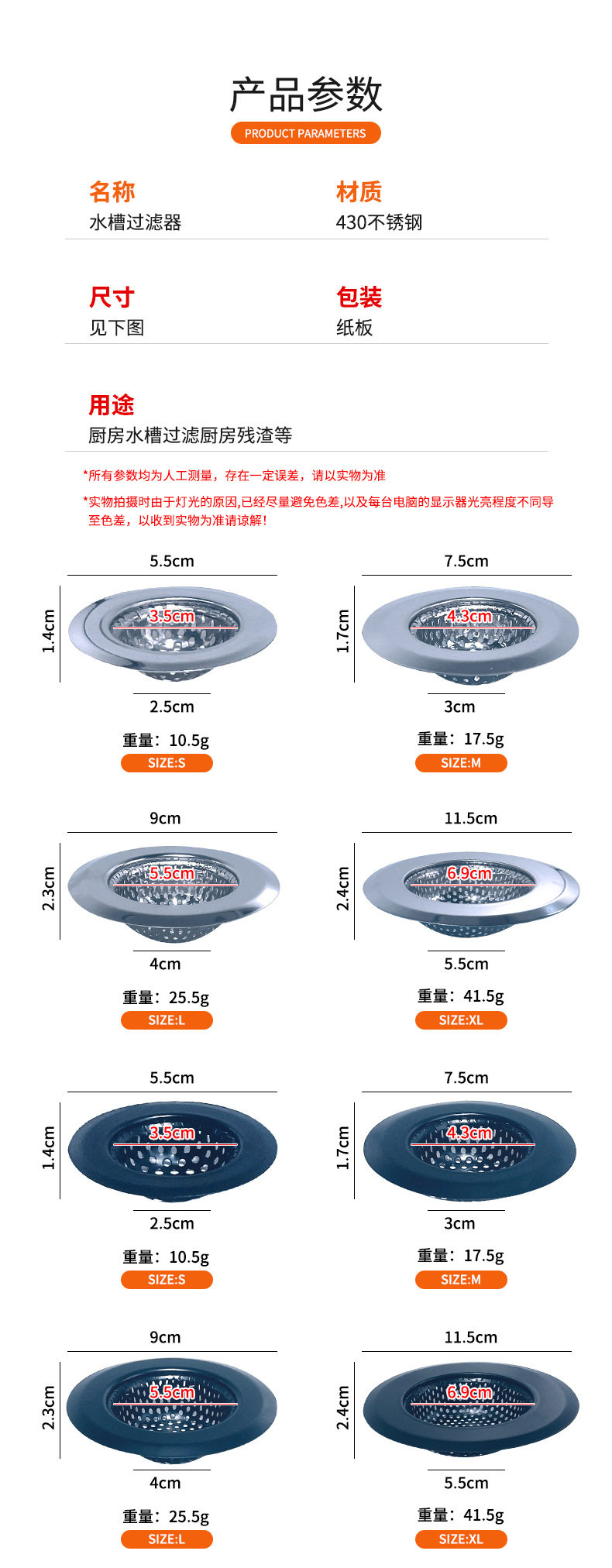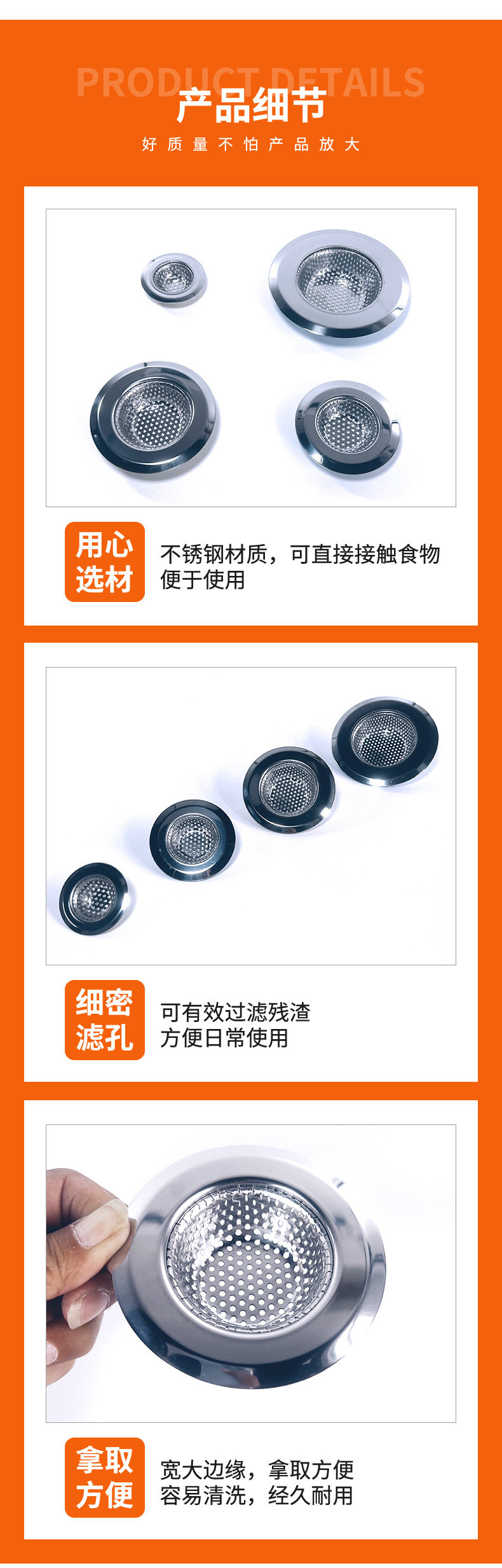 Sink Filter Kitchen Supplies Stainless Steel Metal Slag Separator Funnel Tool Sewer Drain Outlet Anti-Blocking Floor Drain