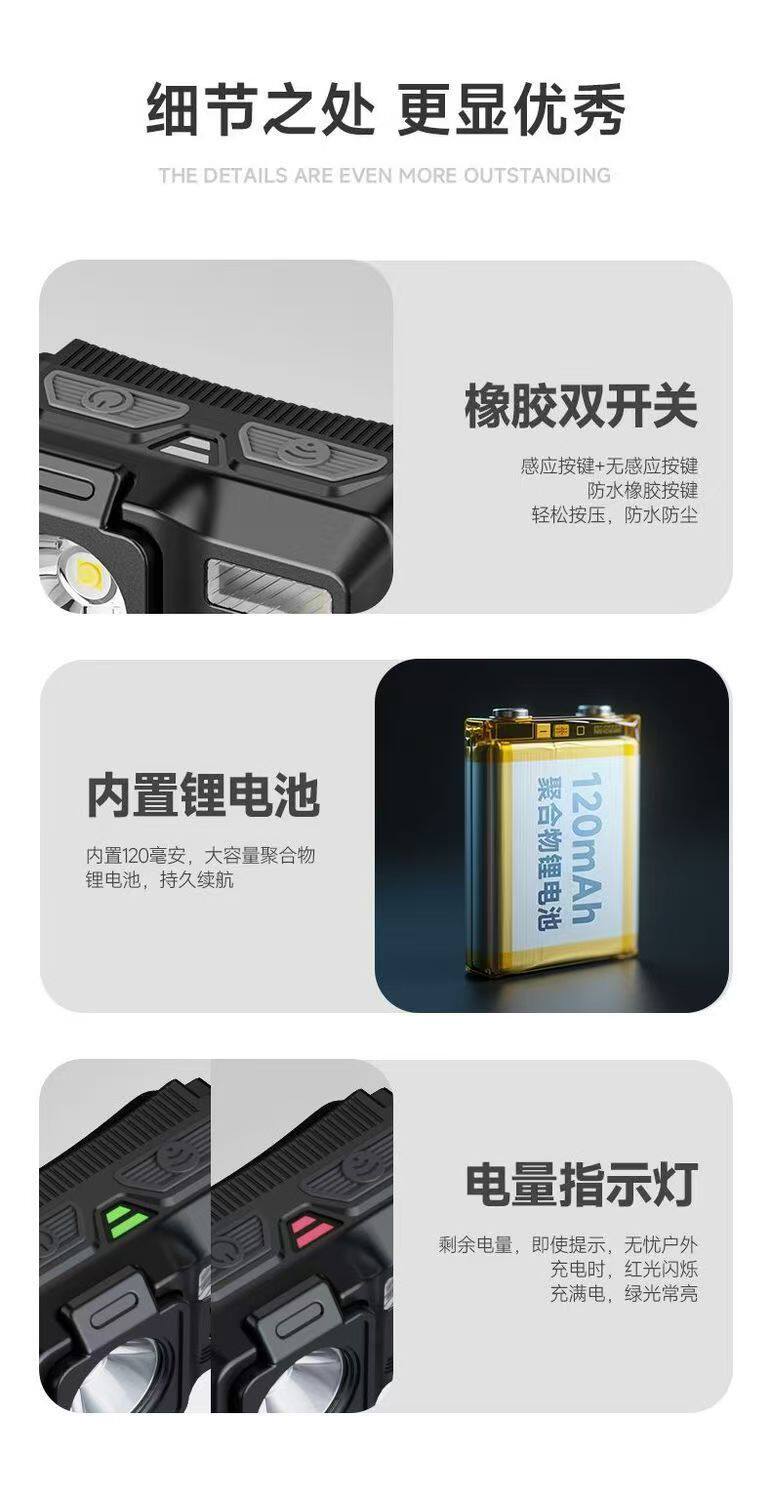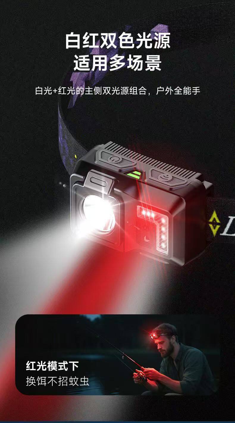 Dual Light Source Headlight, Strong Light, Ultra-Bright Rechargeable Laser Head-Mounted Flashlight, Long-Range Night Fishing, Ultra-Long Battery Life, Smart