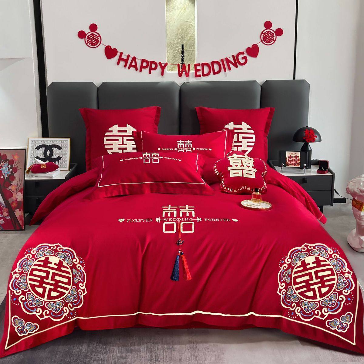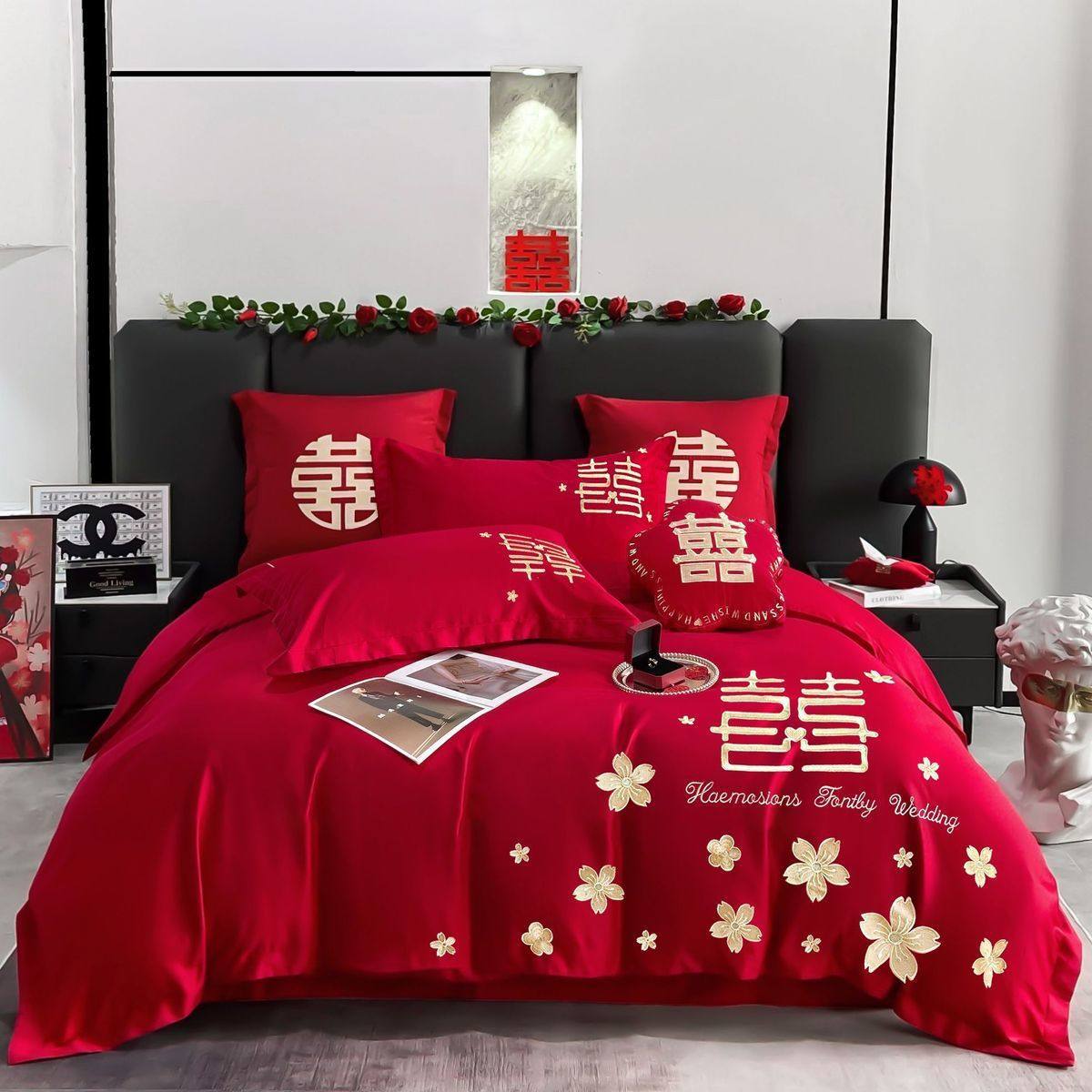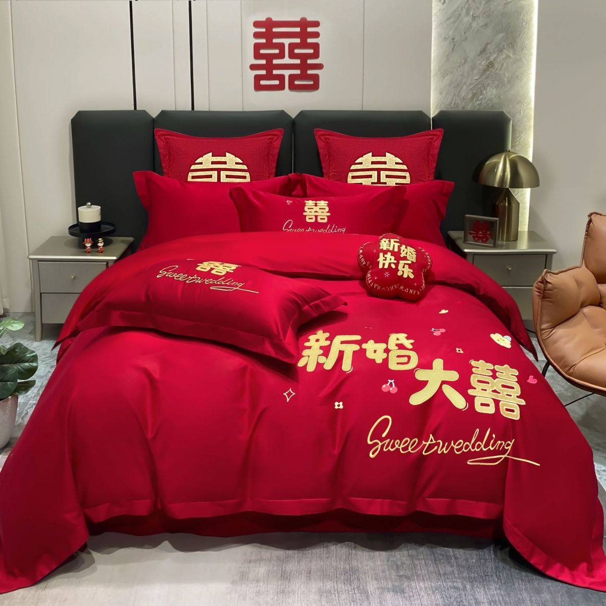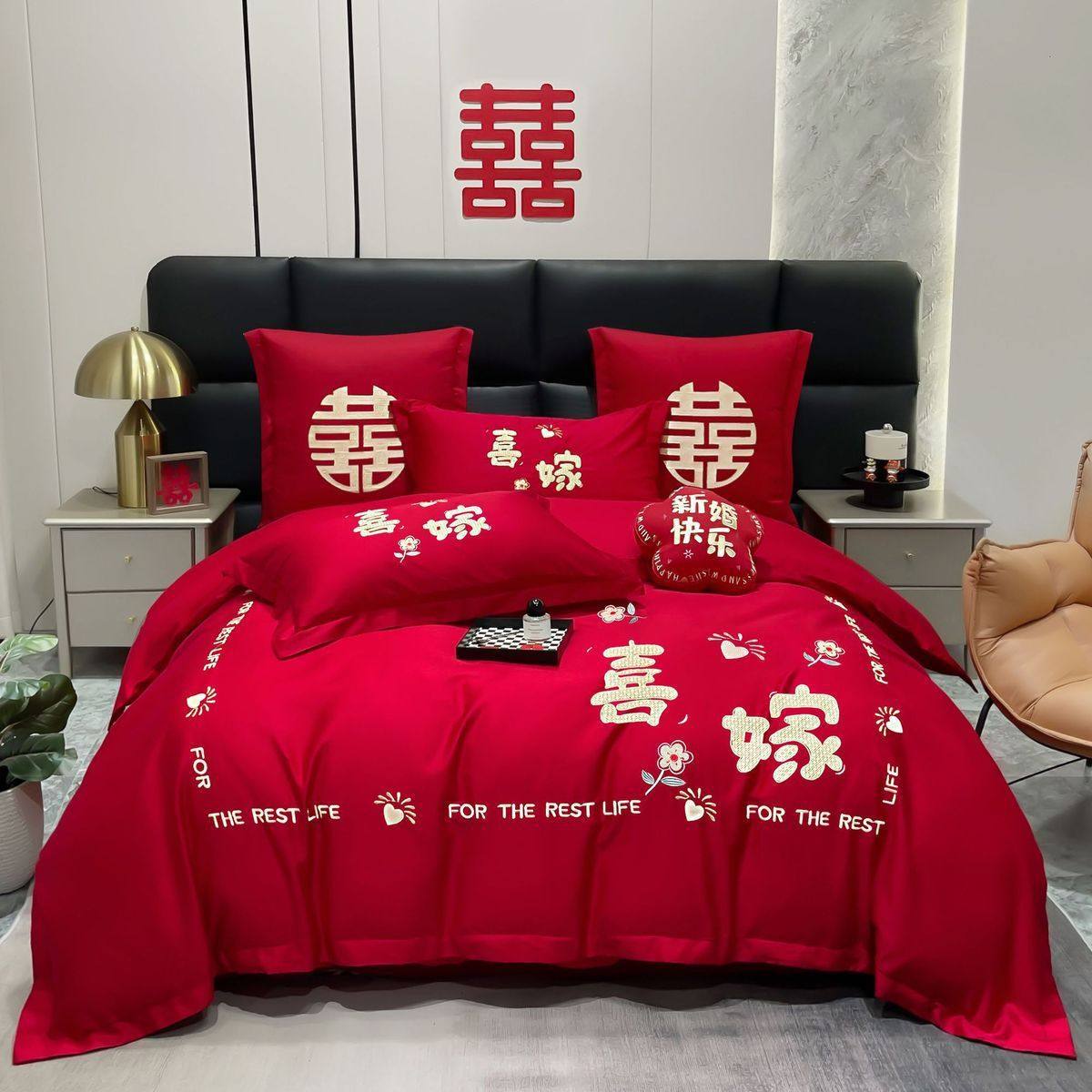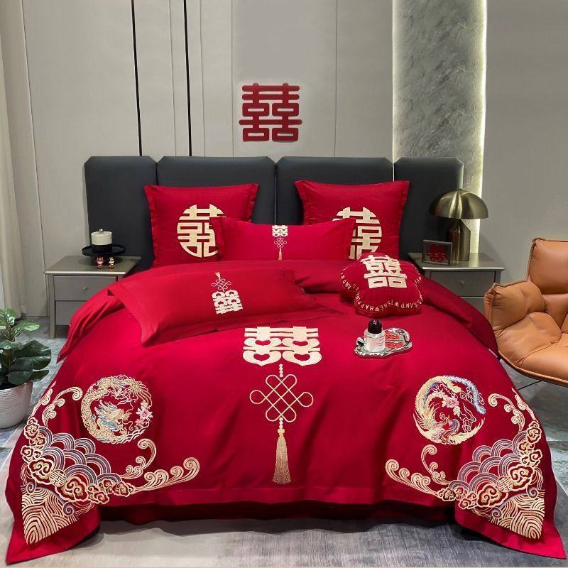 Wedding Bed Four-Piece Set Wedding Big Red Embroider Wedding Room Wedding Supplies Classy Chinese Style Wedding Bedding Set
