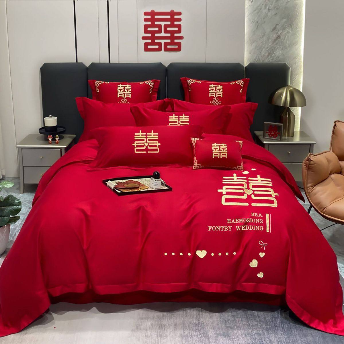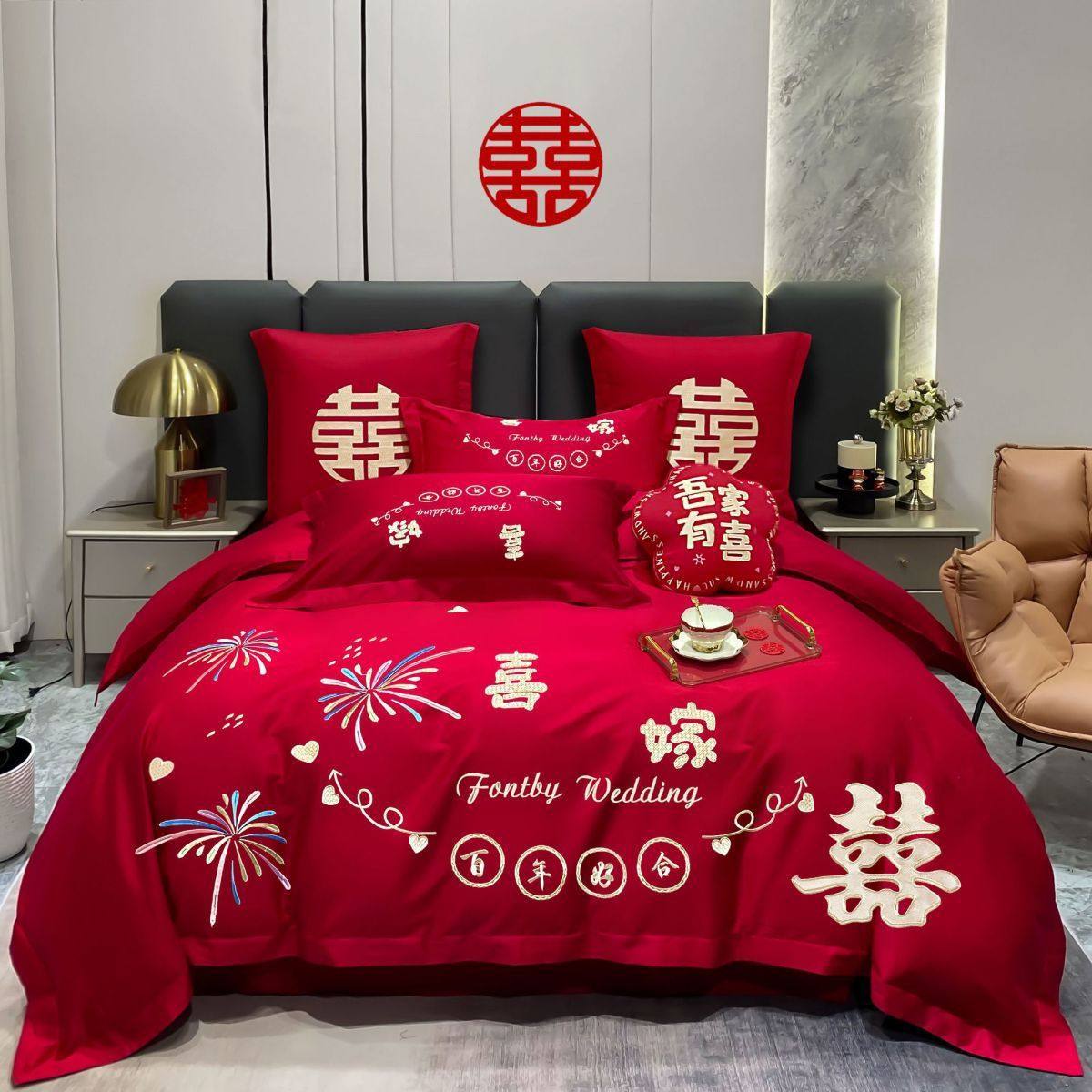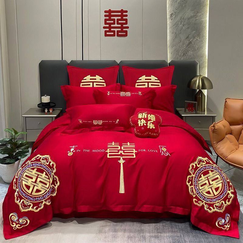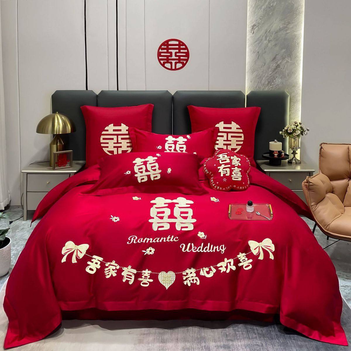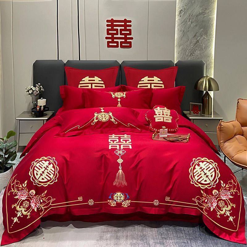 Wedding Bed Four-Piece Set Wedding Big Red Embroider Wedding Room Wedding Supplies Classy Chinese Style Wedding Bedding Set