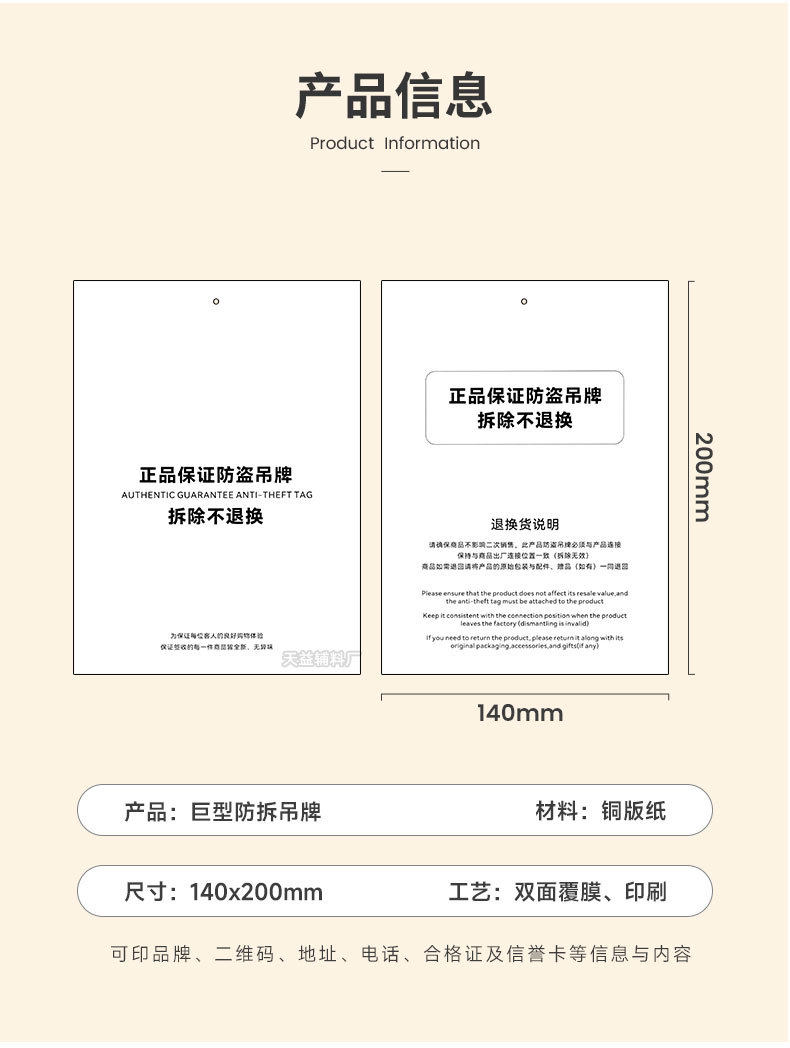 Extra Large Anti-Tamper Tag Customized Disposable Anti-Return Anti-Tamper Label Clothing Tag Card Logo Hanging Card Customized