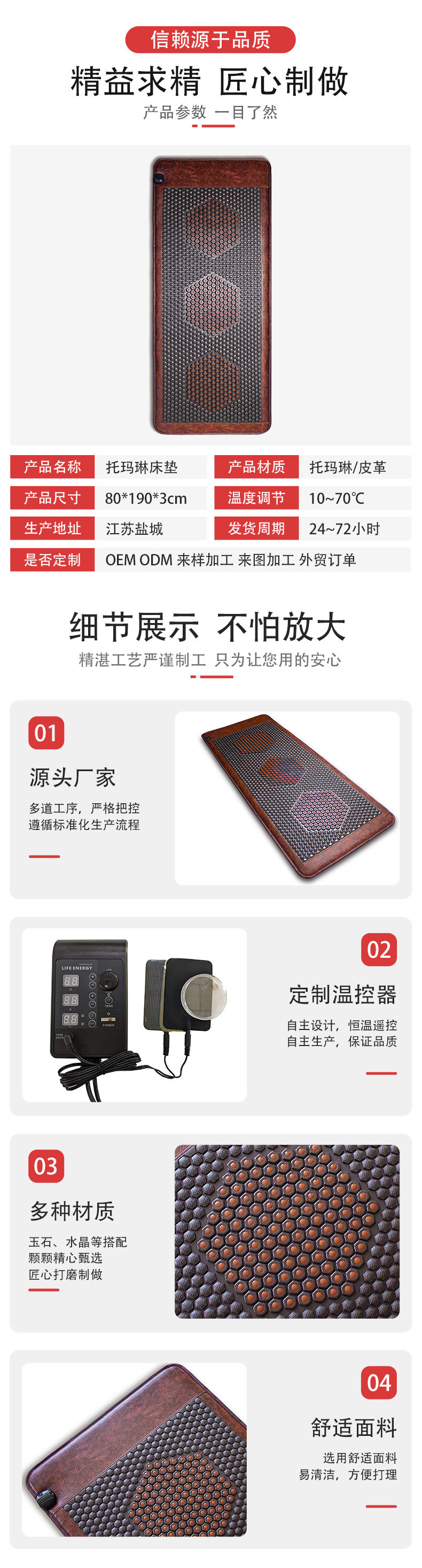 Tourmaline Heating Pad Stone Heating Mattress Far Infrared Ultra-Long Wave Pemf Physiotherapy Graphene Jade Mattress