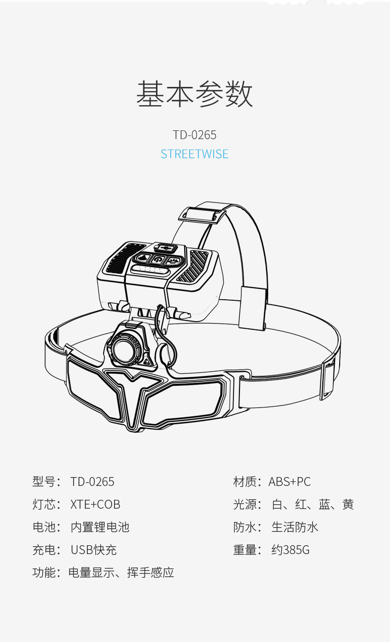 | Color | Td-0265 true color - induction headlight [equipped with 2 18650 lithium batteries] 11 levels of adjustment |