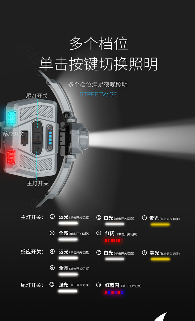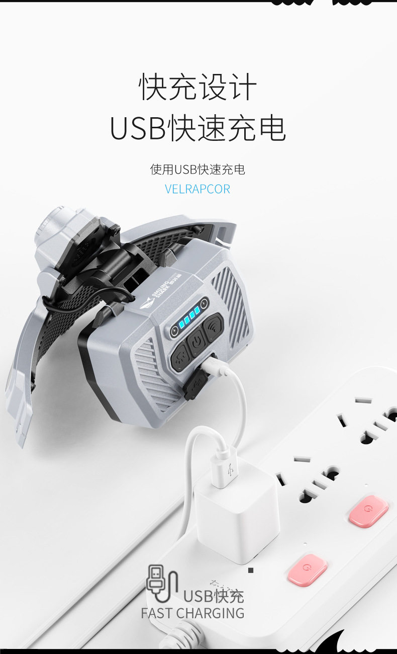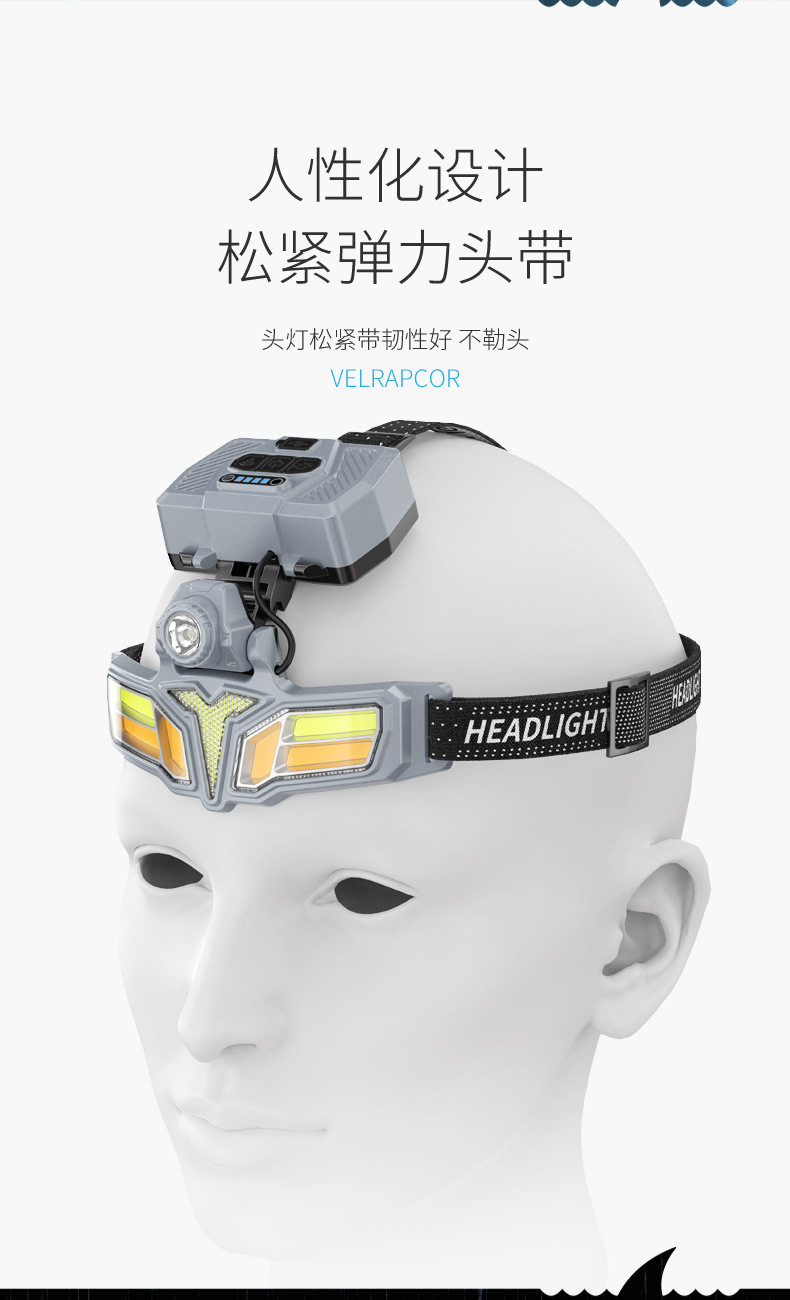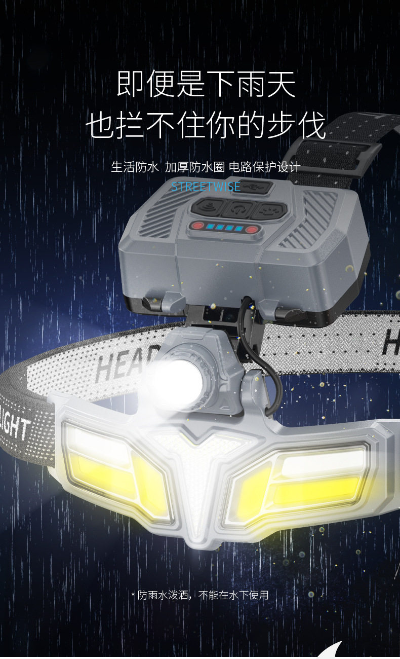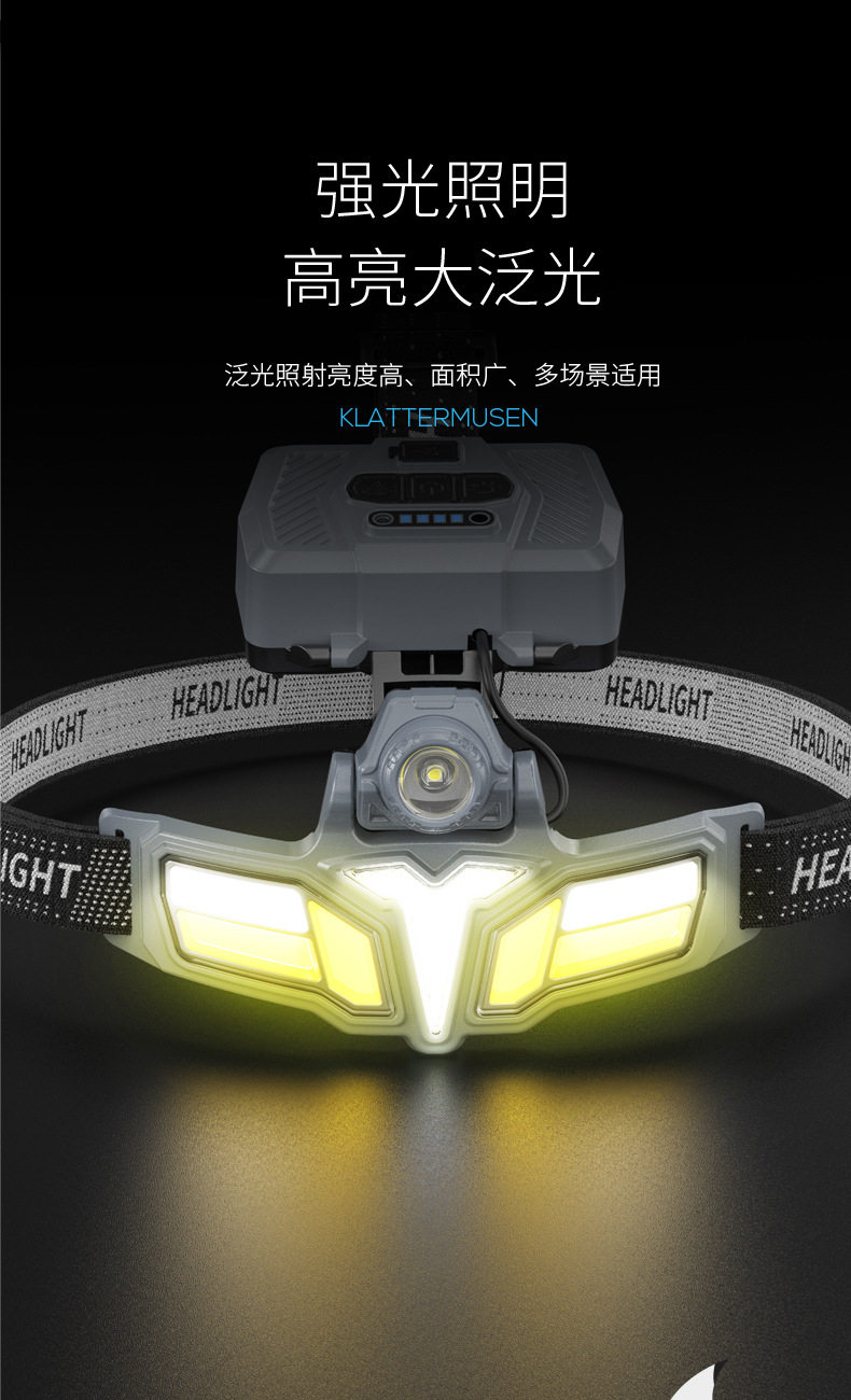 Cross-Border New Outdoor Lighting Strong Light Induction Headlight Super Bright Night Fishing Head-Mounted Work Light Lightweight Rechargeable Extra Long