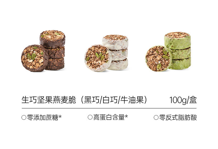 | Net content (specification) | 100g (per box)-[buy 2 get 1 free] black qiao flavor*1 box + white qiao flavor*1 box, get 1 box of avocado flavor (3 boxes in total),100g (per box) - black qiao nut oatmeal crisp*2 boxes, plus 1 box (3 boxes in total),100g (per box) - baiqiao nut oatmeal crisp*2 boxes, plus 1 box (3 boxes in total),100g (per box) - avocado flavored nut oatmeal crisp*2 boxes, plus 1 box (3 boxes in total),100g (per box)-[buy 4 and get 2 free] black qiao flavor*2 boxes + white qiao flavor*2 boxes, get 2 boxes of avocado flavor (6 boxes in total),100g (per box)-black qiao flavor nut oatmeal crisp*1 box |