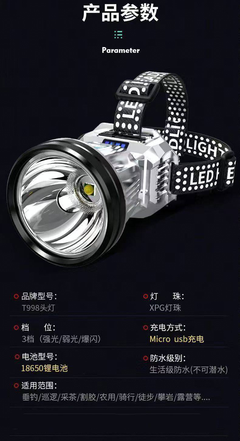 Headlamp Strong Light Long-Range Rechargeable Waterproof Ultra-Bright Head-Mounted Night Fishing Lamp Miner's Lamp Ultra-Long Life Flashlight