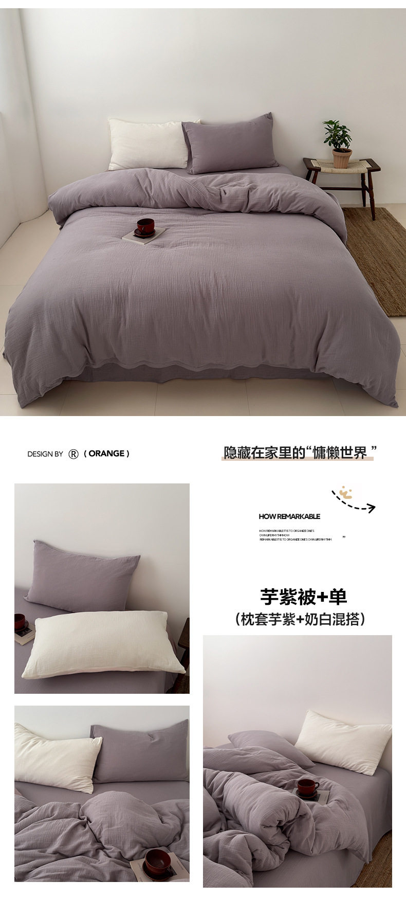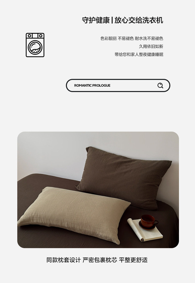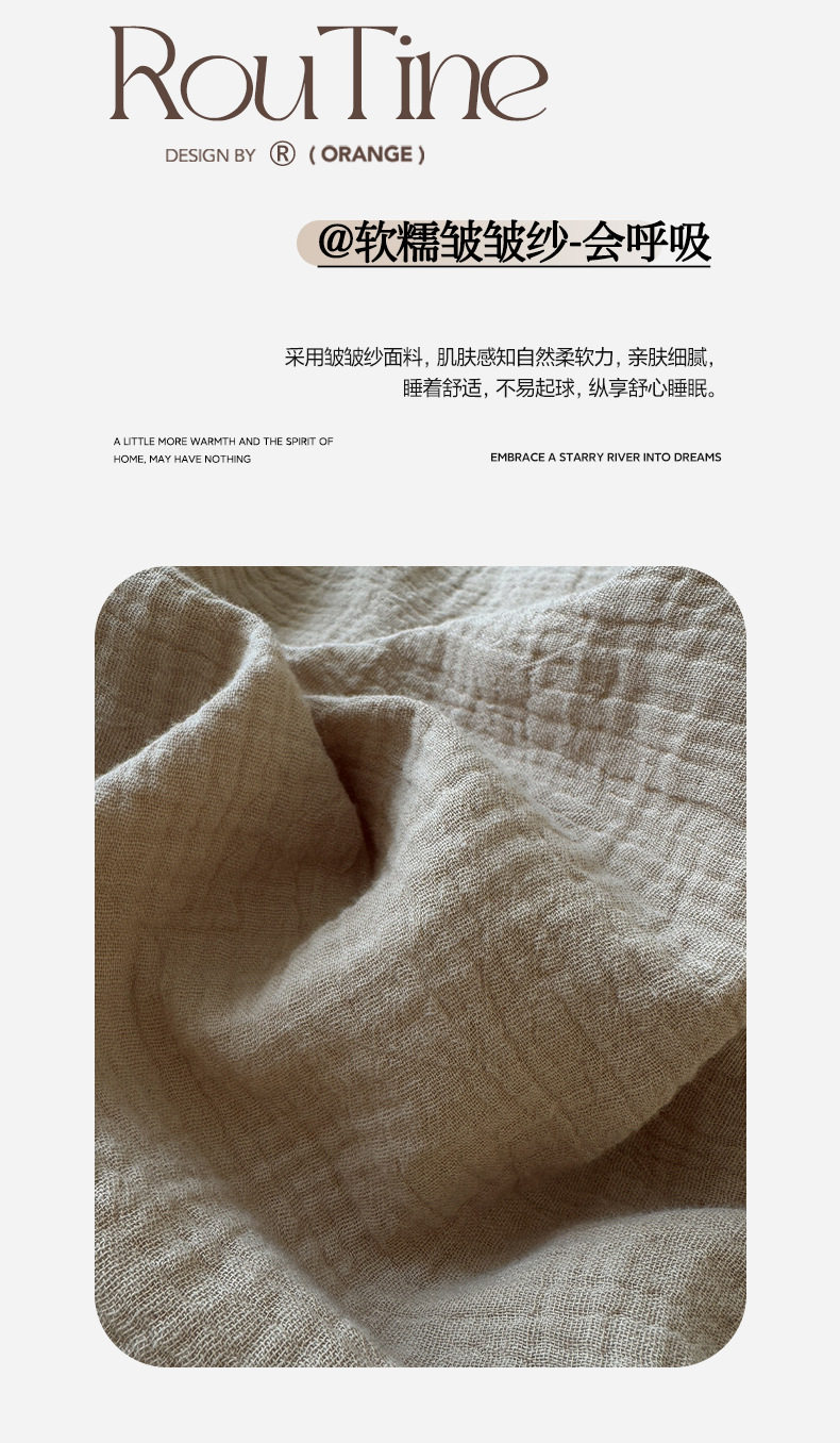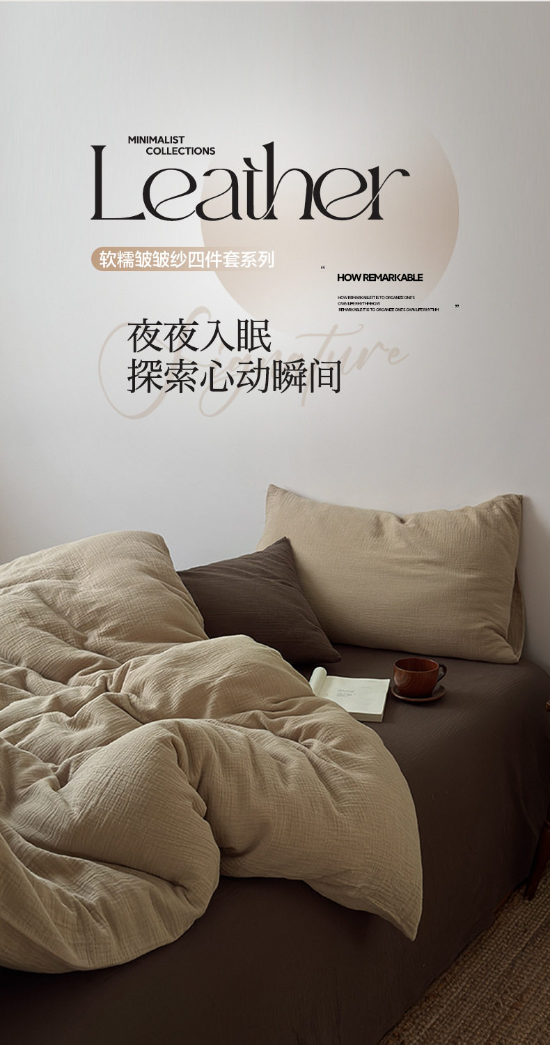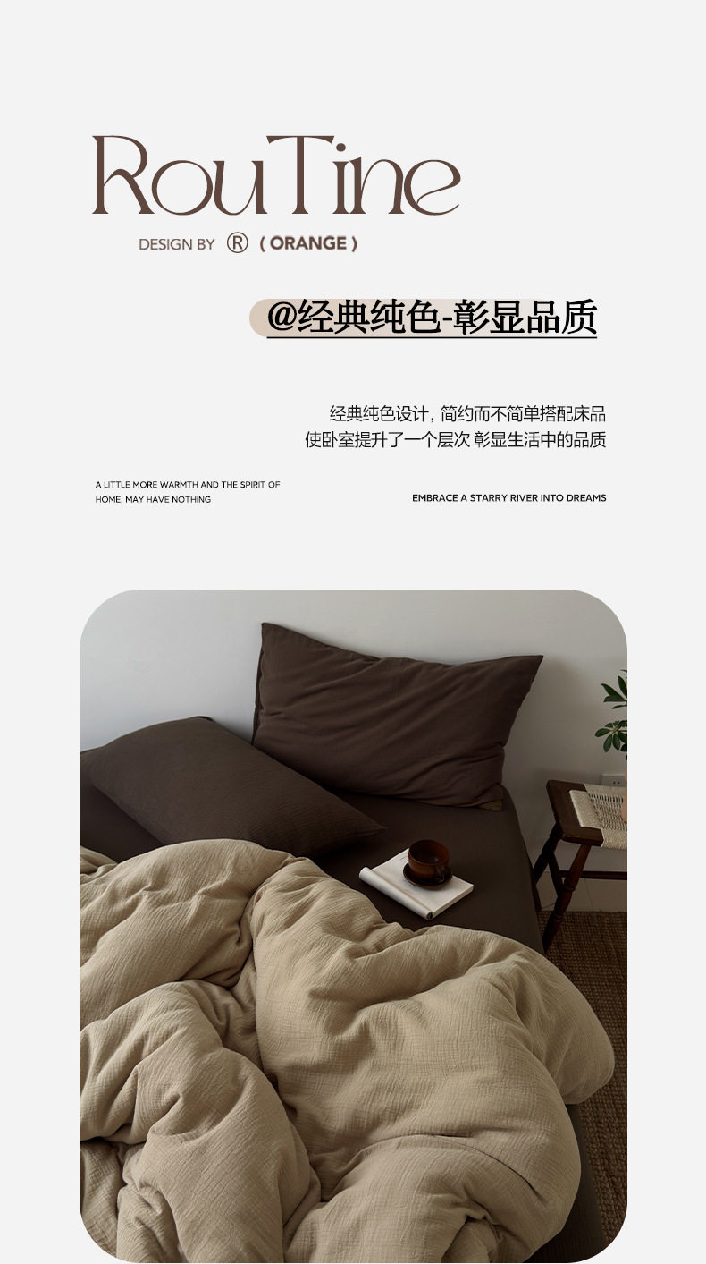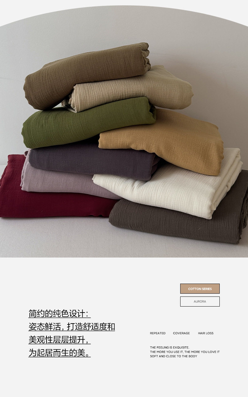 Pure Cotton Wrinkled Yarn Four-Piece Bed Bed Sheets Quilt Cover Bed Bed Sheets Pure Cotton Pure Color Simple Japanese Style Unprinted Style Dormitory Three-Piece Set