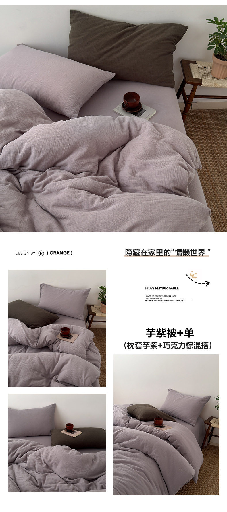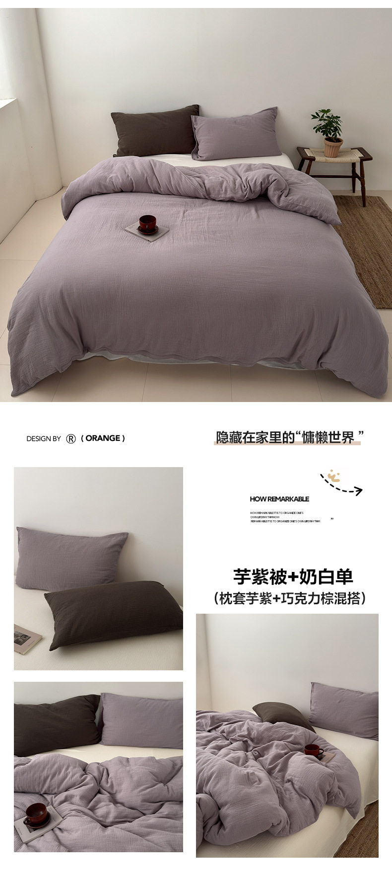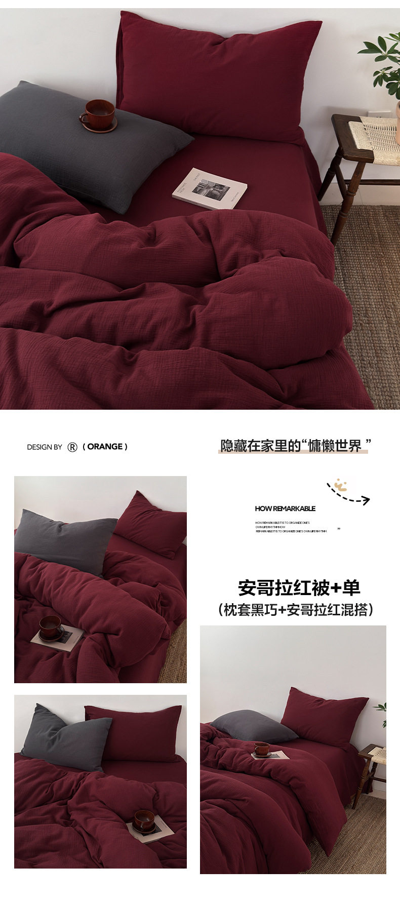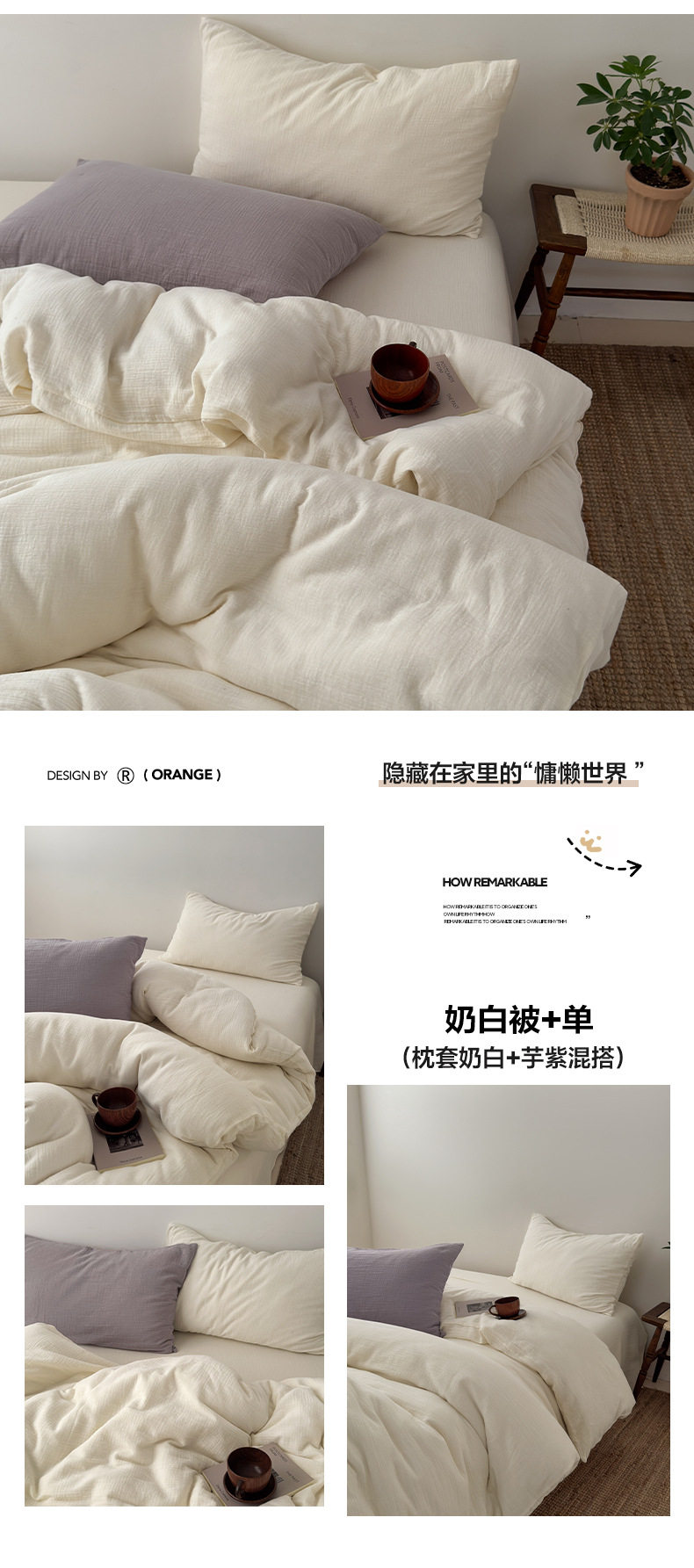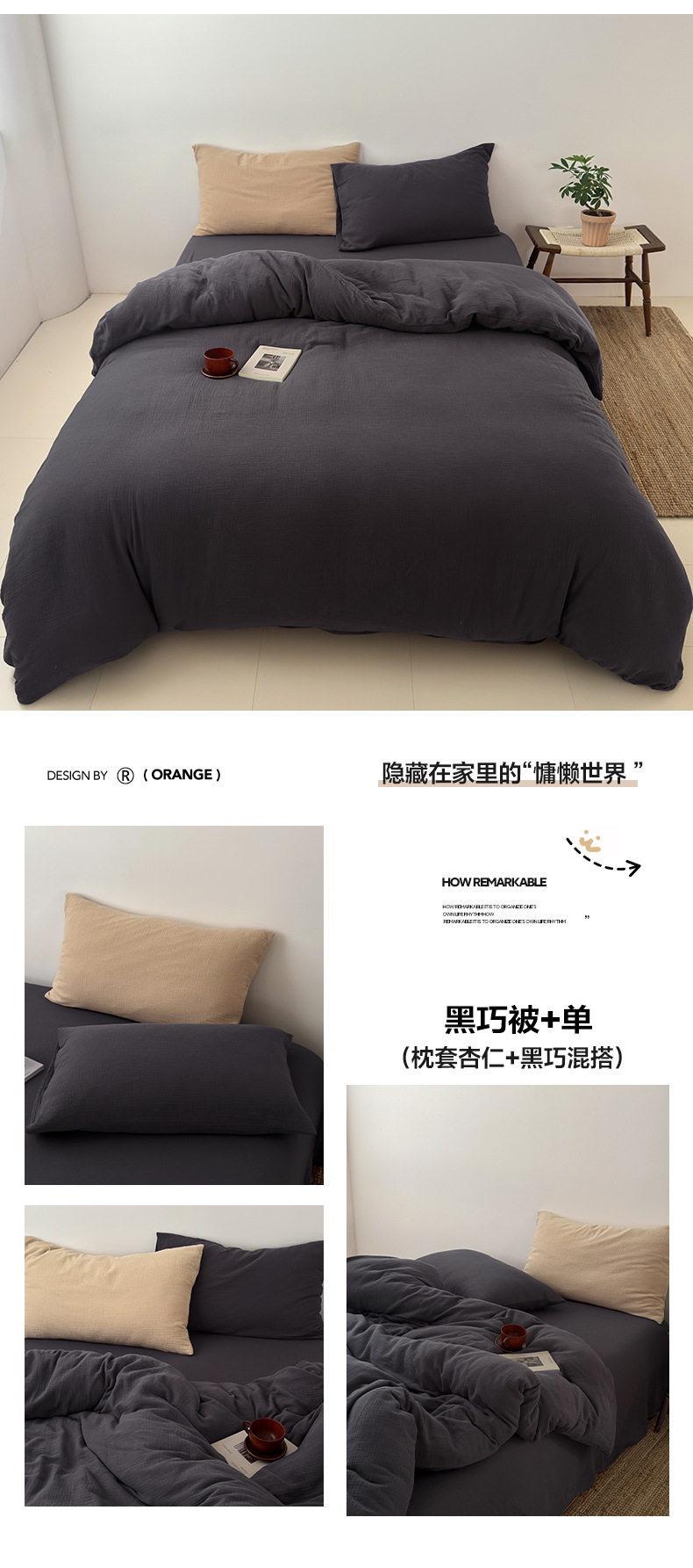 Pure Cotton Wrinkled Yarn Four-Piece Bed Bed Sheets Quilt Cover Bed Bed Sheets Pure Cotton Pure Color Simple Japanese Style Unprinted Style Dormitory Three-Piece Set
