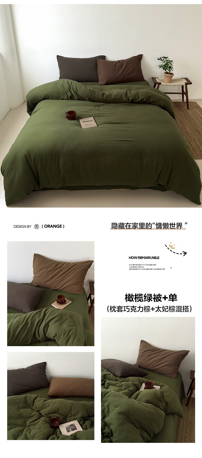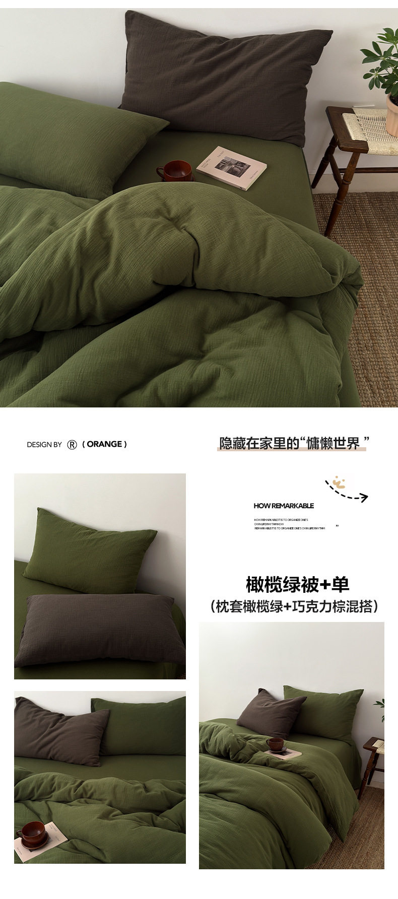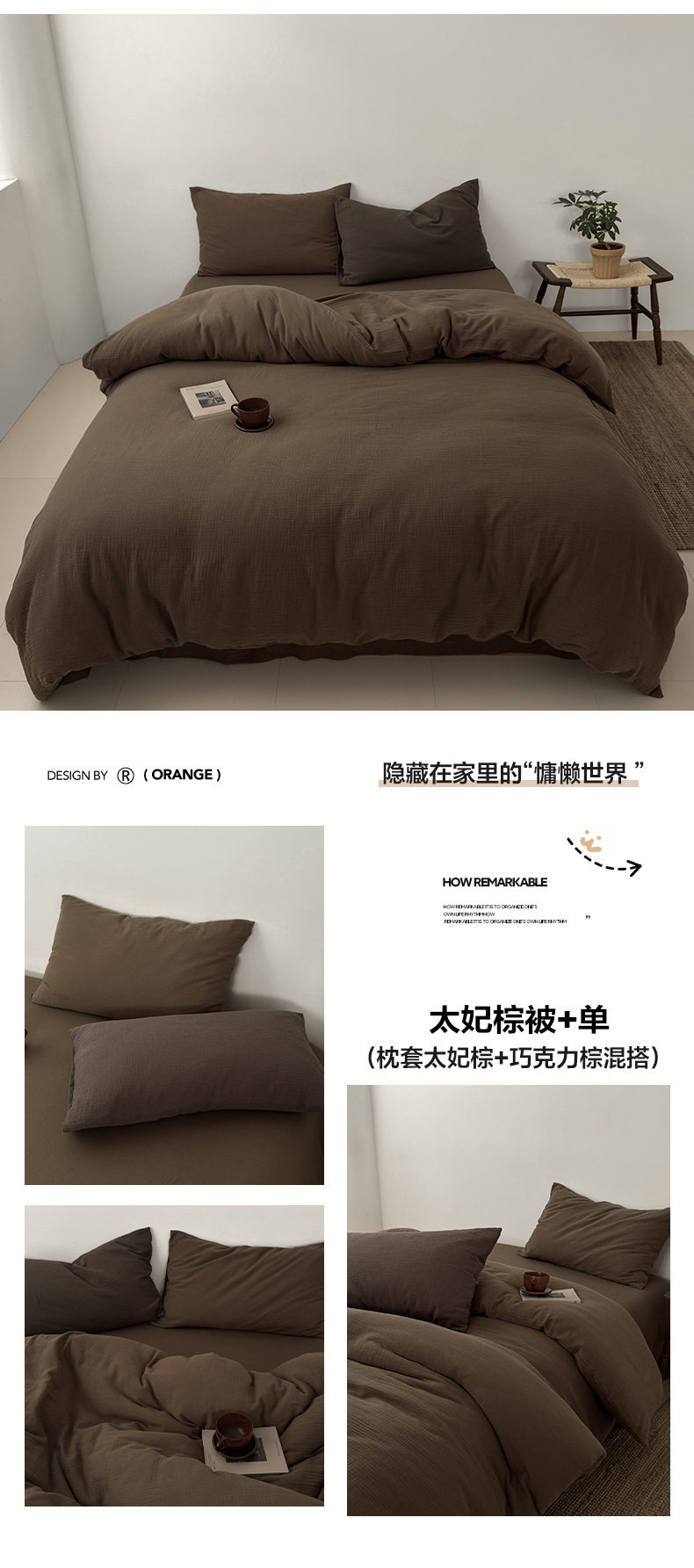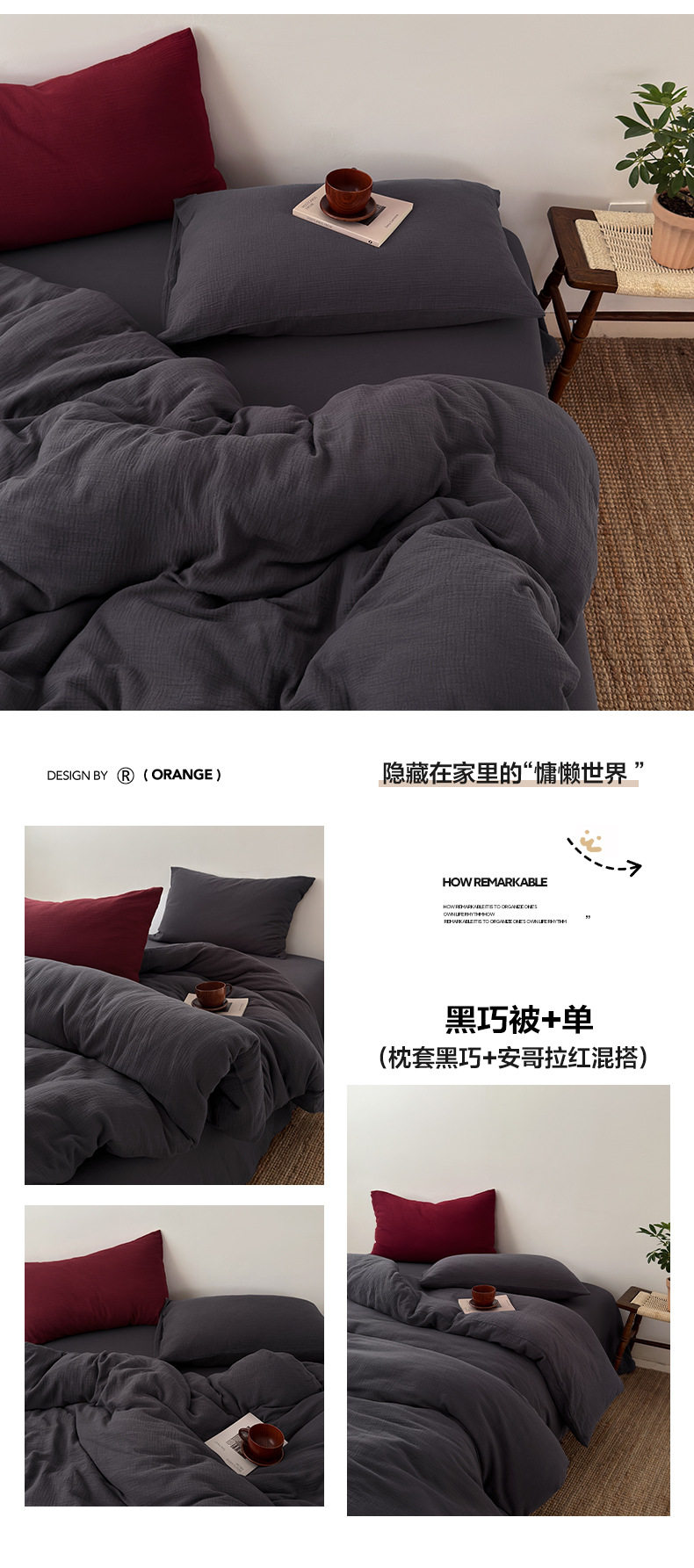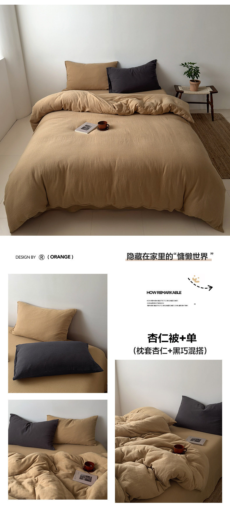Pure Cotton Wrinkled Yarn Four-Piece Bed Bed Sheets Quilt Cover Bed Bed Sheets Pure Cotton Pure Color Simple Japanese Style Unprinted Style Dormitory Three-Piece Set