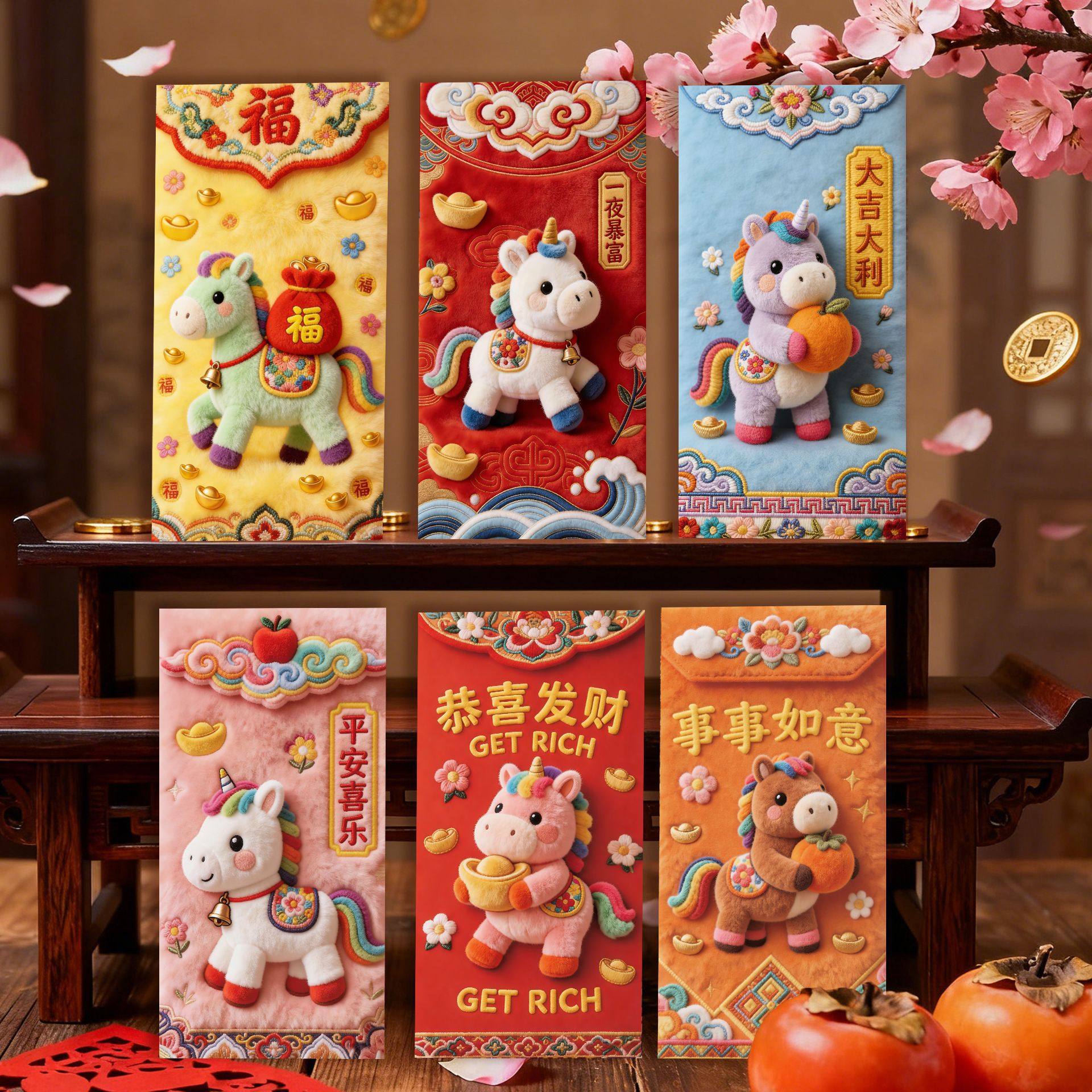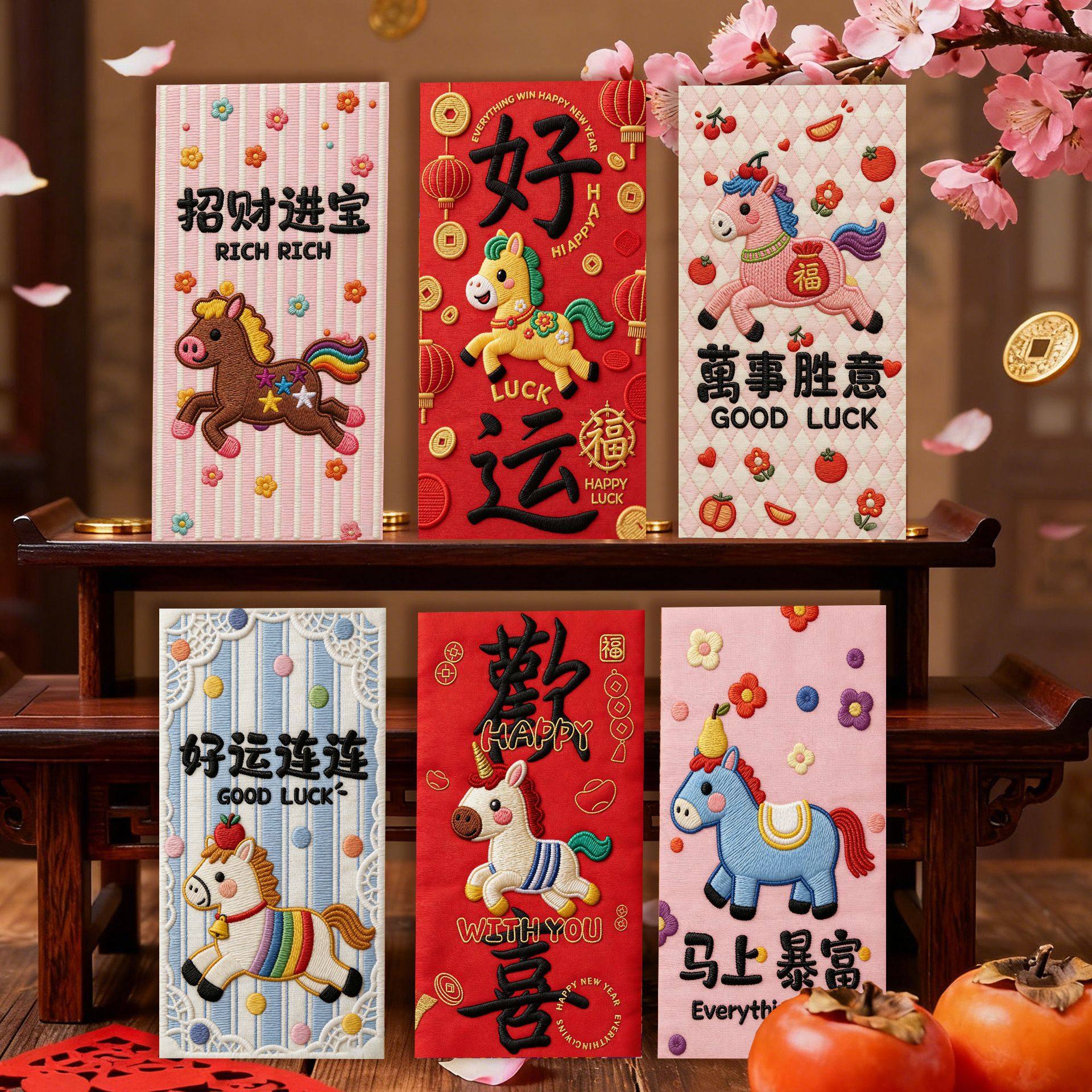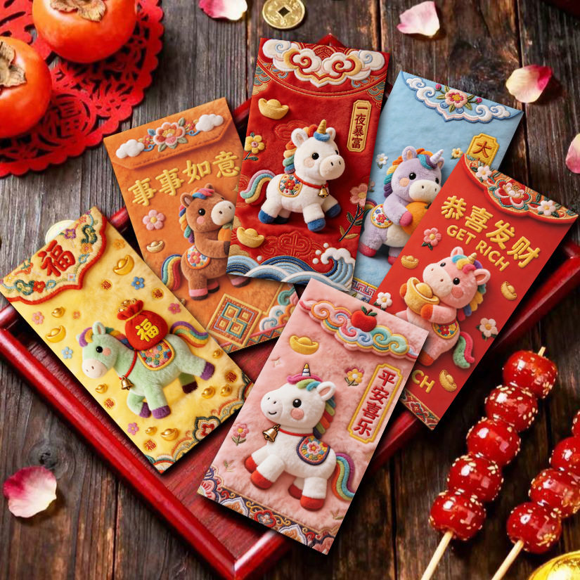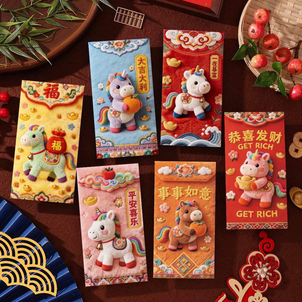 Color Three-dimensional embroidered pony red envelope [6 pieces],Xingxi-2 three-dimensional embroidered red envelopes [6 pieces],Xingxi-3 three-dimensional embroidered red envelopes [6 pieces],Xingxi-4 three-dimensional plush style cute horse red envelope