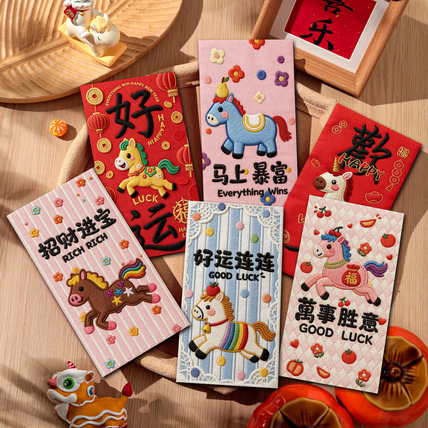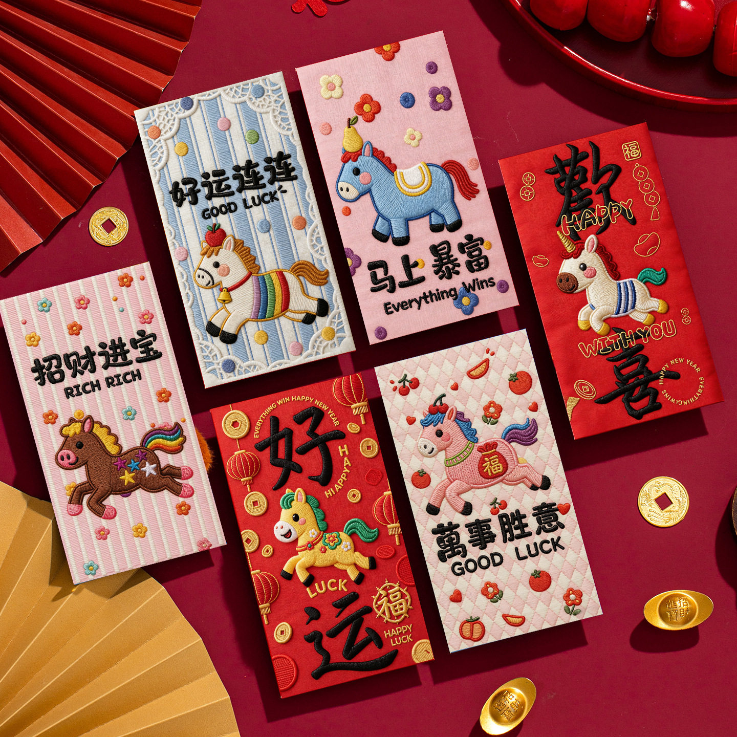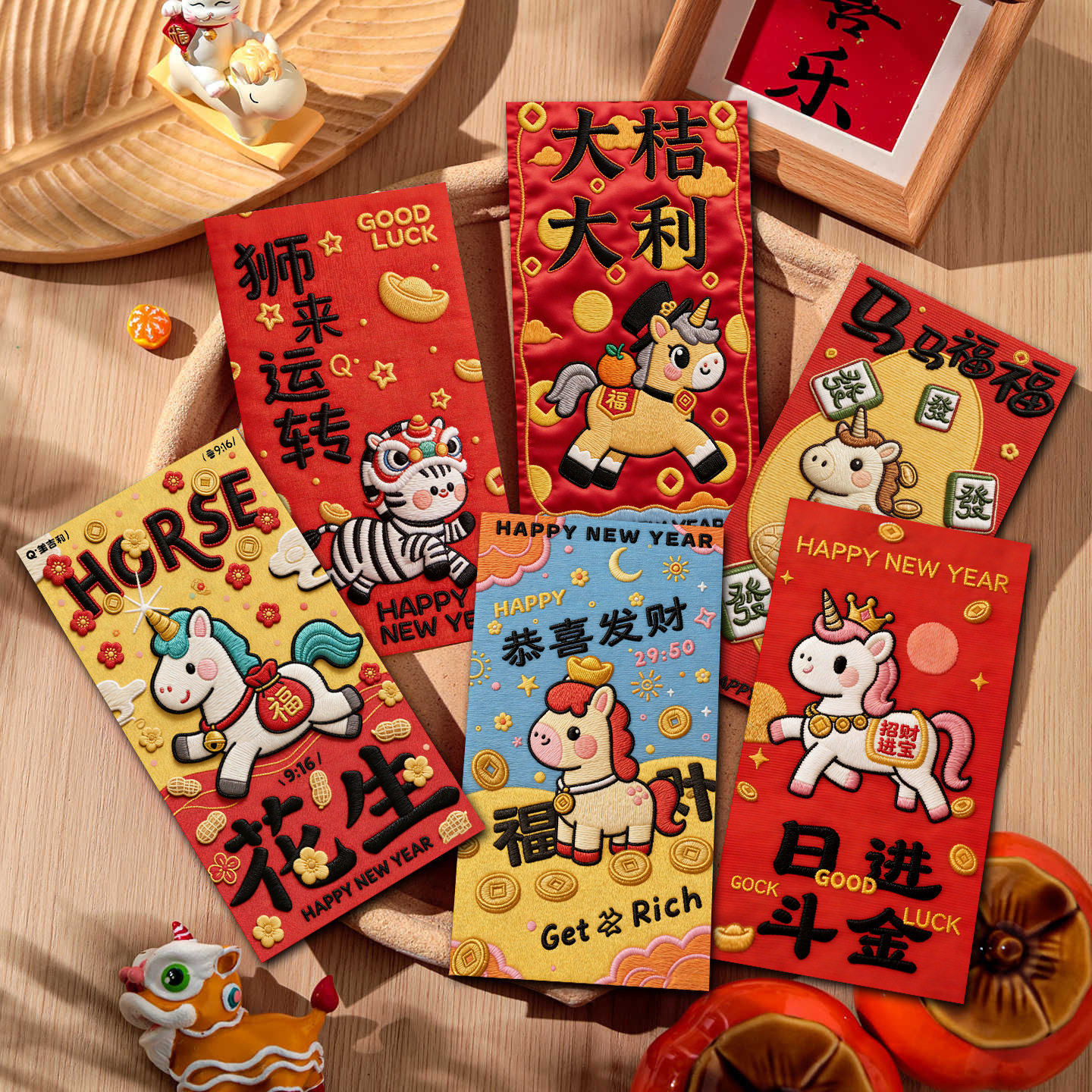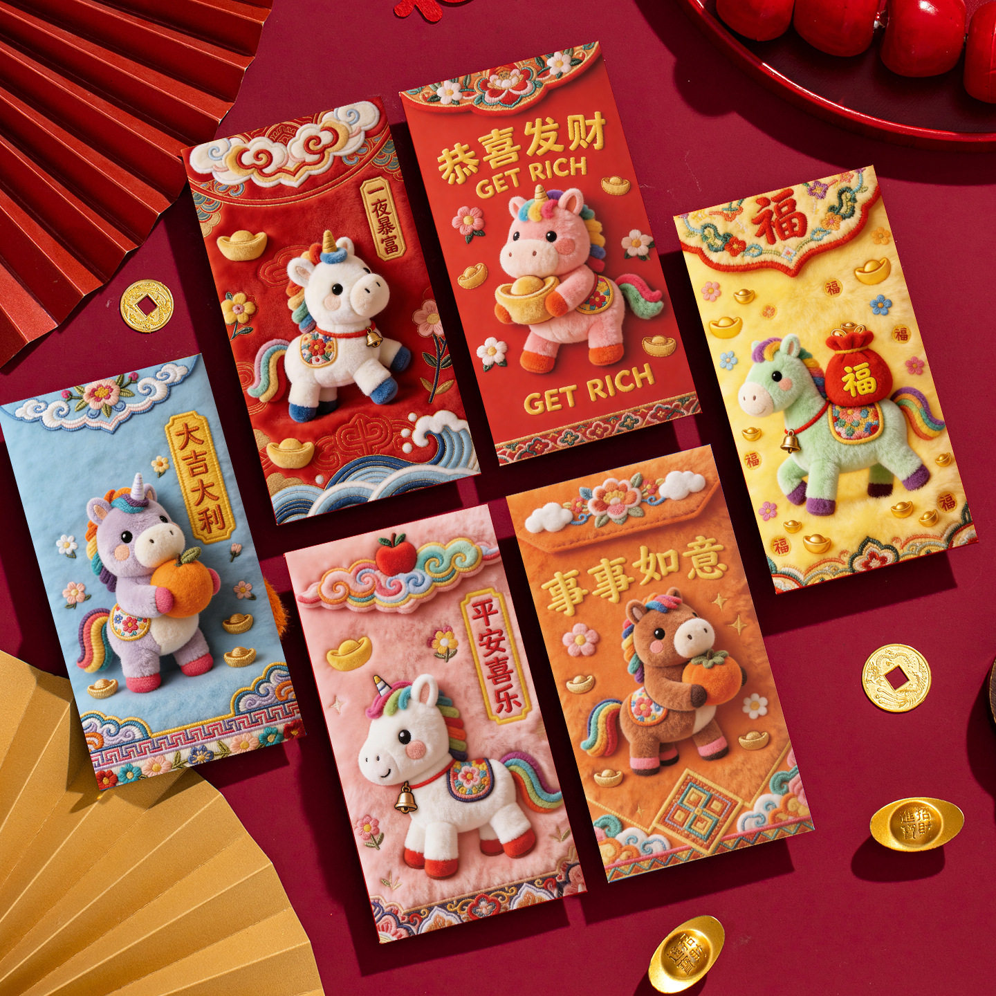 Color Three-dimensional embroidered pony red envelope [6 pieces],Xingxi-2 three-dimensional embroidered red envelopes [6 pieces],Xingxi-3 three-dimensional embroidered red envelopes [6 pieces],Xingxi-4 three-dimensional plush style cute horse red envelope