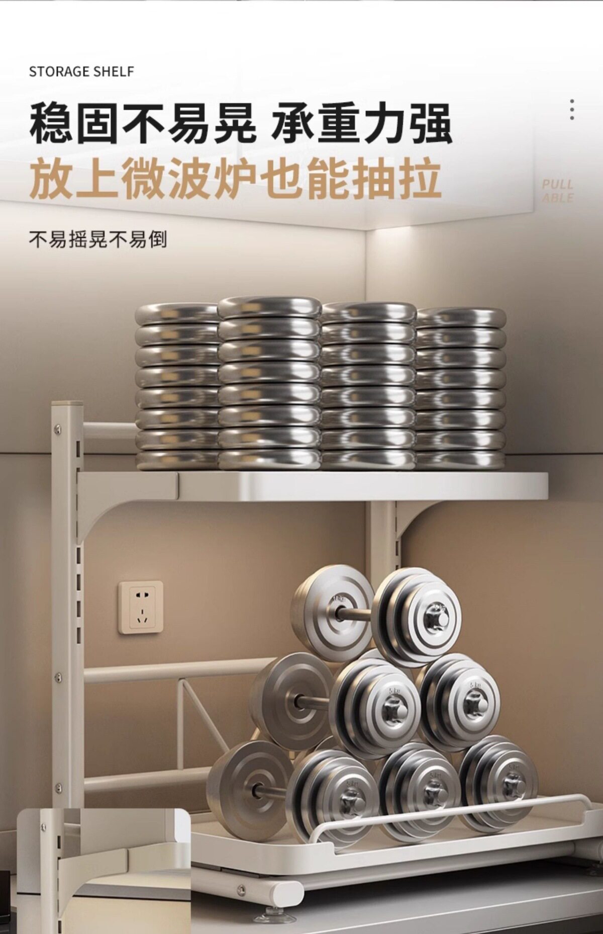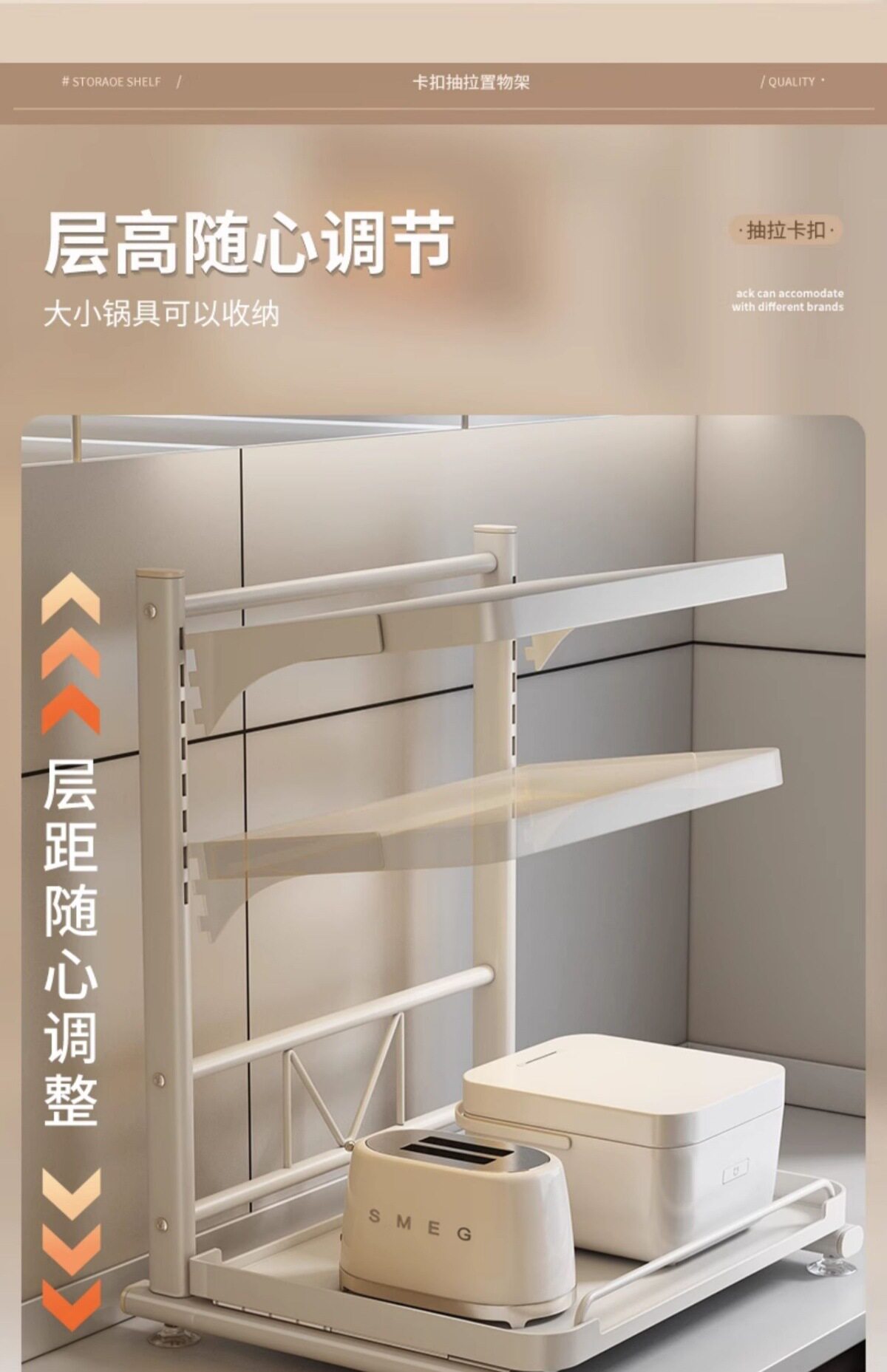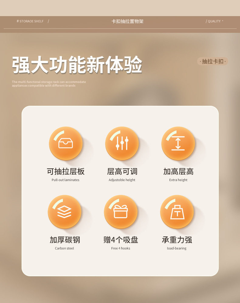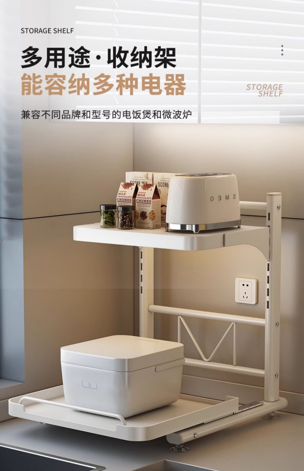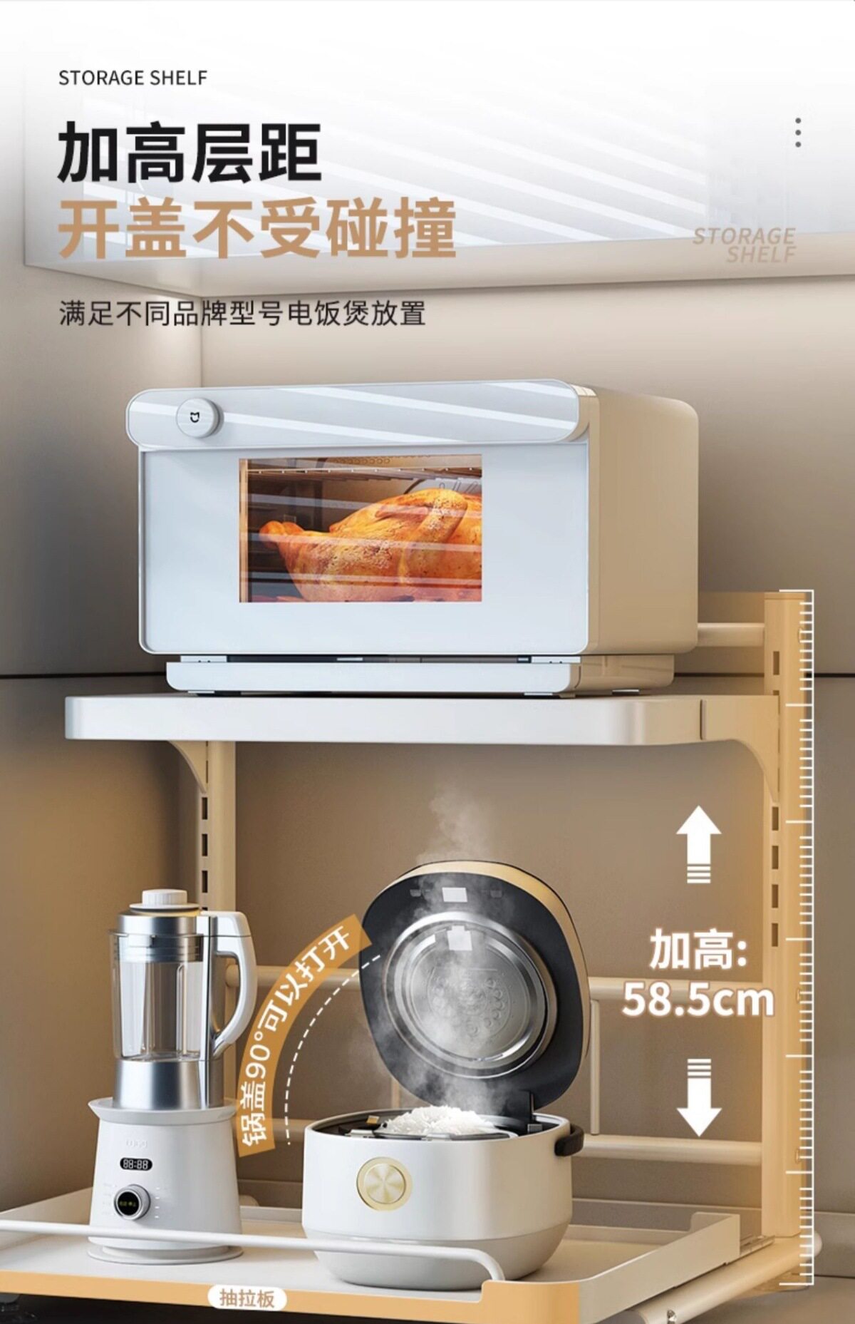 Pull-Out Rice Cooker Storage Rack Kitchen Multi-Functional Countertop Oven Appliance Microwave Oven Integrated Storage Rack